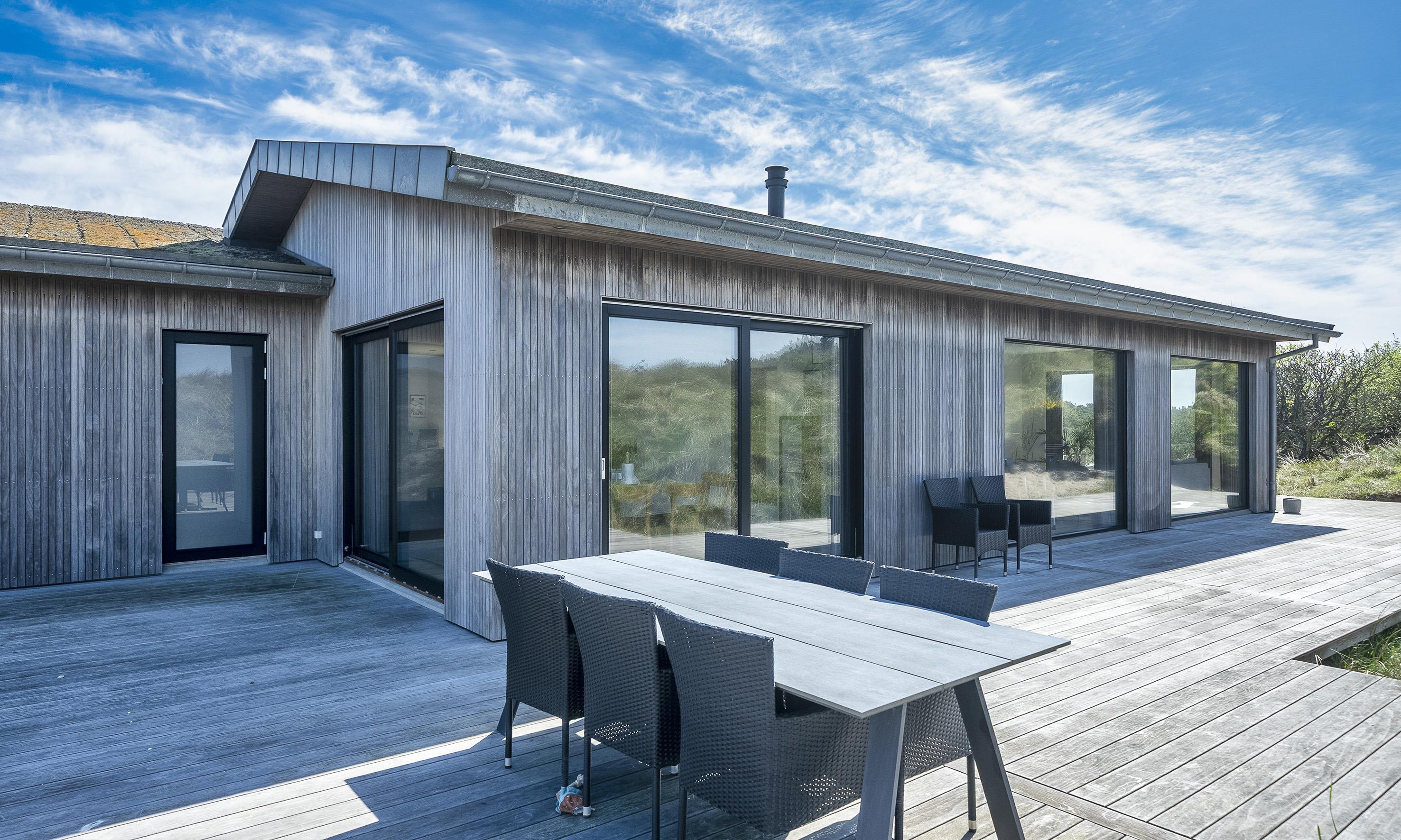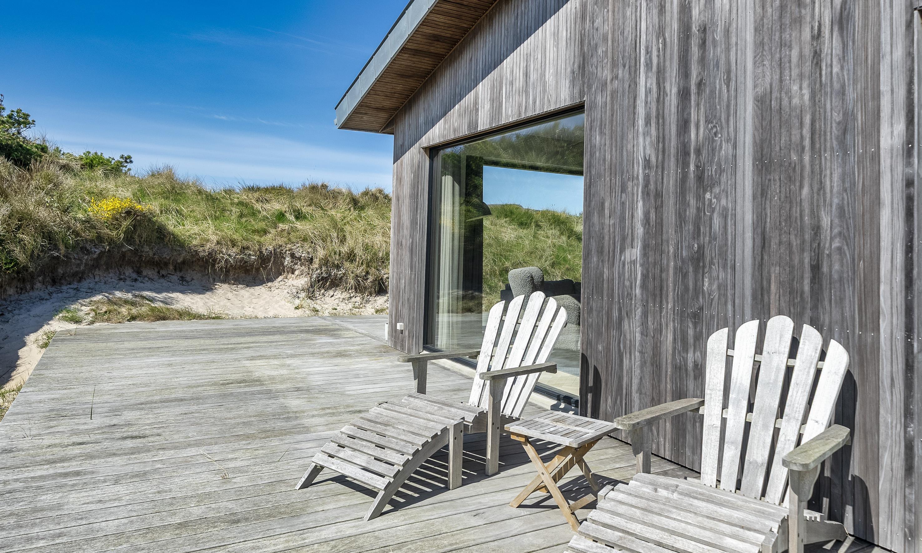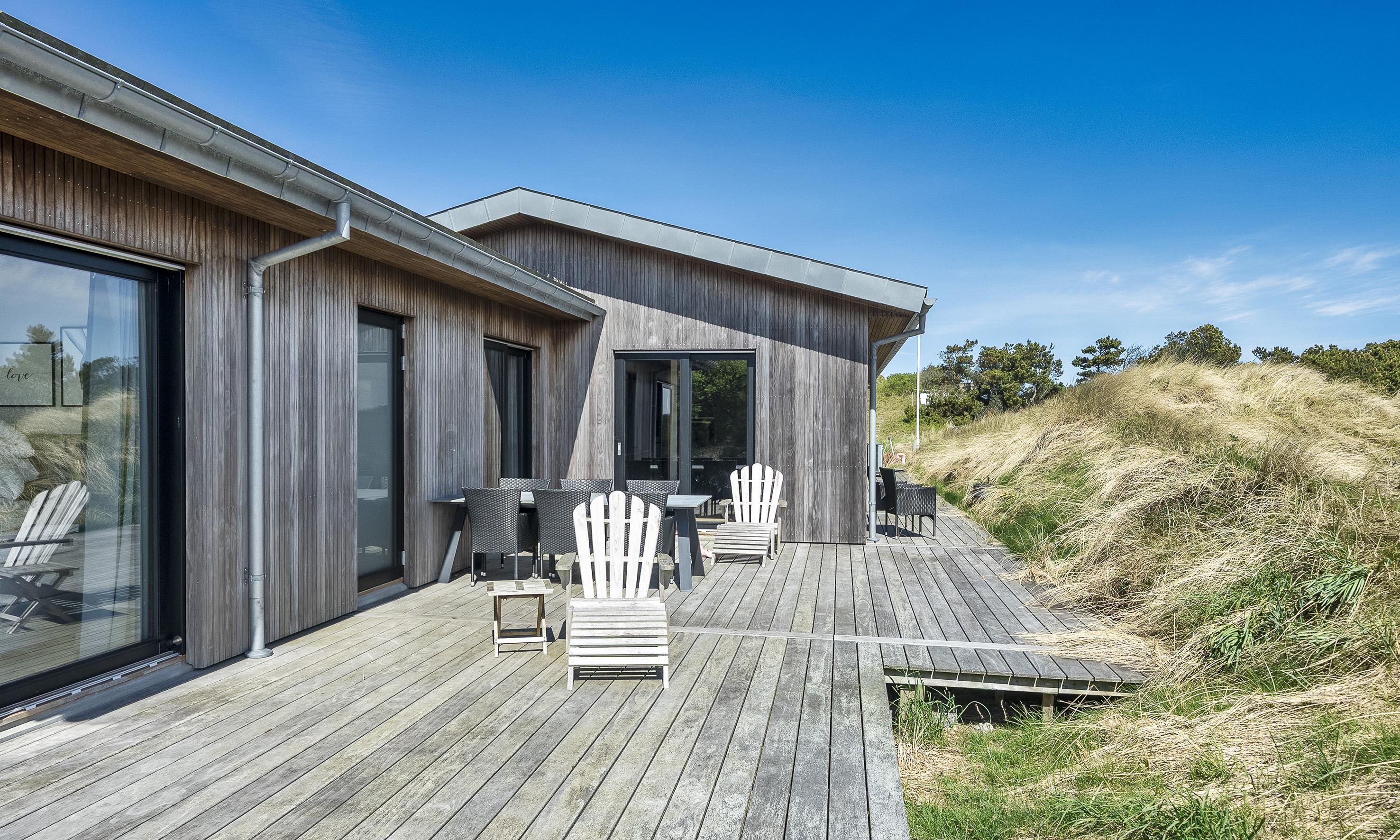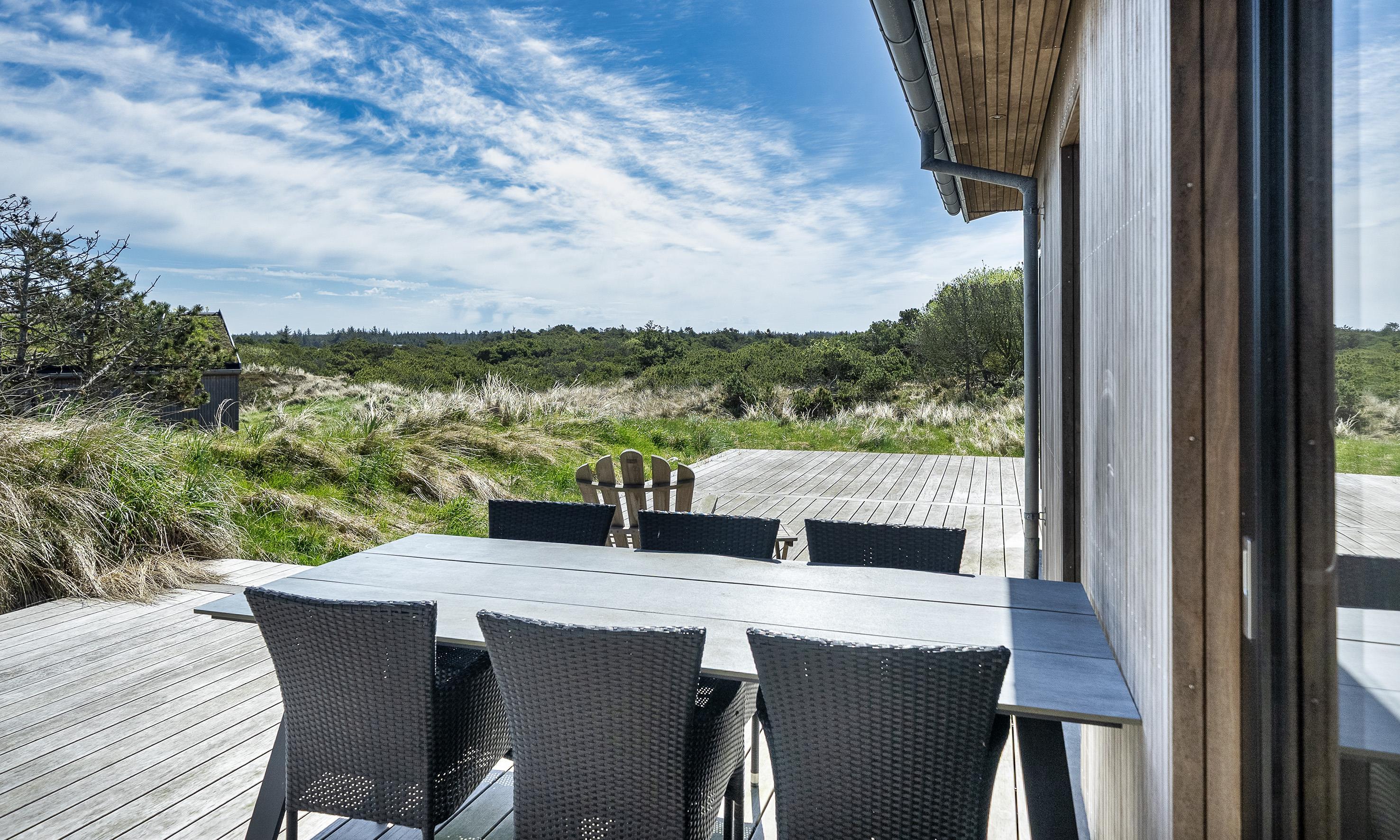 Sommerhuset byder på en skøn atmosfære i en moderne boheme stil, og med store panoramavinduer der står som store malerier i hele huset. Gennemgående åbent plan med små og store hyggekroge. De udvendige faciliteter byder på ren natur, der kan nydes fra den store omkring liggende træterrasse. Aftner som forår/efteråret kan nydes fra den store overdækkede terrasse. Sommerhuset ligger på en stor ugeneret kuperet klitgrund forenden af en lukket vej, ca. 250 meter fra stranden. Op grænsende til skovområdet, her bor du i fredelige omgivelser.