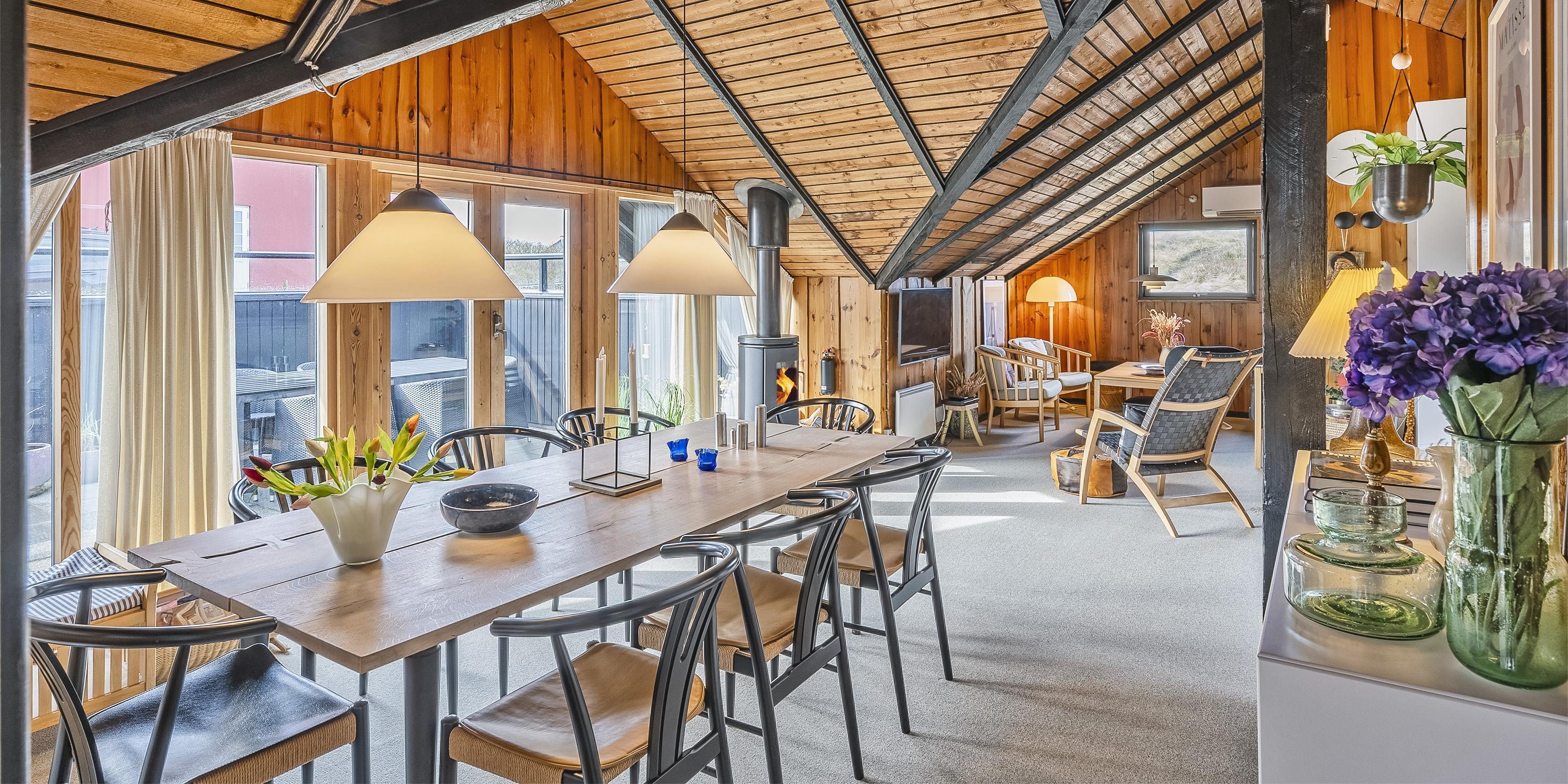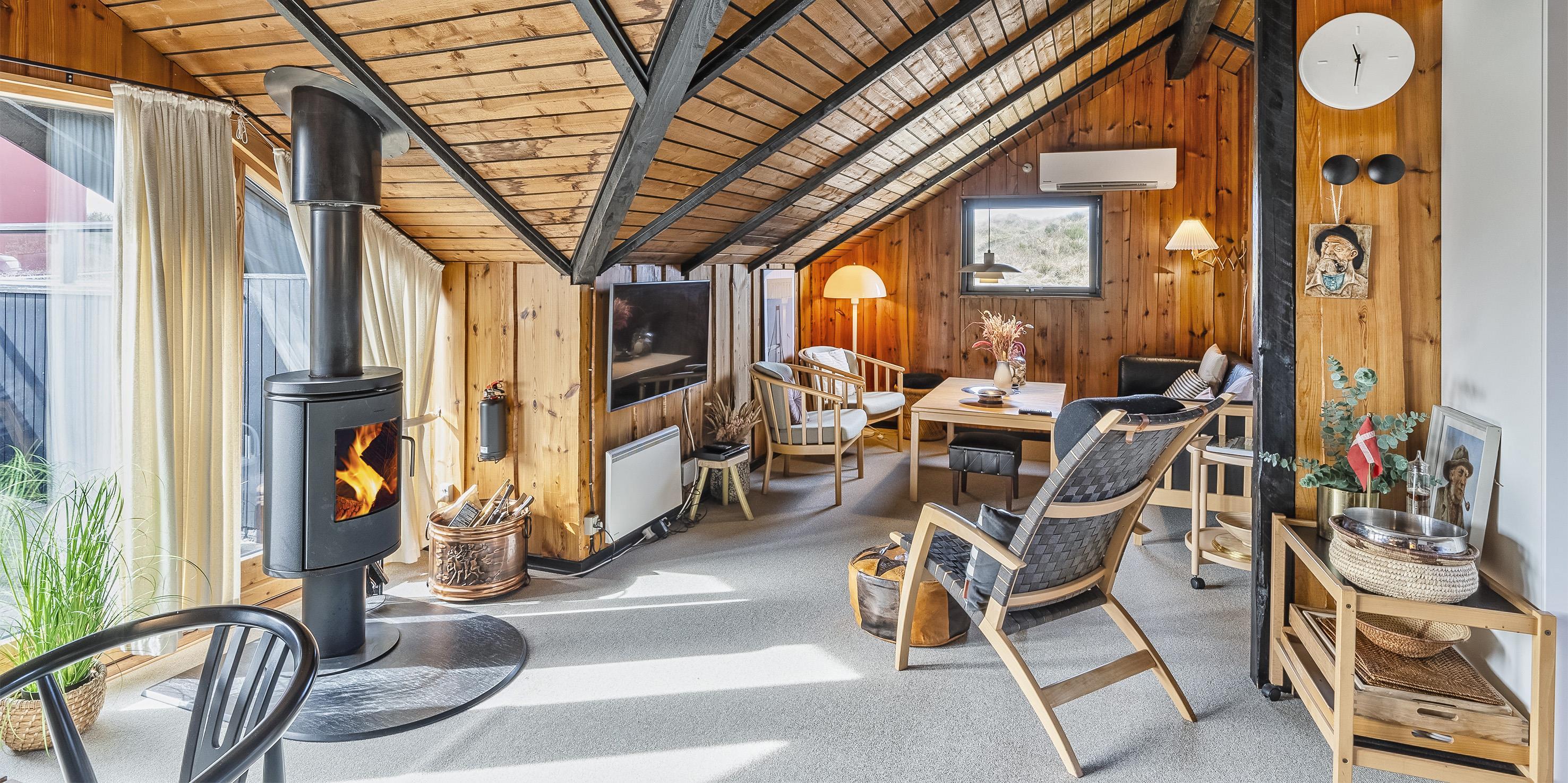 Familie venligt og hyggeligt sommerhus til 6 Vejers fan, beliggende på en lille natur grund i klitterne, ca. 200 meter fra stranden. Huset er indrettet med meget charme og der er kræset for detaljerne. Huset indeholder: Lille entre med indgang til stuen. Den hyggelige stue er indrettet med et god spiseplads med langbord hvorfra der er udsyn til brændeovnen og terrassen. Sofahjørne med udsyn til brændeovnen, radio, fjernsyn (Stofa sommerhuspakke) og trådløs internet. Nyere lyst køkken med opvaskemaskine, mikroovn og køleskab. 3 soveværelser: 2S + 2S + 2S. Alle soveværelser er blevet malet og fik nye gulve. Lyst og venligt badeværelse med bruser/wc samt gulvvarme. Til huset hører 2 lukkede terrasser. Terrassen foran huset er delvis overdækket, hvor aftenen kan forlænges et par timer. Imellem huset og skuret forefindes en helt ugeneret stor delvis lukket terrasse. I skuret forefindes en vaskemaskine og tørretumbler samt fryser. Rygning og husdyr er ikke tilladt. Byggeår 1975, renoveret 2017. Gratis adgang til Badeland i Varde i 2026.Varmepumpe.