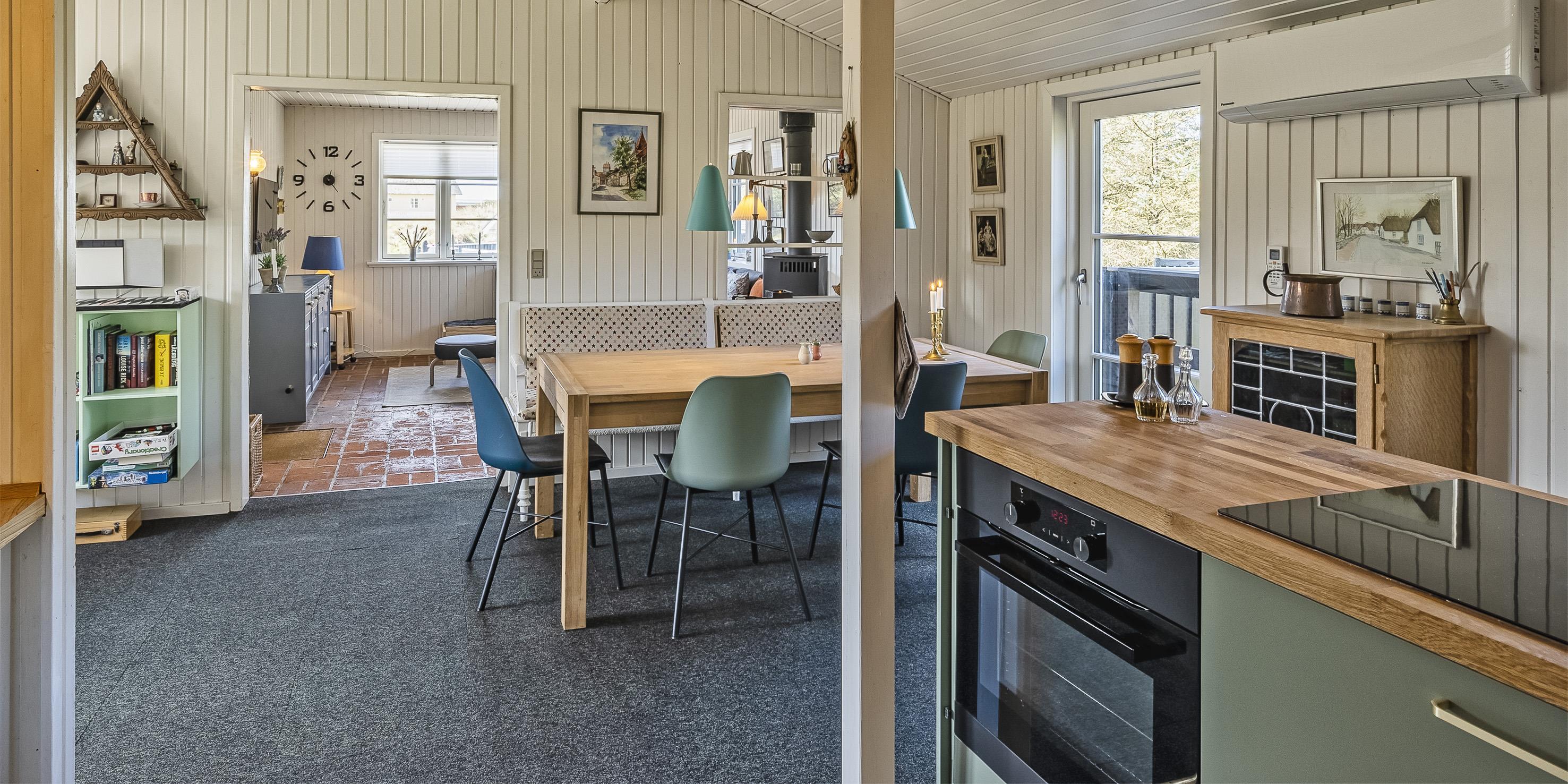Flot sommerhus i 2 etager til 6 personer, ca. 200 meter fra stranden. Stue med brændeovn, Smart TV og Chromecast. Åbent køkken med opvaskemaskine, Induktions komfur, mikroovn og udgang til vestvendt terrasse. Badeværelse med bruser/wc og badekar. Stort bryggers med håndvask, vaskemaskine og tørretumbler. 1. sal: 2 soveværelser med hver 1 dobbeltseng, heraf et med balkon mod syd samt 1 soveværelse med 2 enkeltsenge. 3 soveværelser: DS + DS + 2S. Gæstetoilet med bruser. Trådløst internetadgang. Katte er ikke tilladt. Rygning ikke tilladt, Varmepumpe. Delvis lukket terrasse mod vest. Byggeår 1940, renoveret 2008 og 2022.