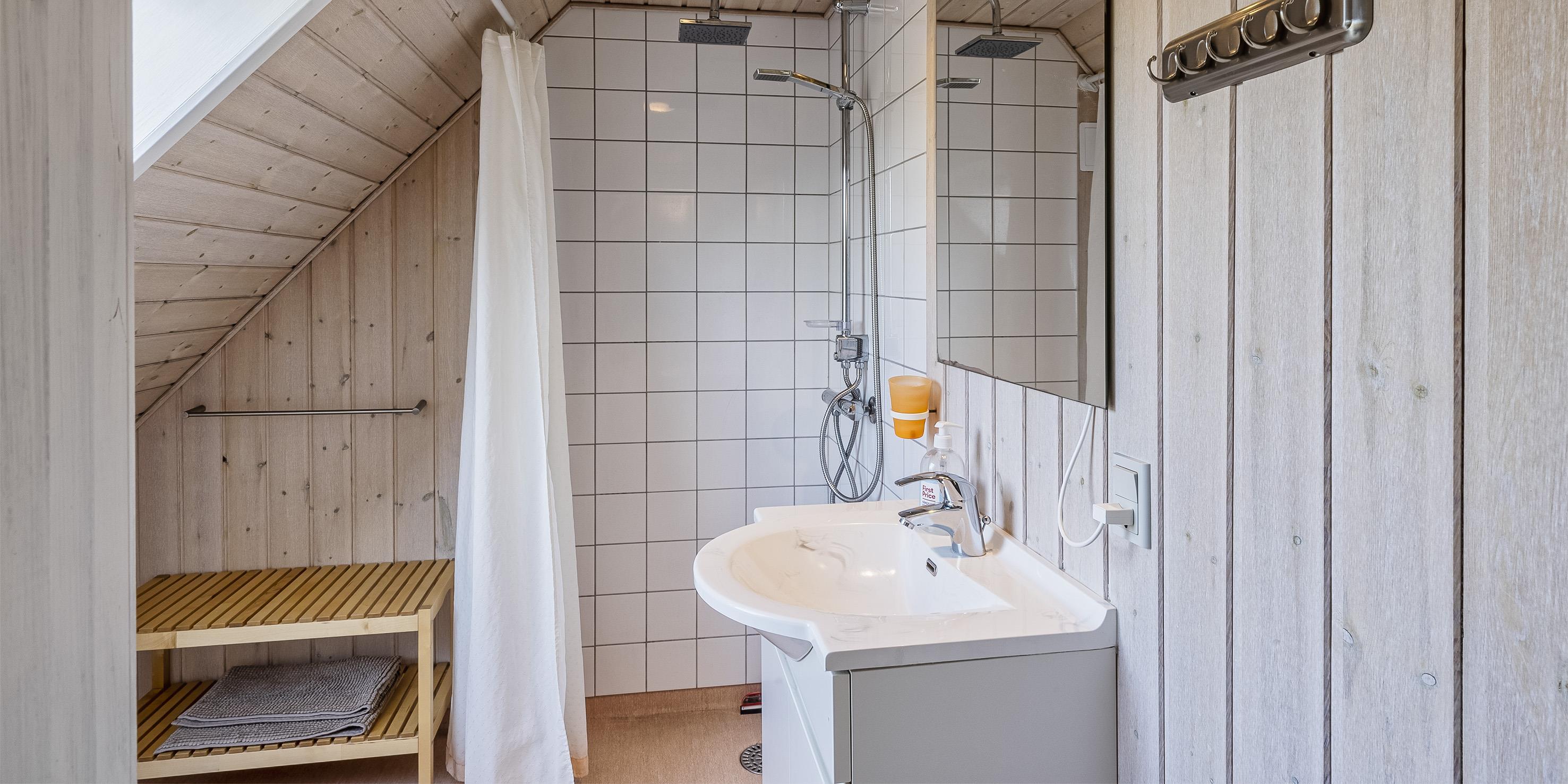 3 soveværelser. 2 med dobbeltseng 180x200 cm. 1 med 2 enkeltsenge (á 90x200 cm)
