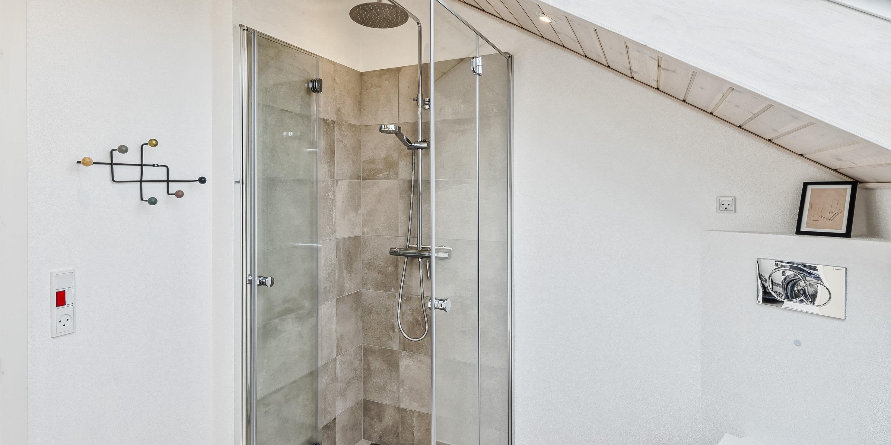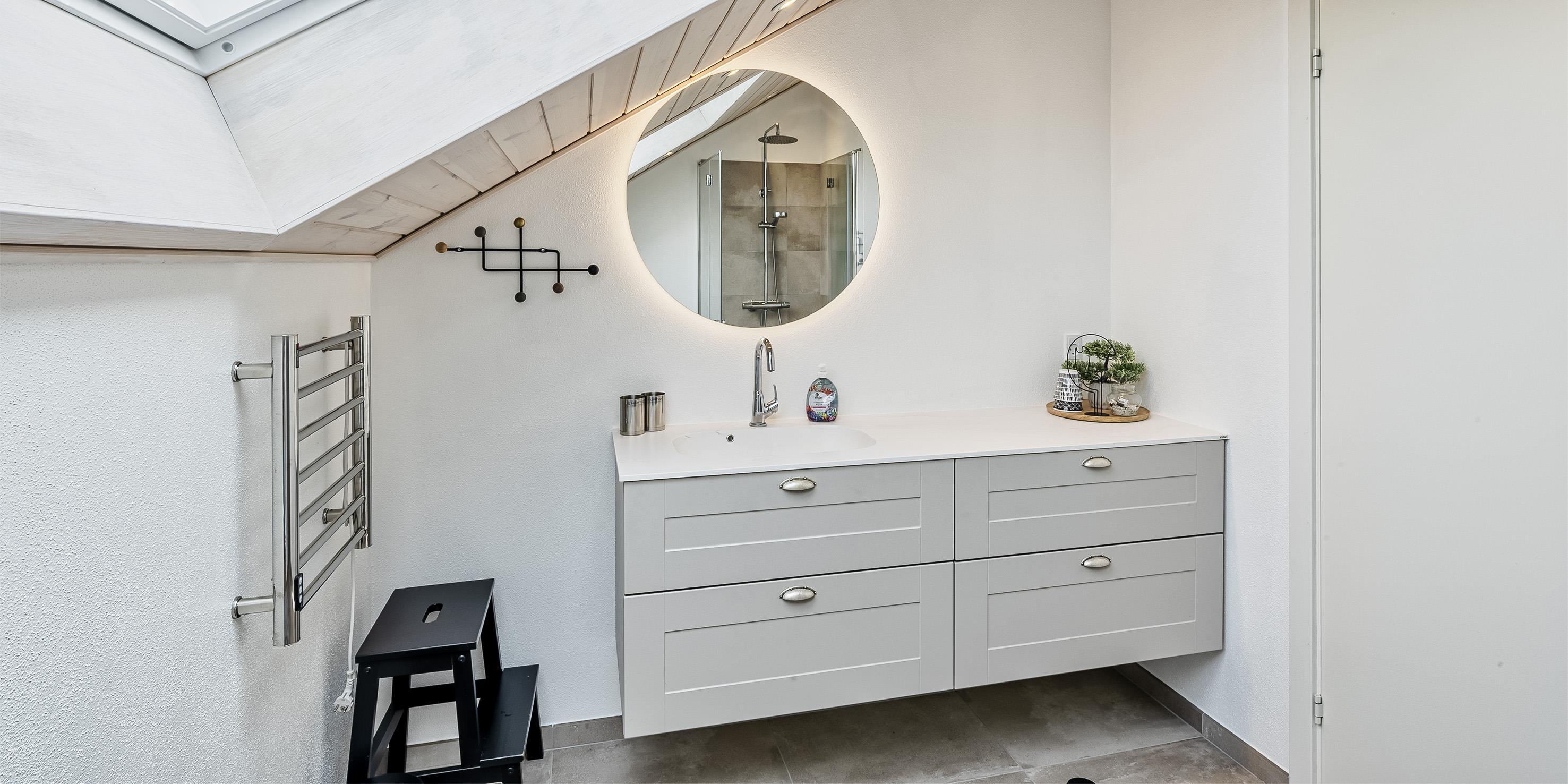 Der er opført en ny tilbygning med gang hvor der bla. er vaskemaskine og tørretumbler samt badeværelset. Der er gulvarme i begge rum.