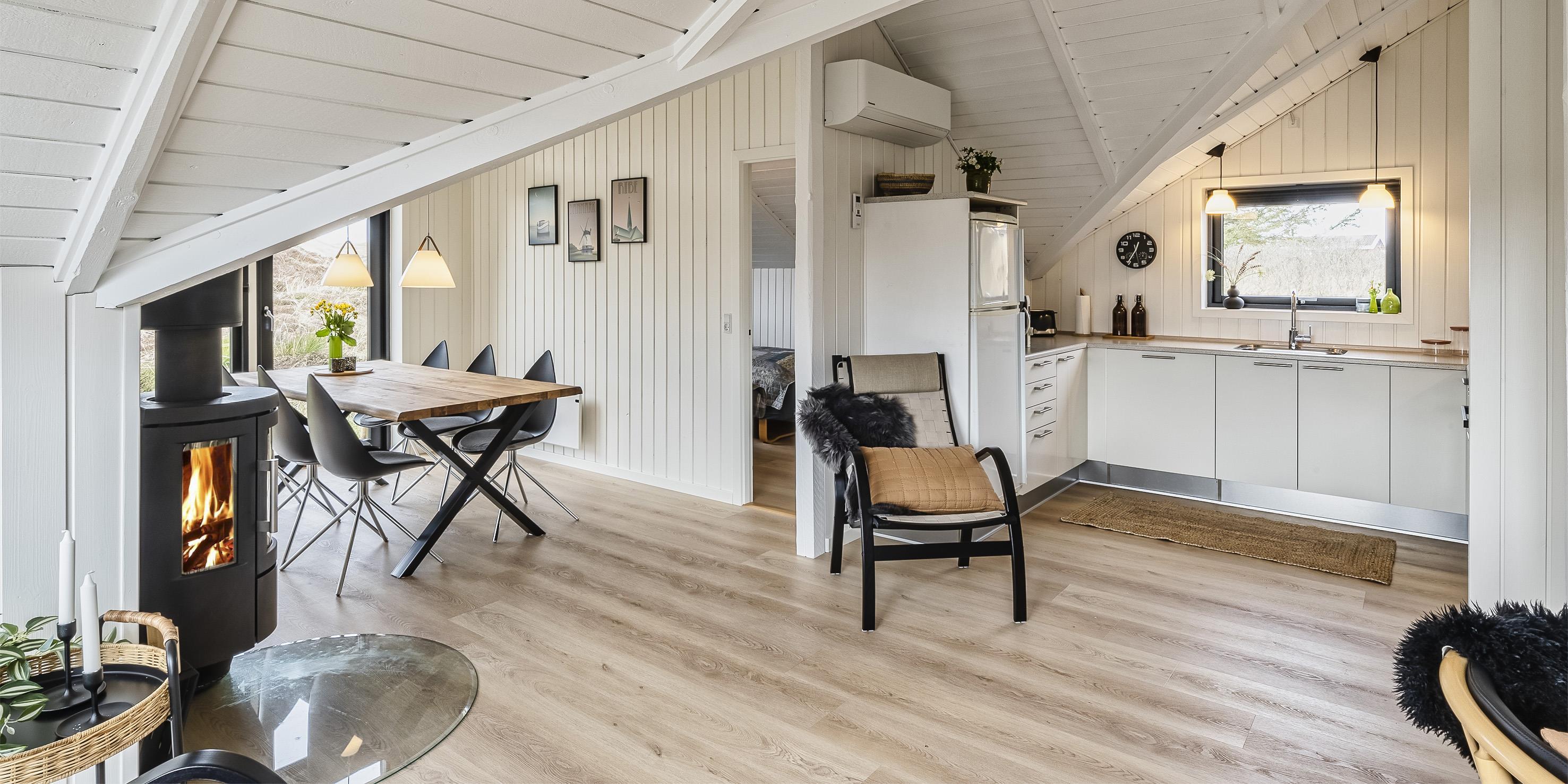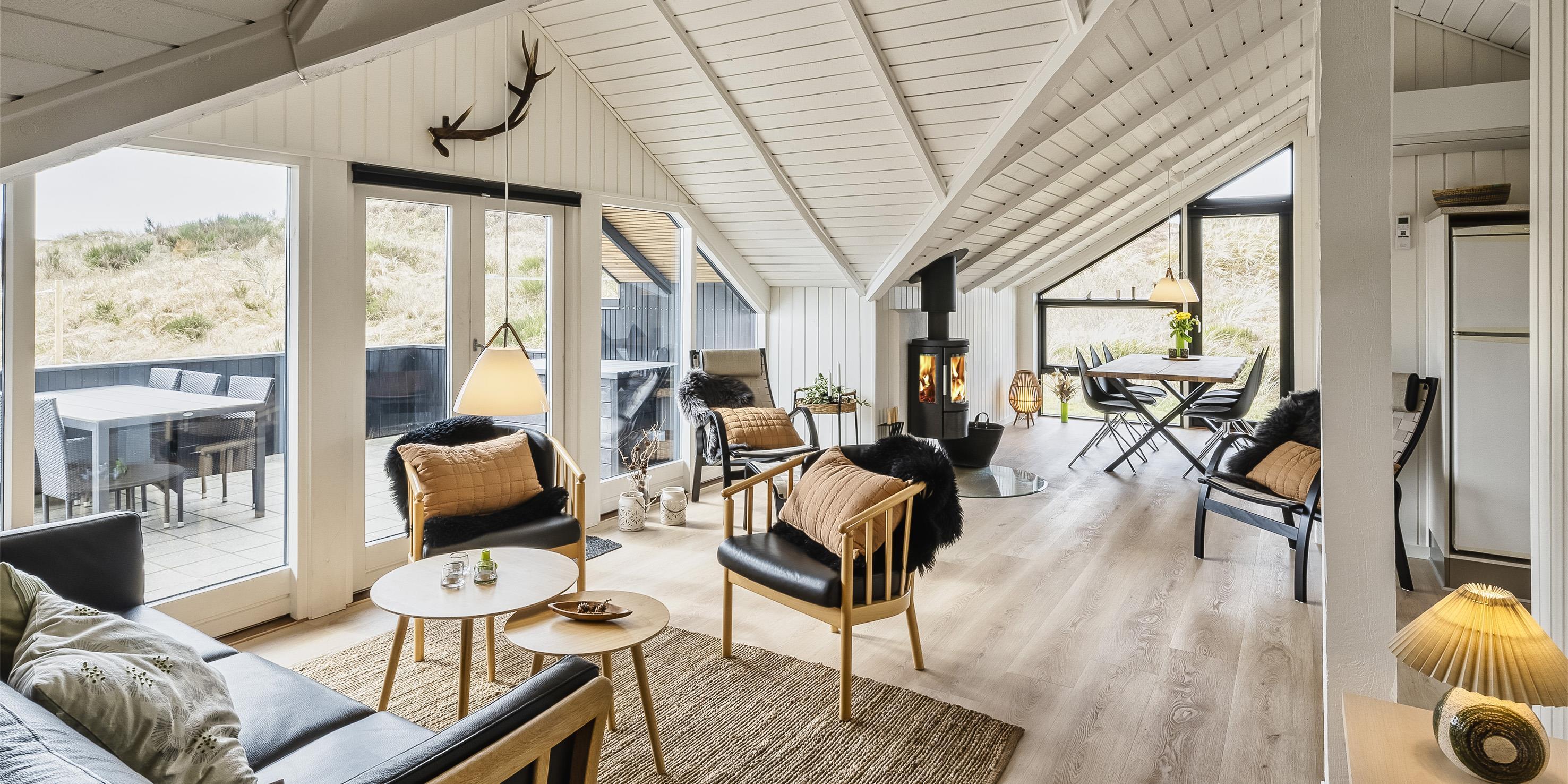 Nyrenoveret og hyggeligt sommerhus til 6 personer, beliggende på en lille skøn natur grund i klitterne, ca. 100 meter fra stranden. Huset er på 90 m2. Stue med brændeovn, fjernsyn og danske og tyske programmer via Stofa sommerhuspakke, Smart TV, Google Chrome Cast,Bluethoos Højtaler. Spiseplads med fansastisk udsigt til klitter og solnedgang. Nyere lyst køkken med opvaskemaskine, mikroovn og køle-/frysekombination. Nyt dejligt badeværelse med bruser, toilet, håndvask og gulvvarme. Sauna. 3 soveværelser: DS + 2S + 2S. Trådløs internetforbindelse (200/200 Mbit). Varmepumpe. Der er adgang til Oksbøl badeland i 2026. Delvis lukket træterrasse og til de små gæster er der en sandkasse. Udebruser om sommeren samt gasgrill med gasflaske. Ladestik til elbil (Type 2).
