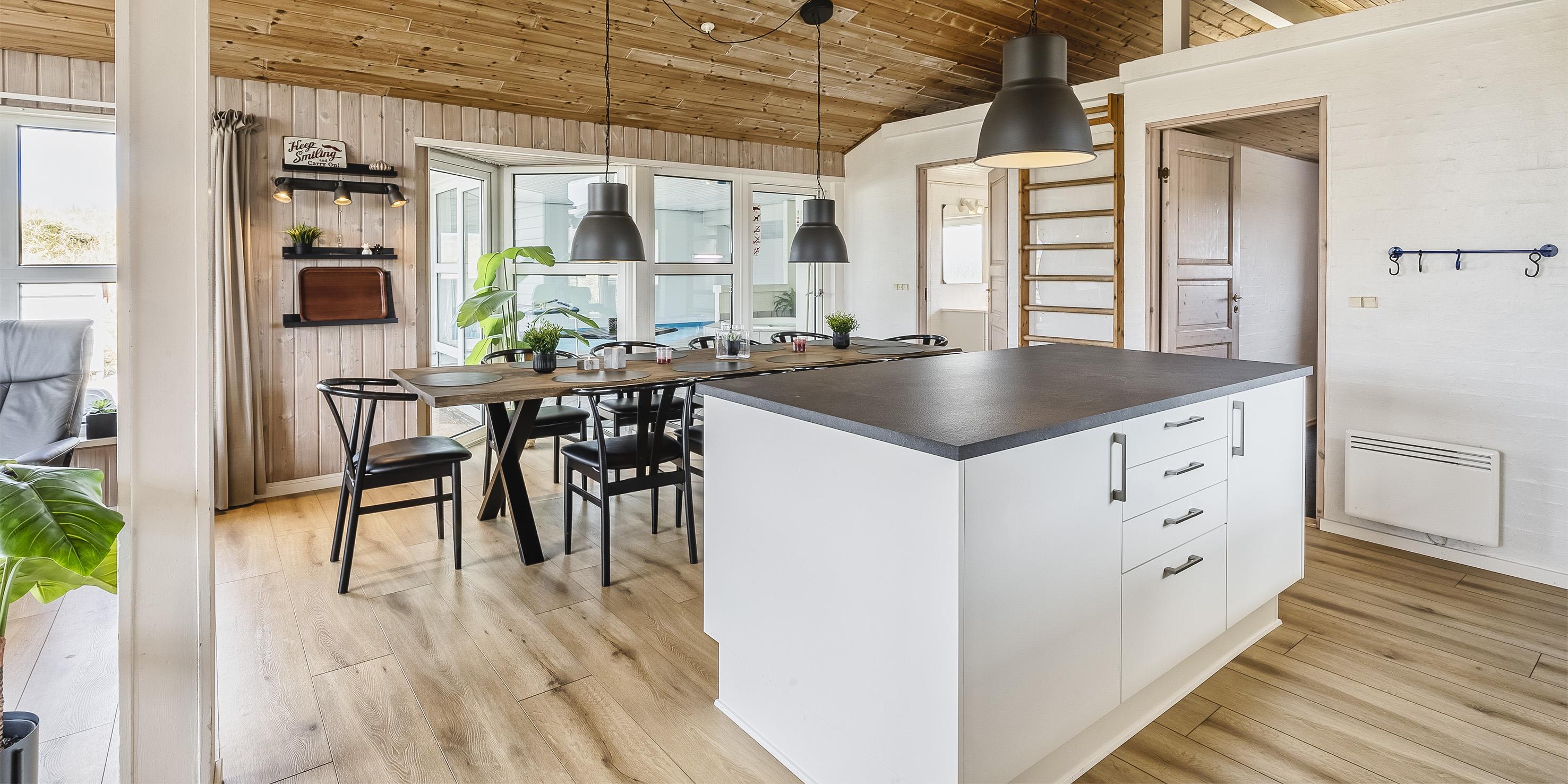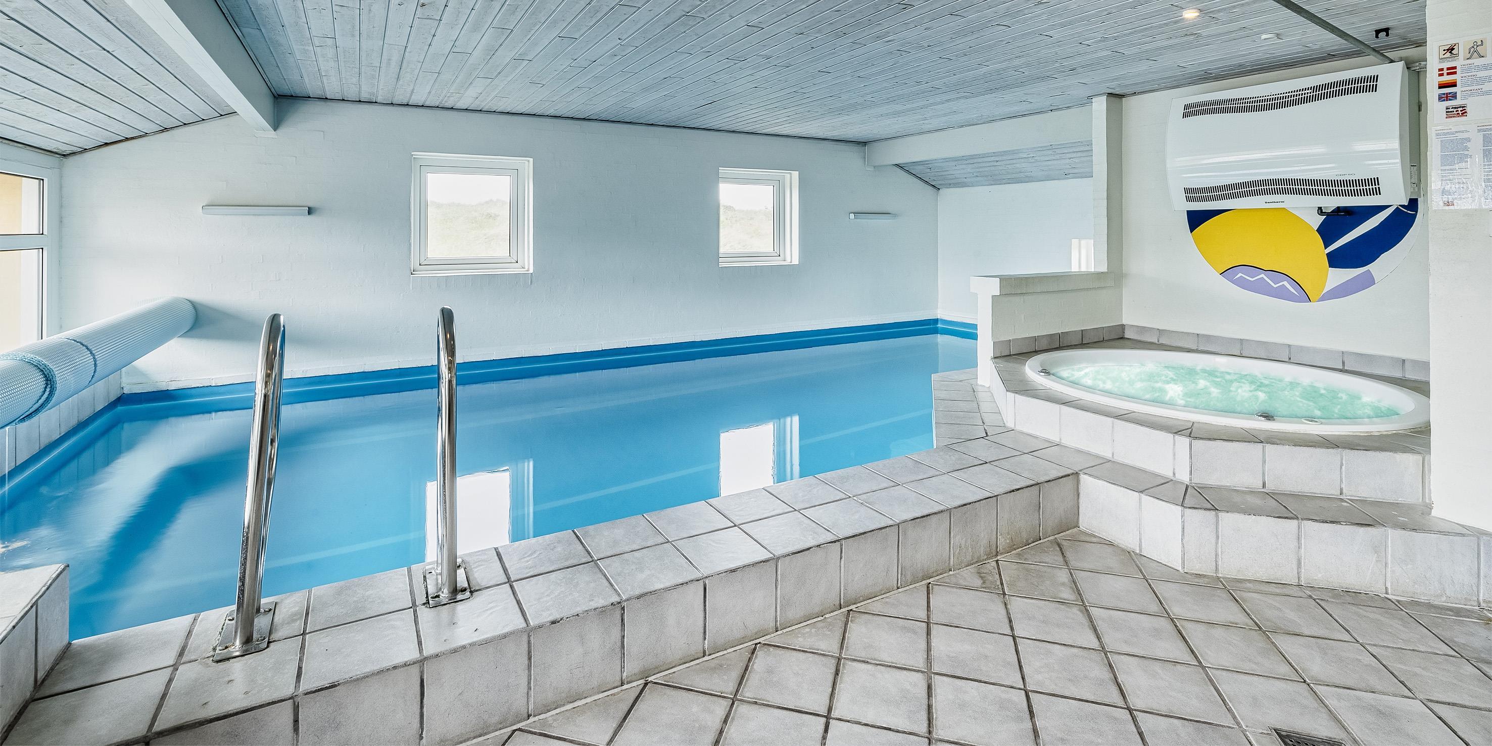 Nydeligt poolhus til 10 personer, beliggende på en 2.000 m2 stor klitgrund, ca. 500 meter fra stranden. Stue med brændeovn, Trådløs internetadgang, fjernsyn, DR programmer over Chrome Cast og parabol. Nyt åbent køkken med mikroovn og opvaskemaskine. Poolrum med en ca. 7,70 x 2,70 x 1,30 meter ( længde x brede x dybde) stor pool, standvandsspa ( til ca. 5 personer) og sauna. 5 soveværelser: DS + DS + DS + DS + DS. Hems i stuen. 2 badeværelser med bruser/wc. Vaskemaskine og tørretumbler. Terrasse samt sandkasse og gynge. Rygning er ikke tilladt. Ekstra udgift for vandforbrug. Huset er renoveret 2022. Byggeår 1992.
