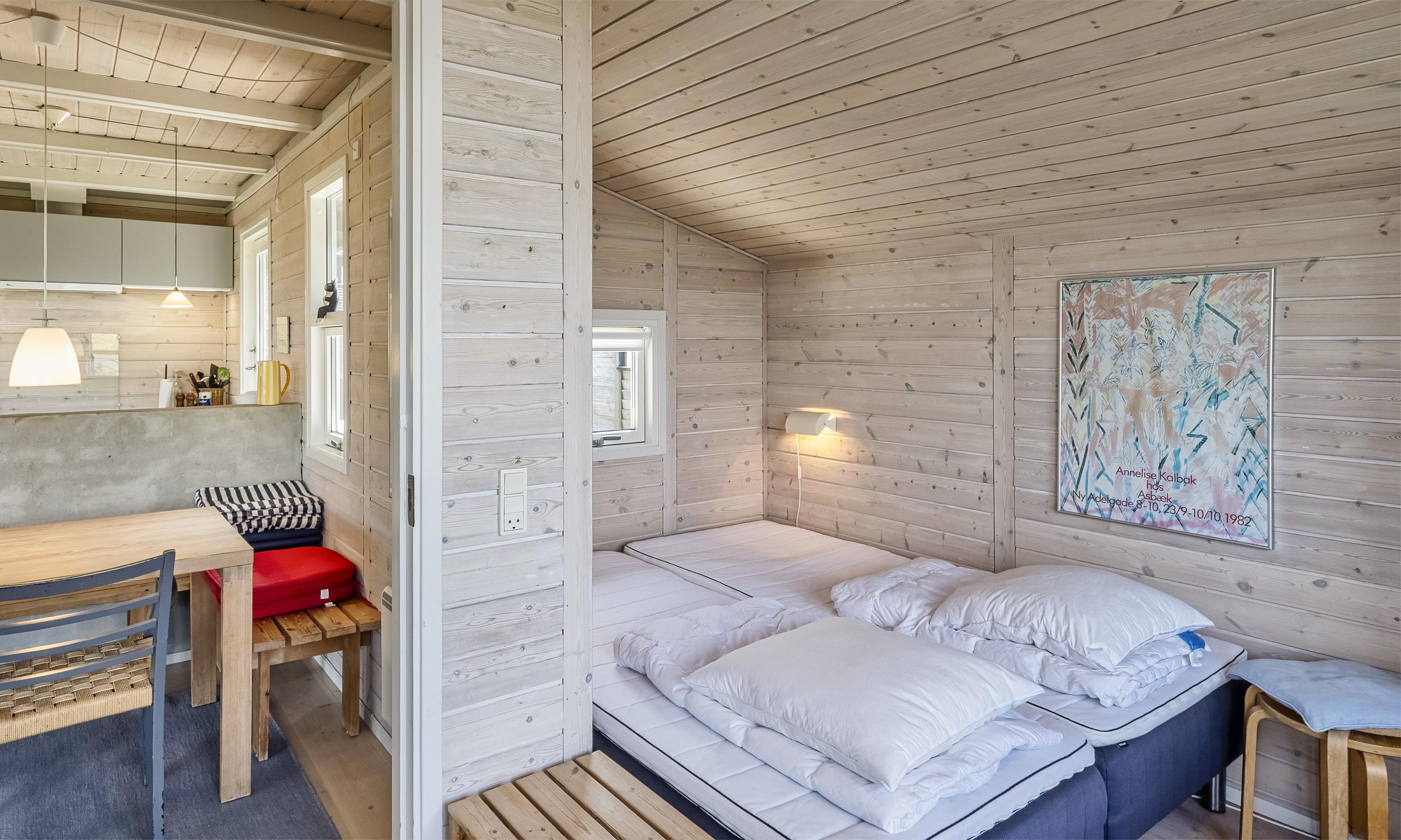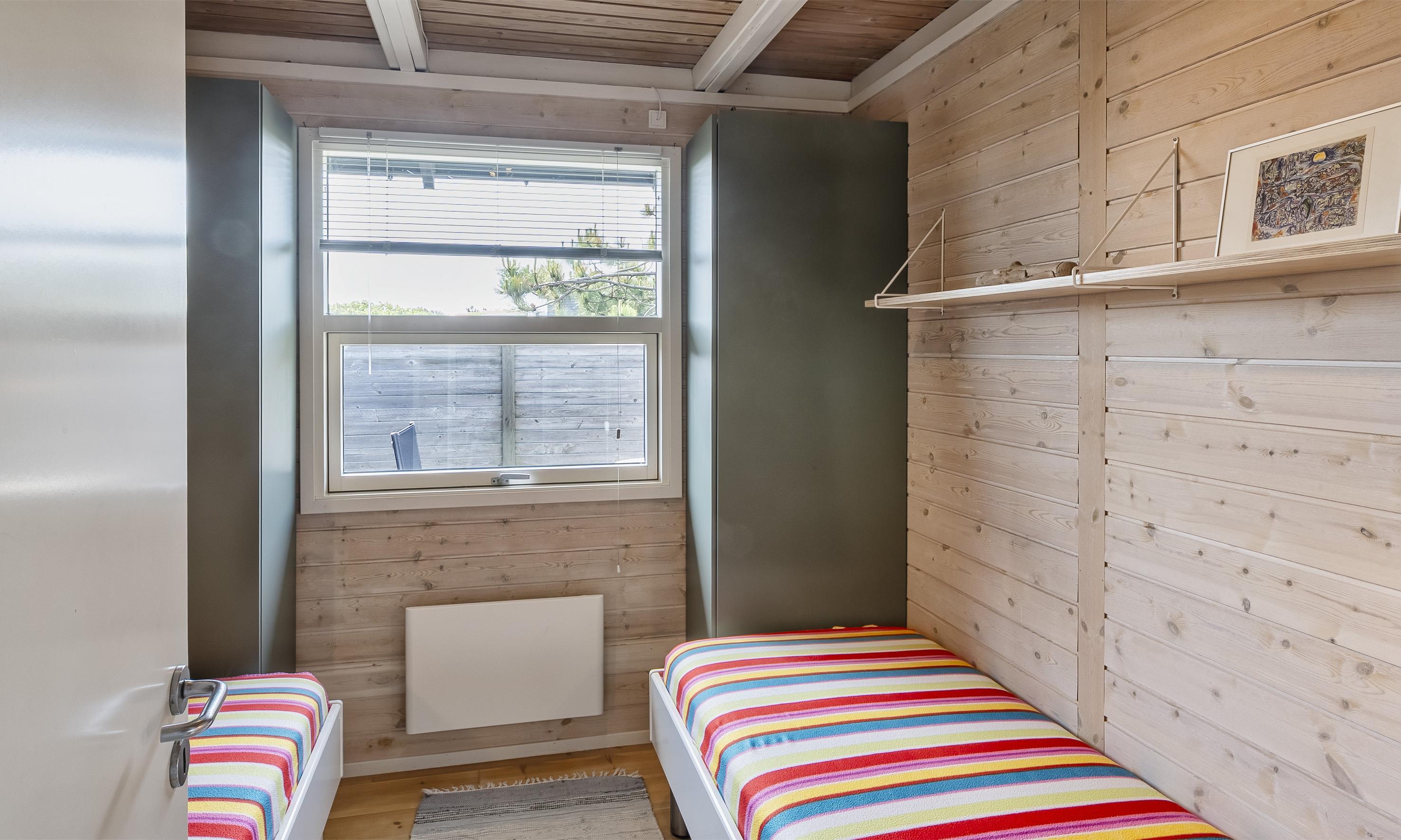 3 soveværelser. 2 med dobbeltseng 180x200 cm. 1 med 2 enkeltsenge (á 90x200 cm)