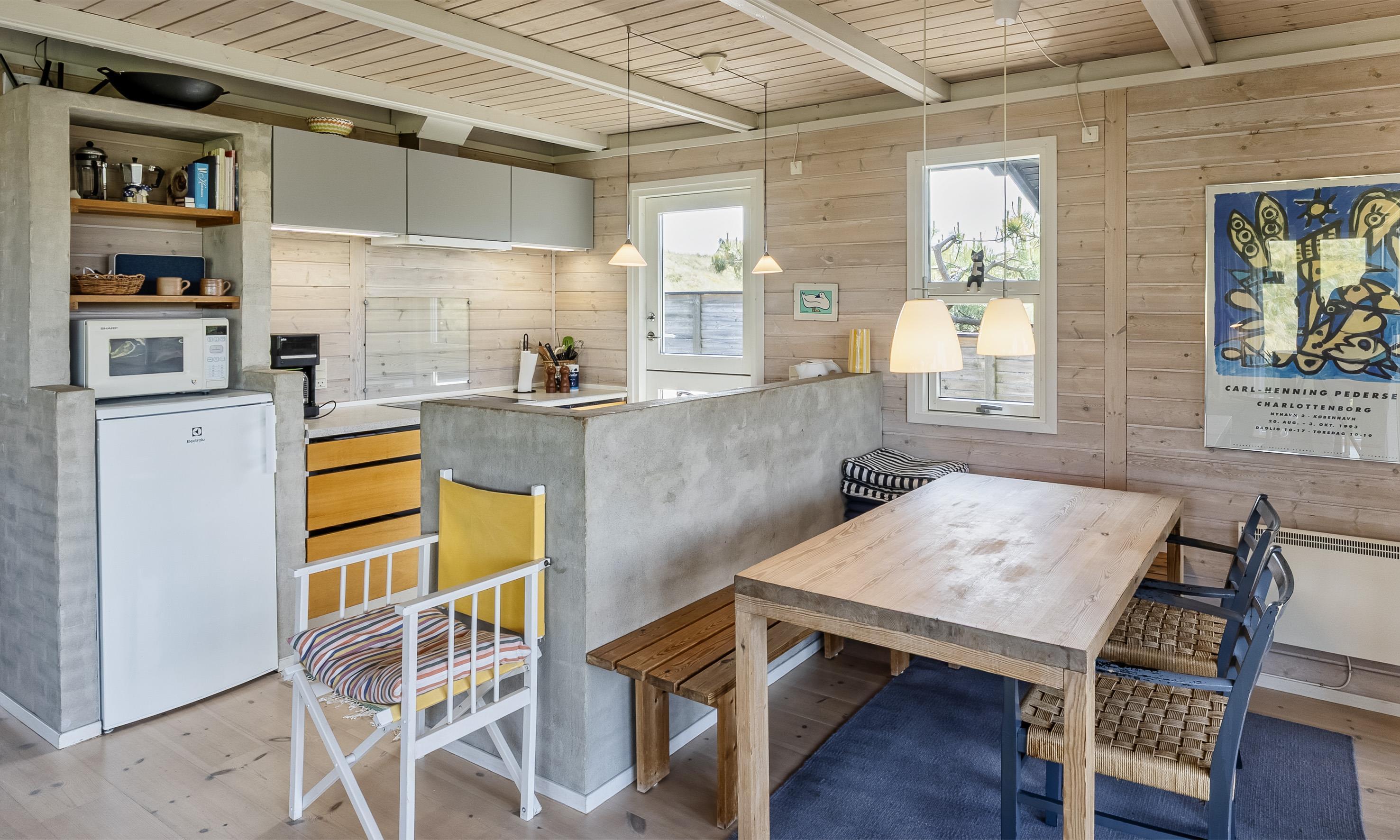Smagfuldt sommerhus til 6 personer, beliggende på naturskøn klitgrund, ca. 300 meter fra stranden. Stue med brændeovn, fjernsyn og parabol (danske og tyske programmer) samt åbent køkken med opvaskemaskine og mikroovn. Badeværelse med bruser/wc. Vaskemaskine. 3 soveværelser: DS + DS+ 2S. Det ene soveværelse med dobbeltseng er i forbindelse med stuen - adskilt med en skydedør og kan også fungere som tv stue. Trådløs internet. Varmepumpe, Dejlig, delvis lukket terrasse. Rygning er ikke tilladt. Husdyr er ikke tilladt! Byggeår 1975, renoveret 1996. Fra 2024 ladestander til El-biler.