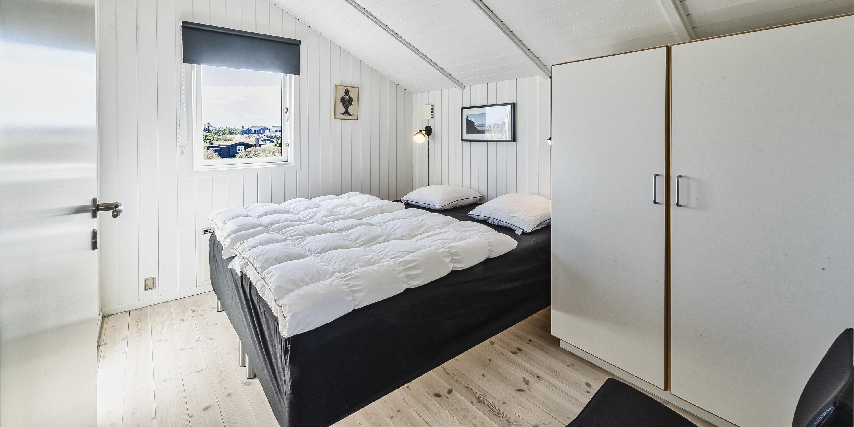 3 soveværelser. 1 med dobbeltseng 180x200 cm. 2 med 1 enkeltsenge (á 90x200 cm)