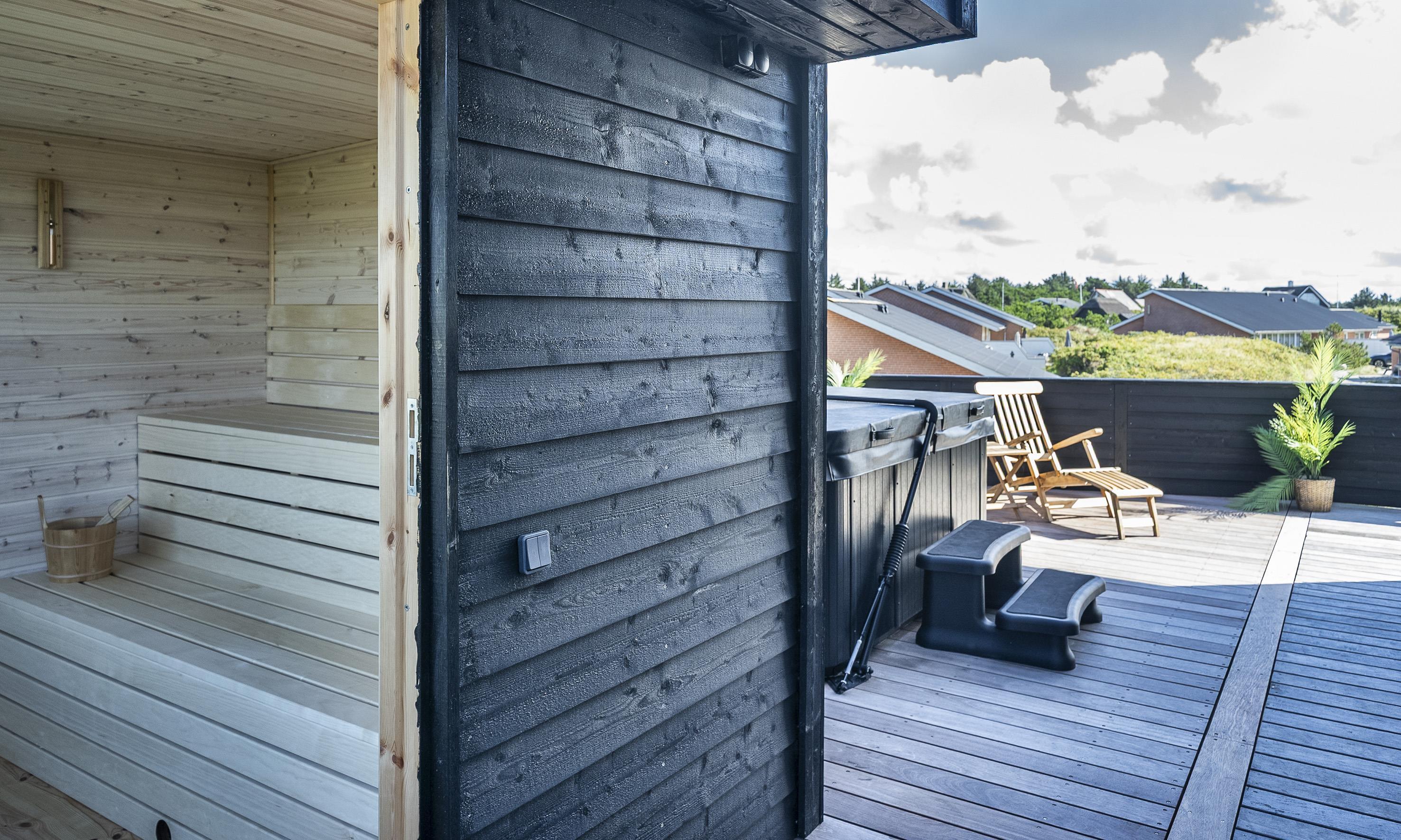 Omgivelserne omkring huset er en sand naturperle, perfekt til den, der ønsker at opleve den danske kystnatures skønhed. Udforsk de imponerende klitter, lyng og skovområder, der indbyder til lange vandreture og aktive dage i det fri. Efter en dag på stranden kan du slappe af på de dejlige terrasser, hvoraf en er delvis overdækket. Desuden tilbyder huset på en udendørs spa, sauna og en forfriskende bruser, ideel til at lindre musklerne efter en dag med aktiviteter. Den smukke naturgrund på 1398 m² giver masser af plads til leg og afslapning.