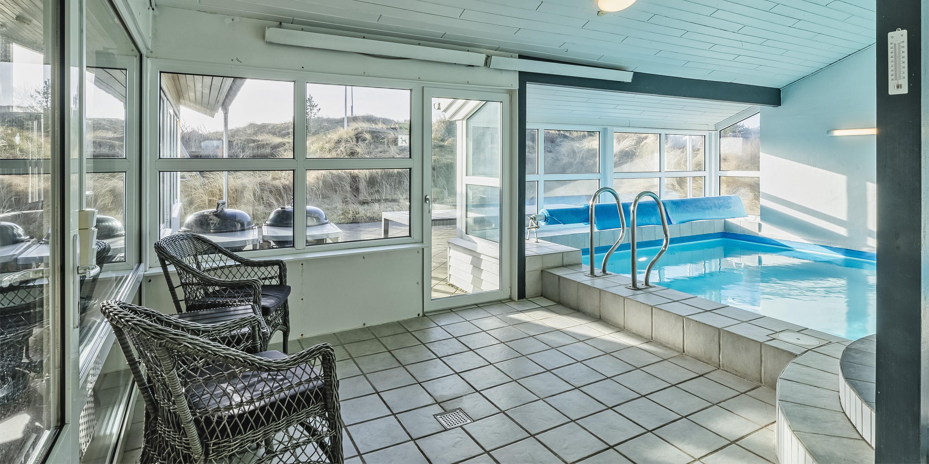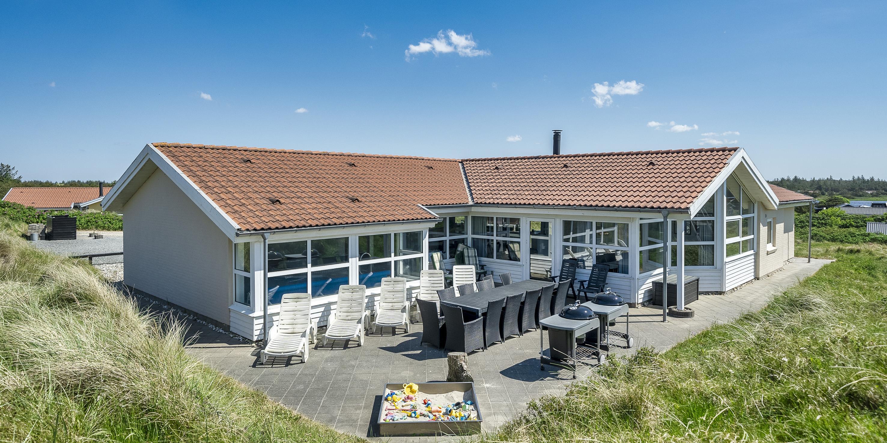 Meget flot sommerhus med pool i Vejers Strand til 12 gæster.
