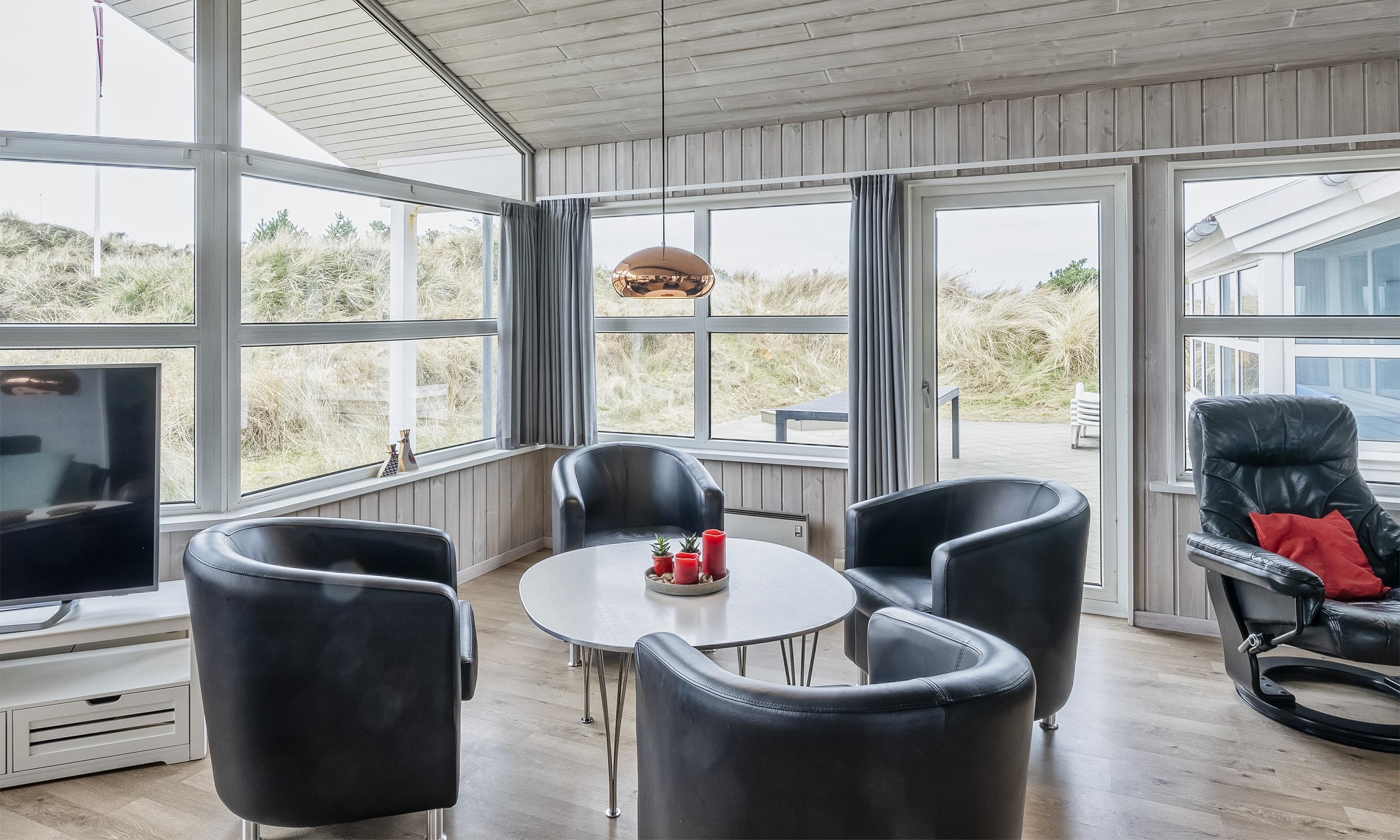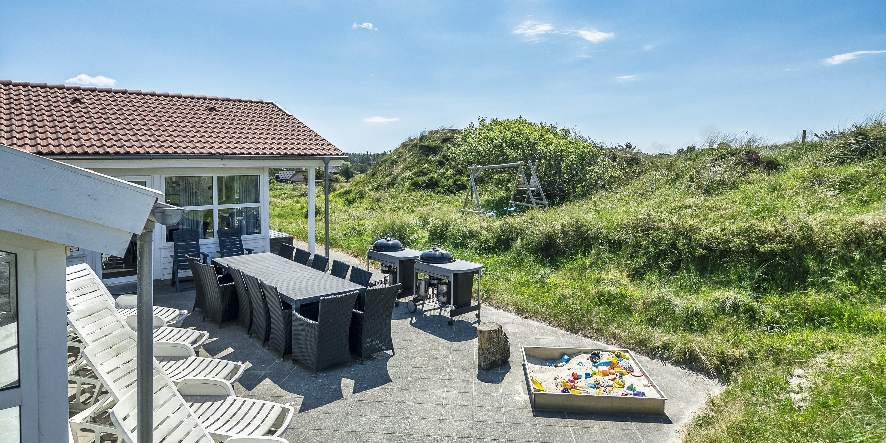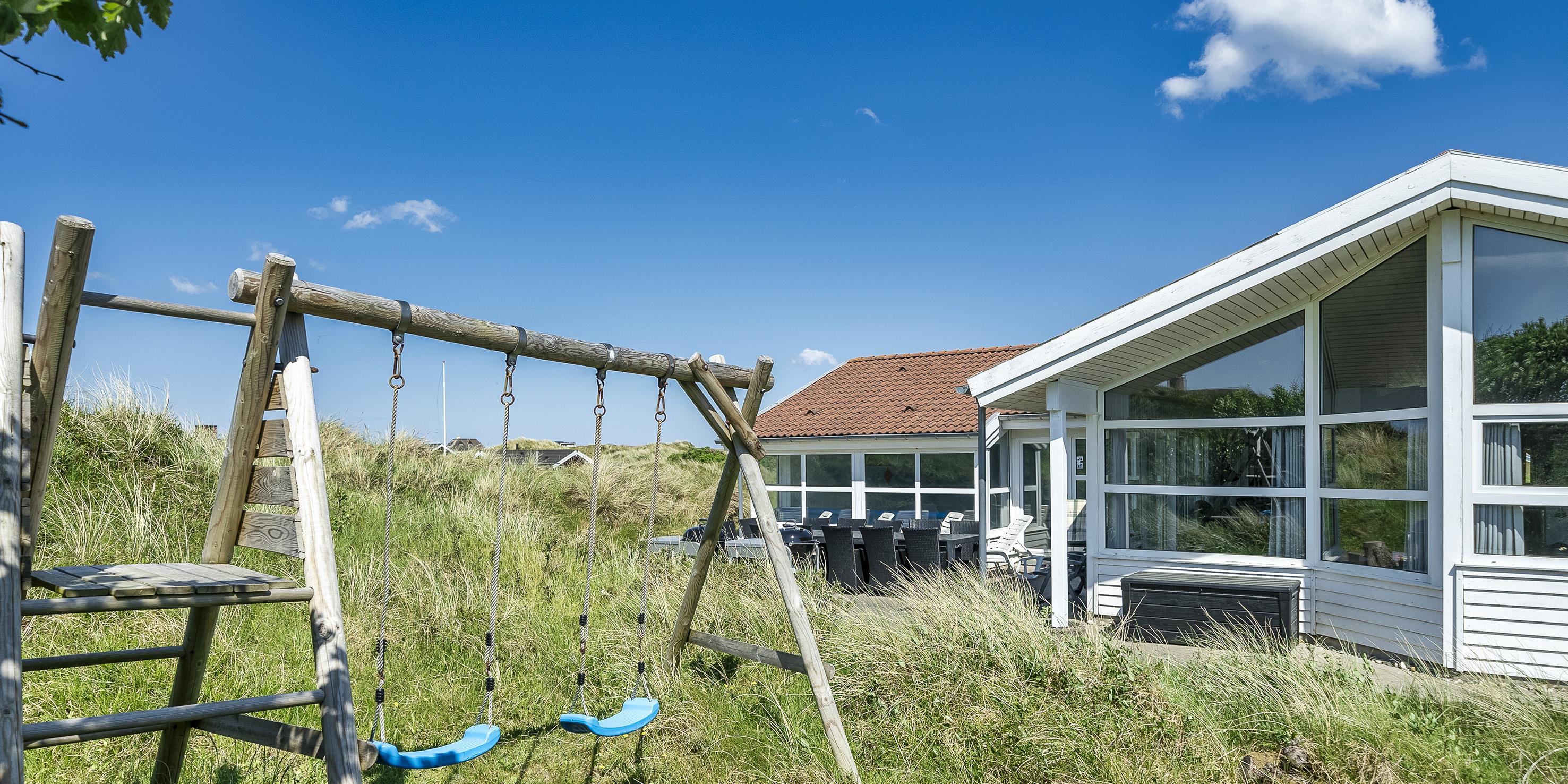 Sommerhuset byder på hele 223 m2 skøn atmosfære ude som inde, med god komfort for hele familien store som små året rundt. Huset ligger omkring 700 meter fra stranden samt 200 meter fra søerne ved Jafdalvej, hvor der er en skøn udsigt til.
