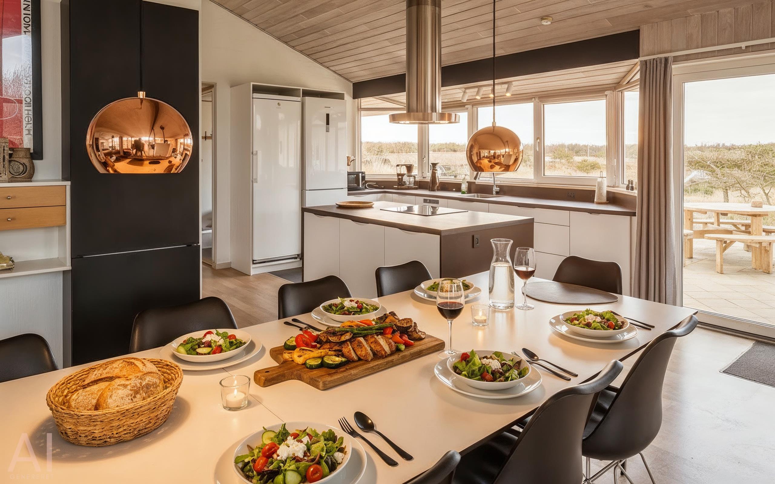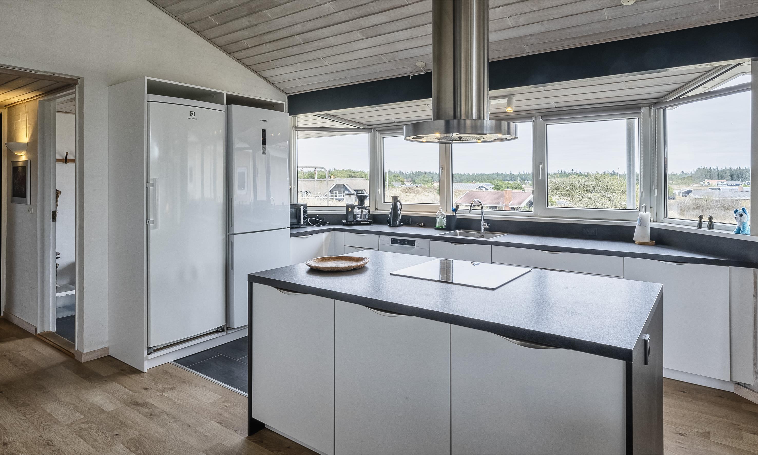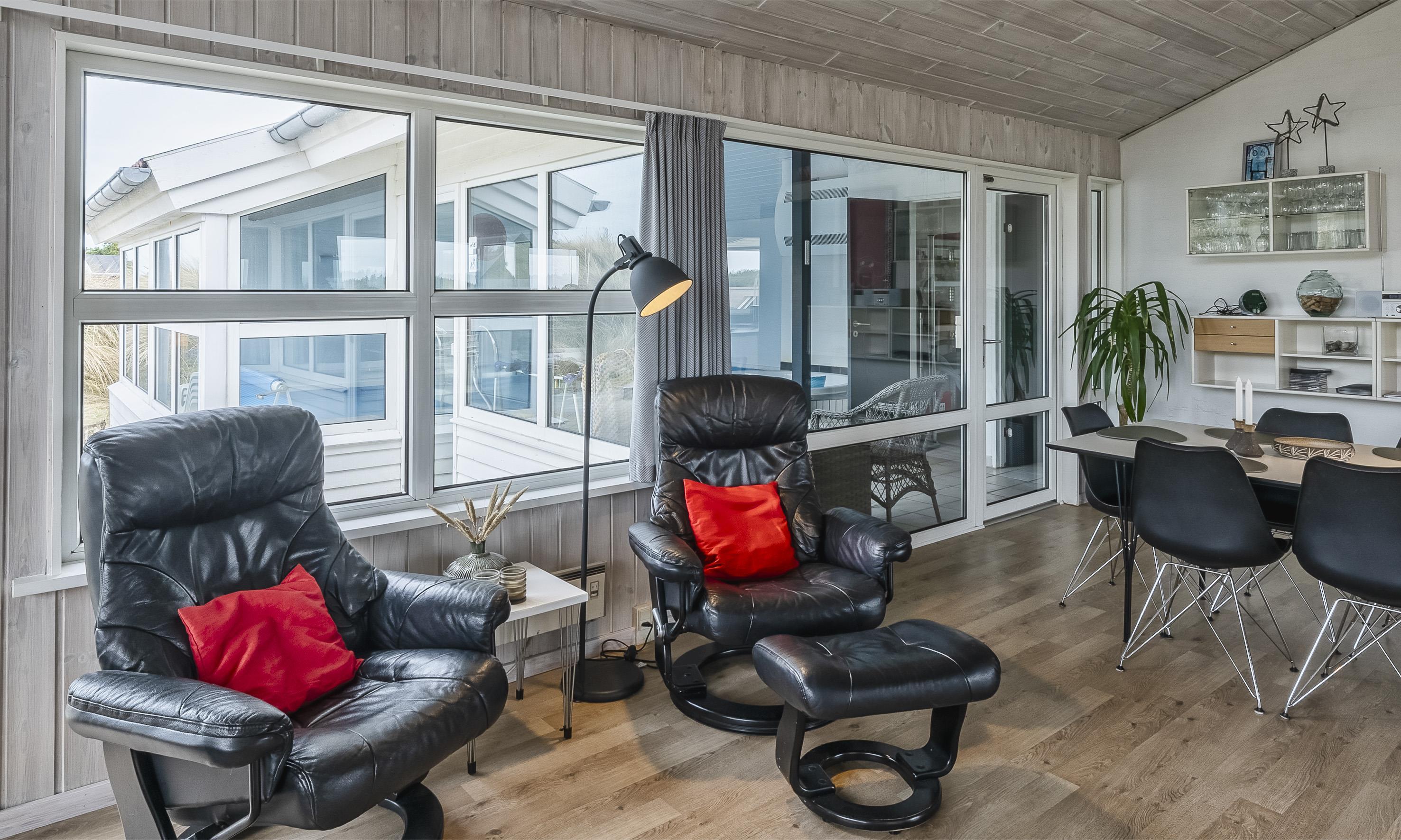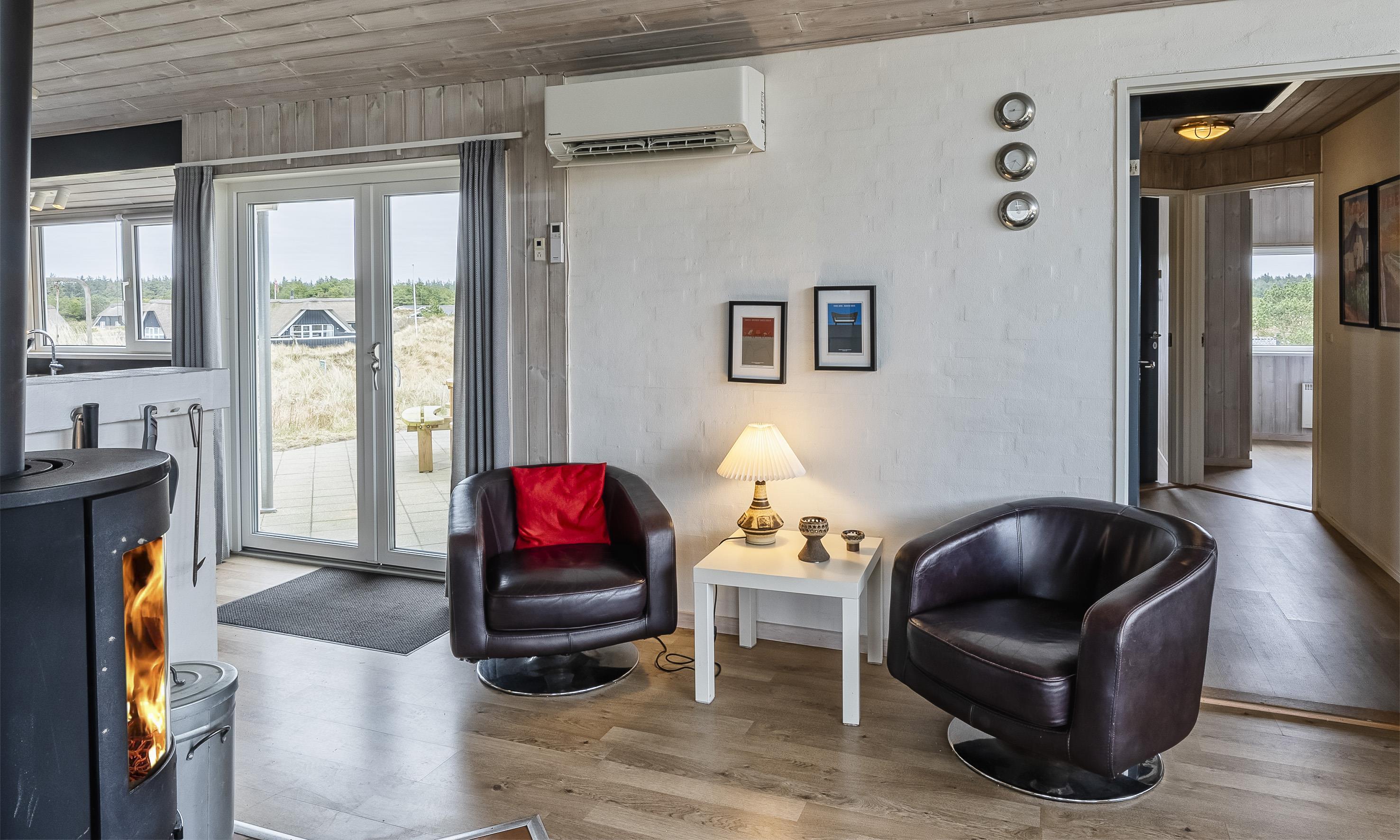 Sommerhuset byder på hele 223 m2 skøn atmosfære ude som inde, med god komfort for hele familien store som små året rundt. Huset ligger omkring 700 meter fra stranden samt 200 meter fra søerne ved Jafdalvej, hvor der er en skøn udsigt til.