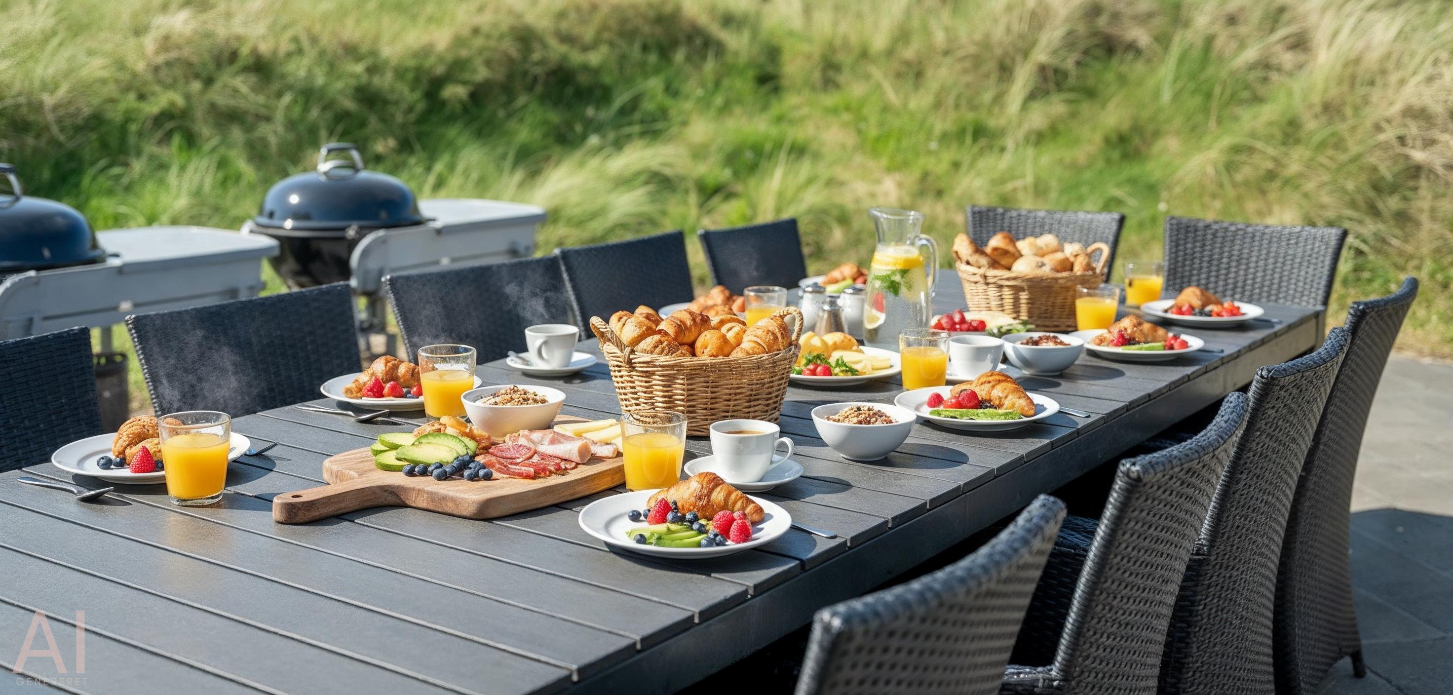 De udvendige faciliteter byder på en stor åben terrasse, hvor aftnerne kan forlænges og nydes til hen i foråret/efteråret. Sommerhuset ligger på en dejlig stor naturgrund med gode parkeringsforhold.