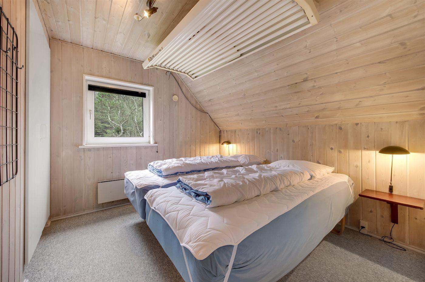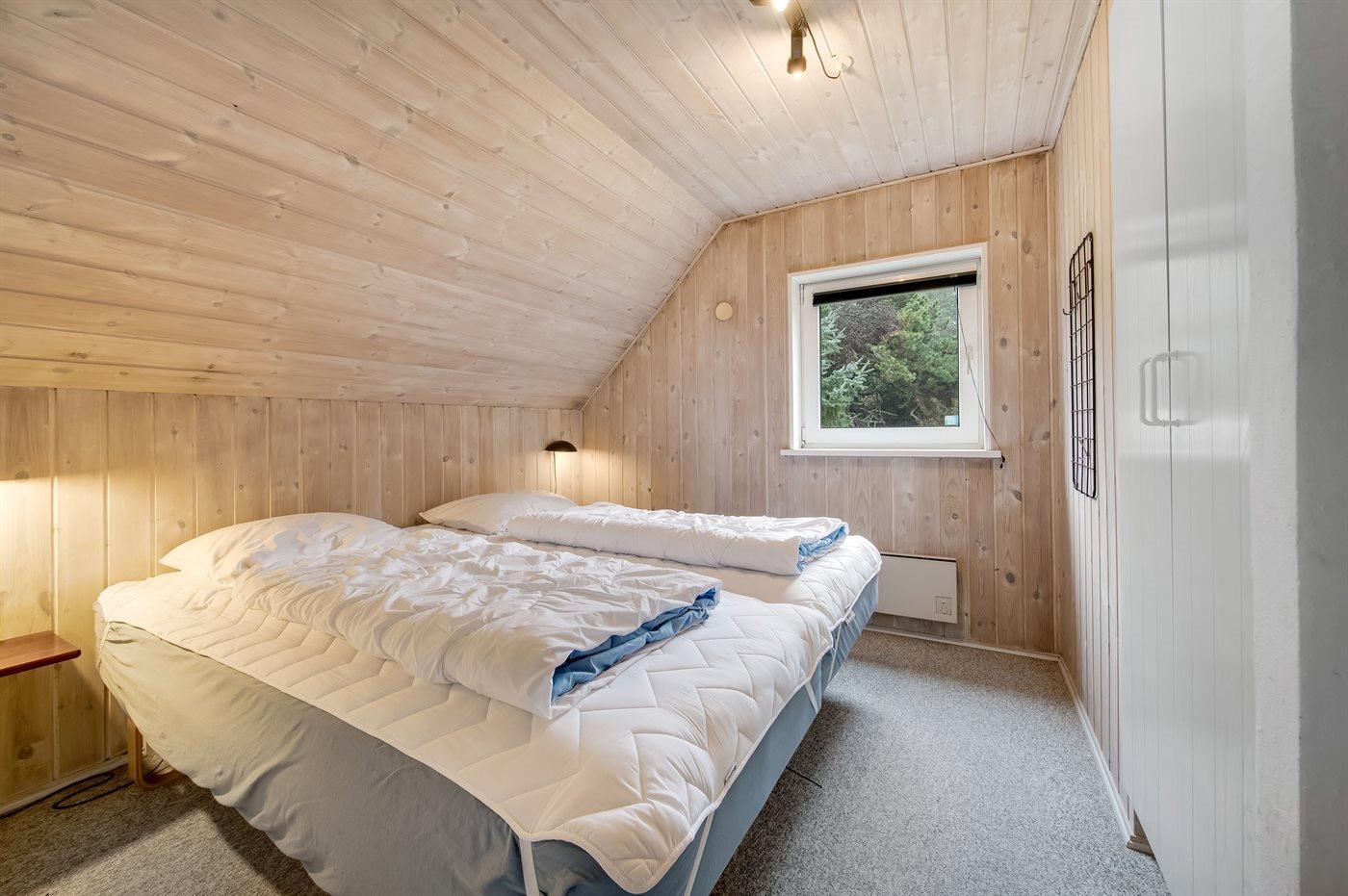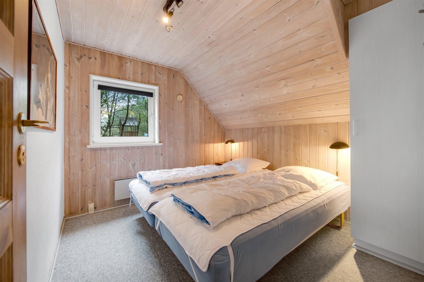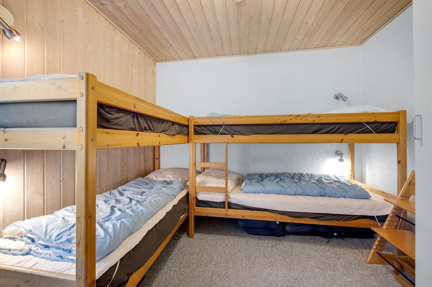 Der er i alt 4 soveværelser. Sovepladserne fordeler sig på: 6 sovepladser i dobbeltsenge. 4 sovepladser i køjesenge. Derudover er der 1 stk. barneseng.