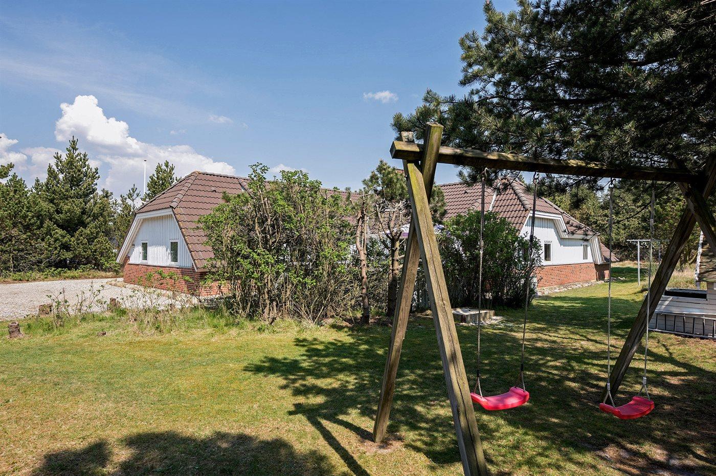 Ferieboligen er beliggende på en 2100 m² stor naturgrund. Der er 1100 m til havet. Nærmeste forretning er beliggende i en afstand af 900 m. Til ferieboligen hører 45 m² terrasseareal. Der er redskabsrum. Gynge. Sandkasse. Legehus. Parkering ved ferieboligen.