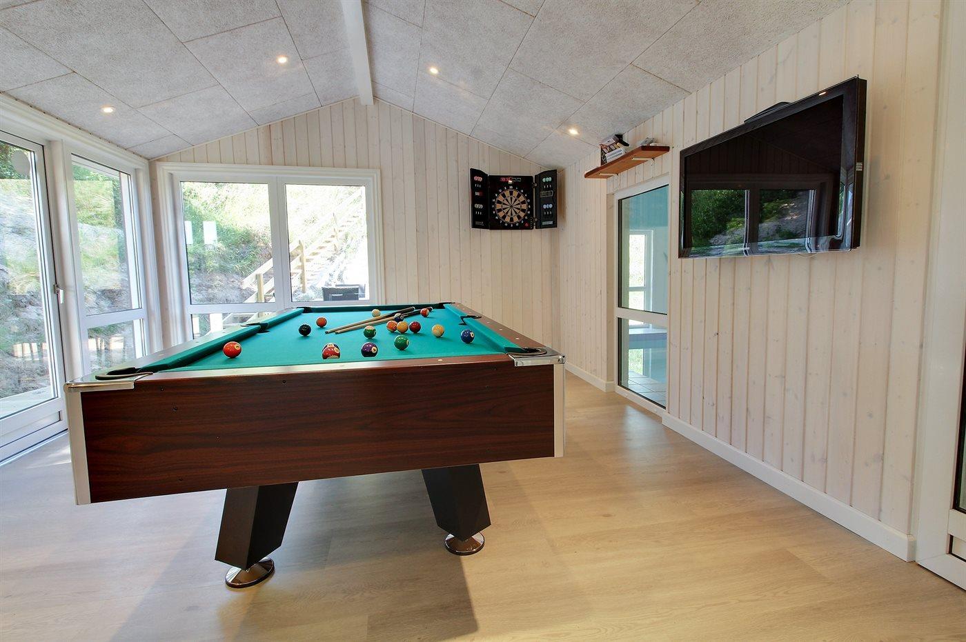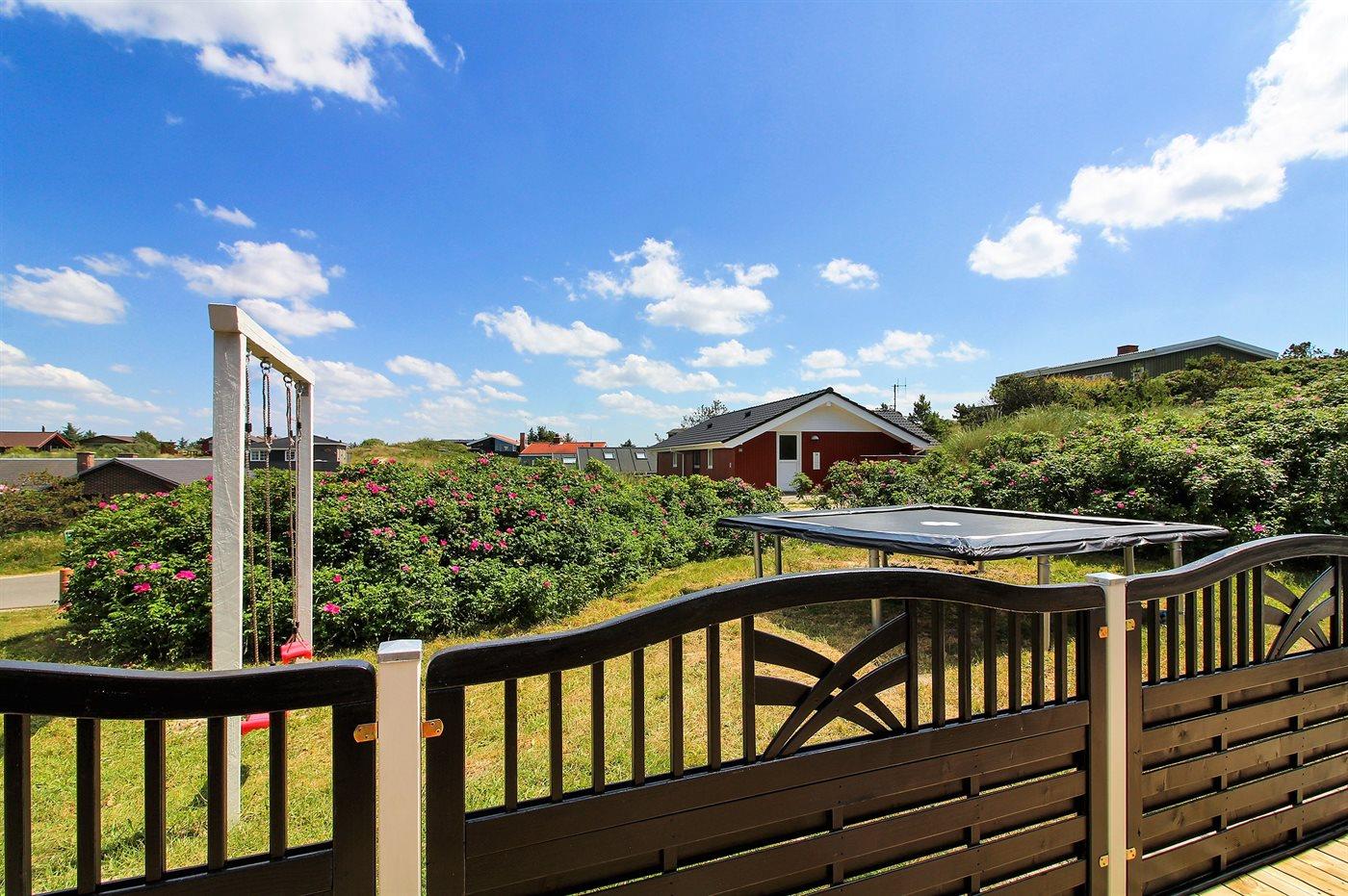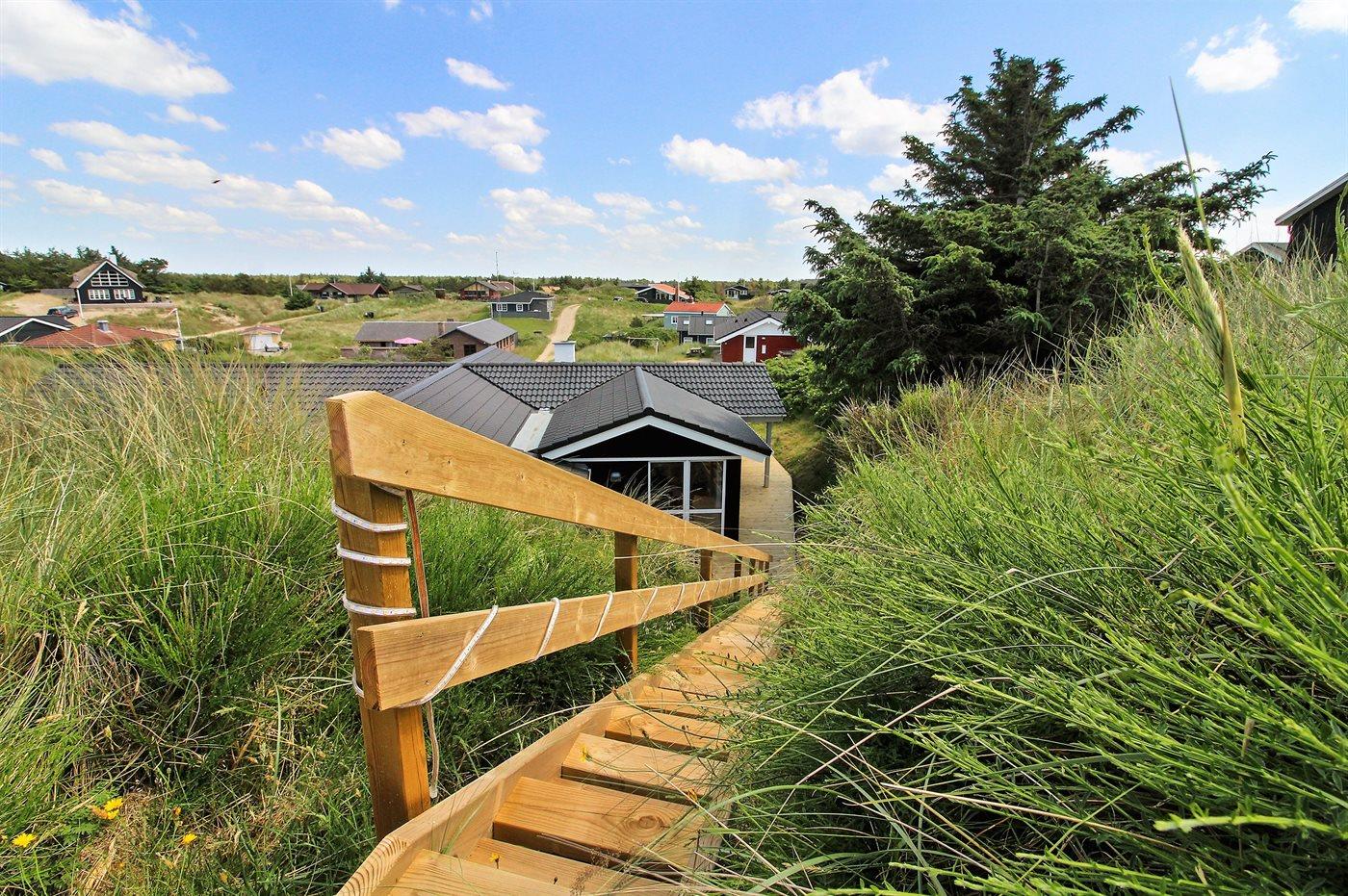 Ferieboligen er beliggende på en 2000 m² stor naturgrund. Der er 200 m til havet. Nærmeste forretning er beliggende i en afstand af 200 m. Til ferieboligen hører 69 m² terrasseareal. Desuden er der 20 m² overdækket terrasse. Der er redskabsrum. Gynge. Trampolin. Der er installeret stik til opladning af elbil. Parkering ved ferieboligen.