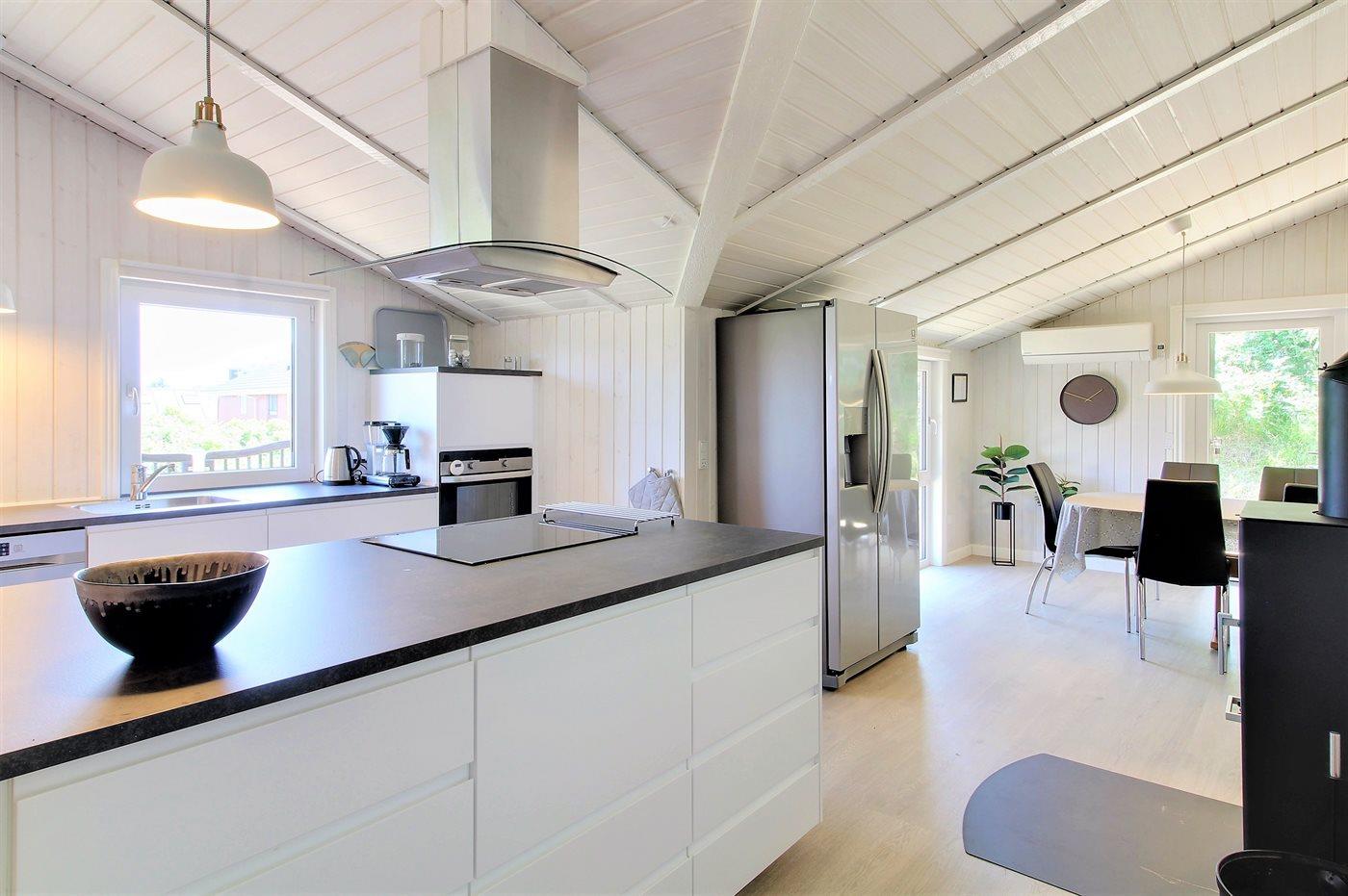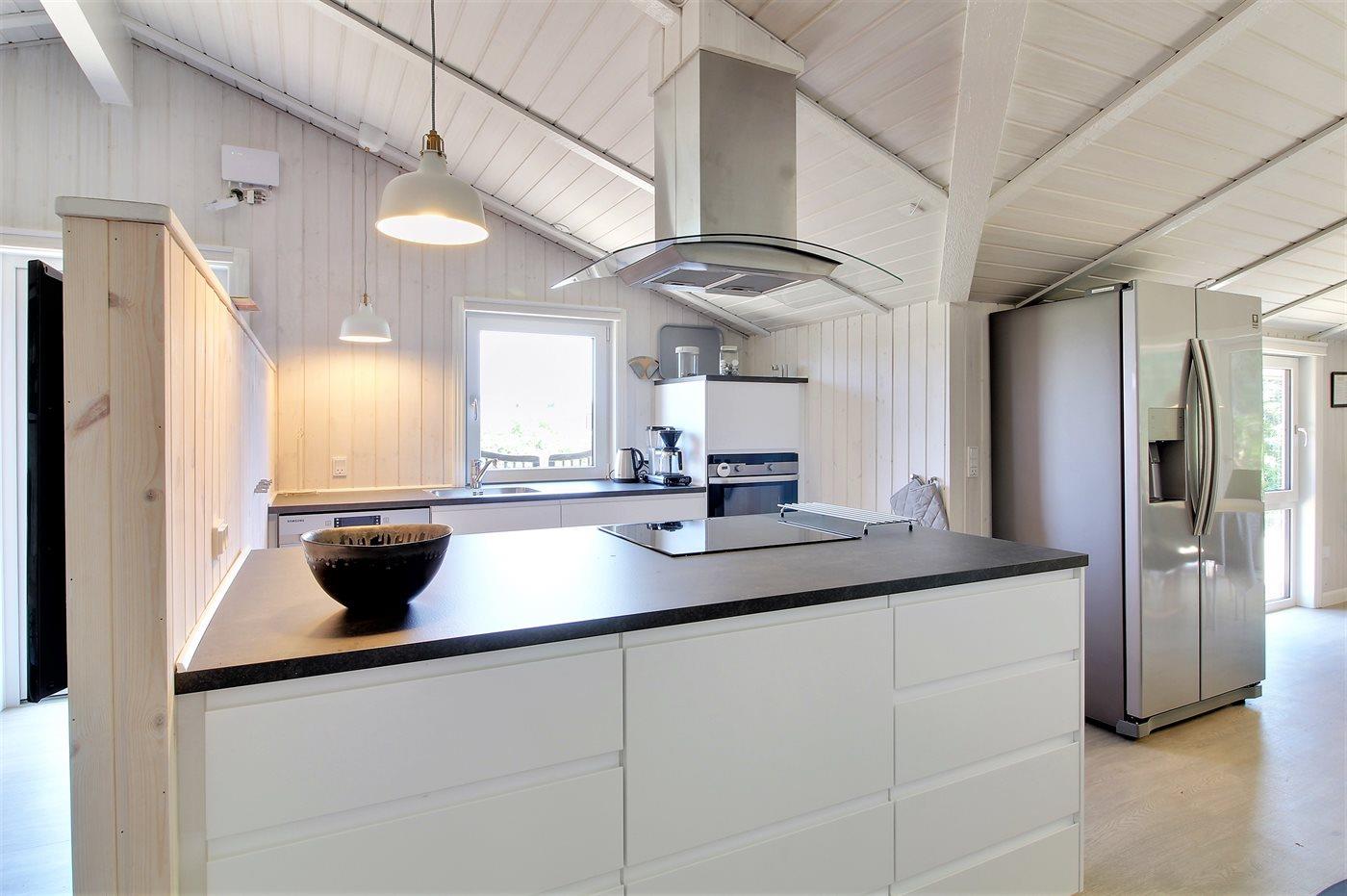 Køkkenet er udstyret med 1 amerikansk køleskab. Der er 4 induktionskogeplader, varmluftovn, mikrobølgeovn samt opvaskemaskine.