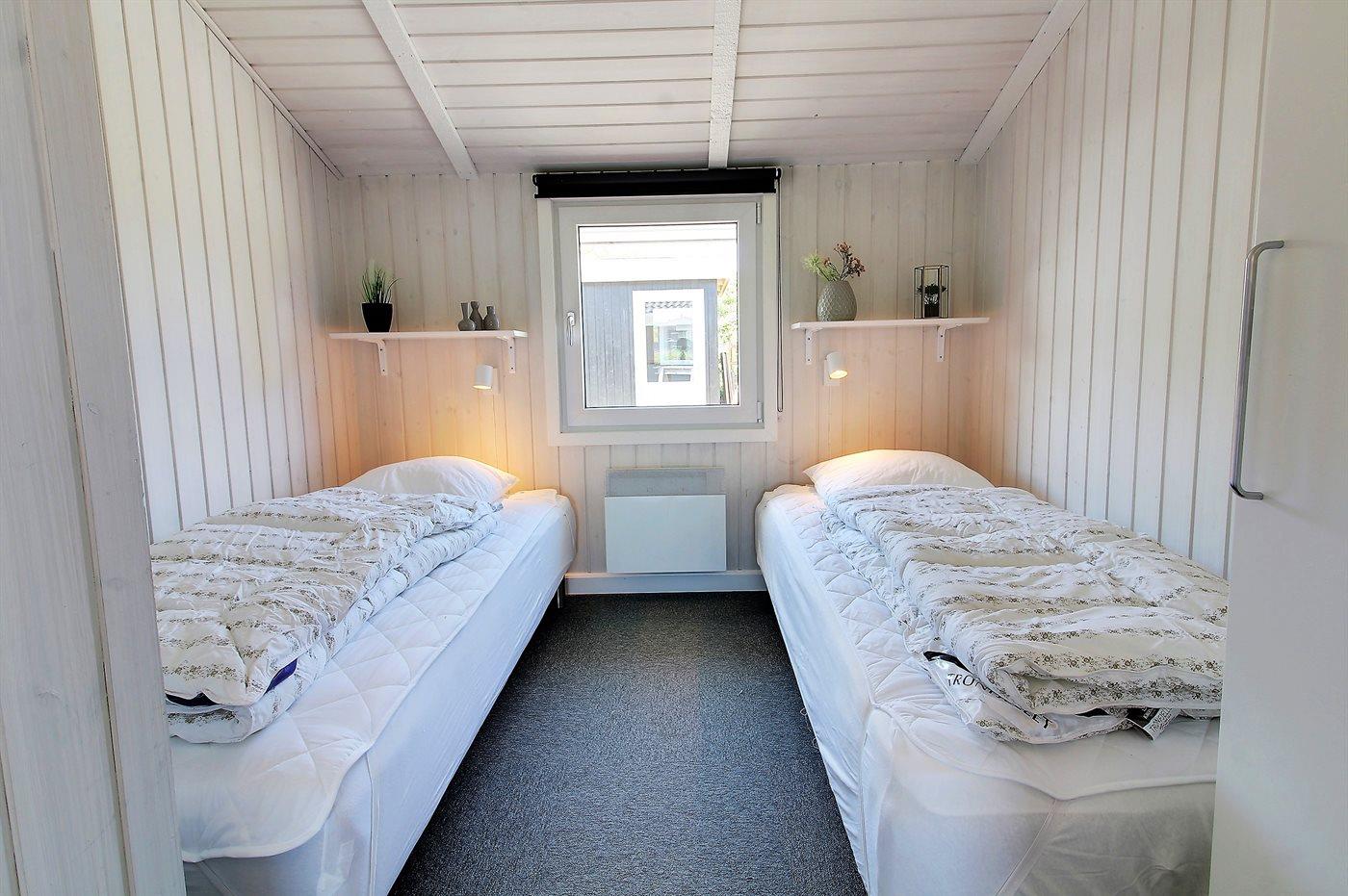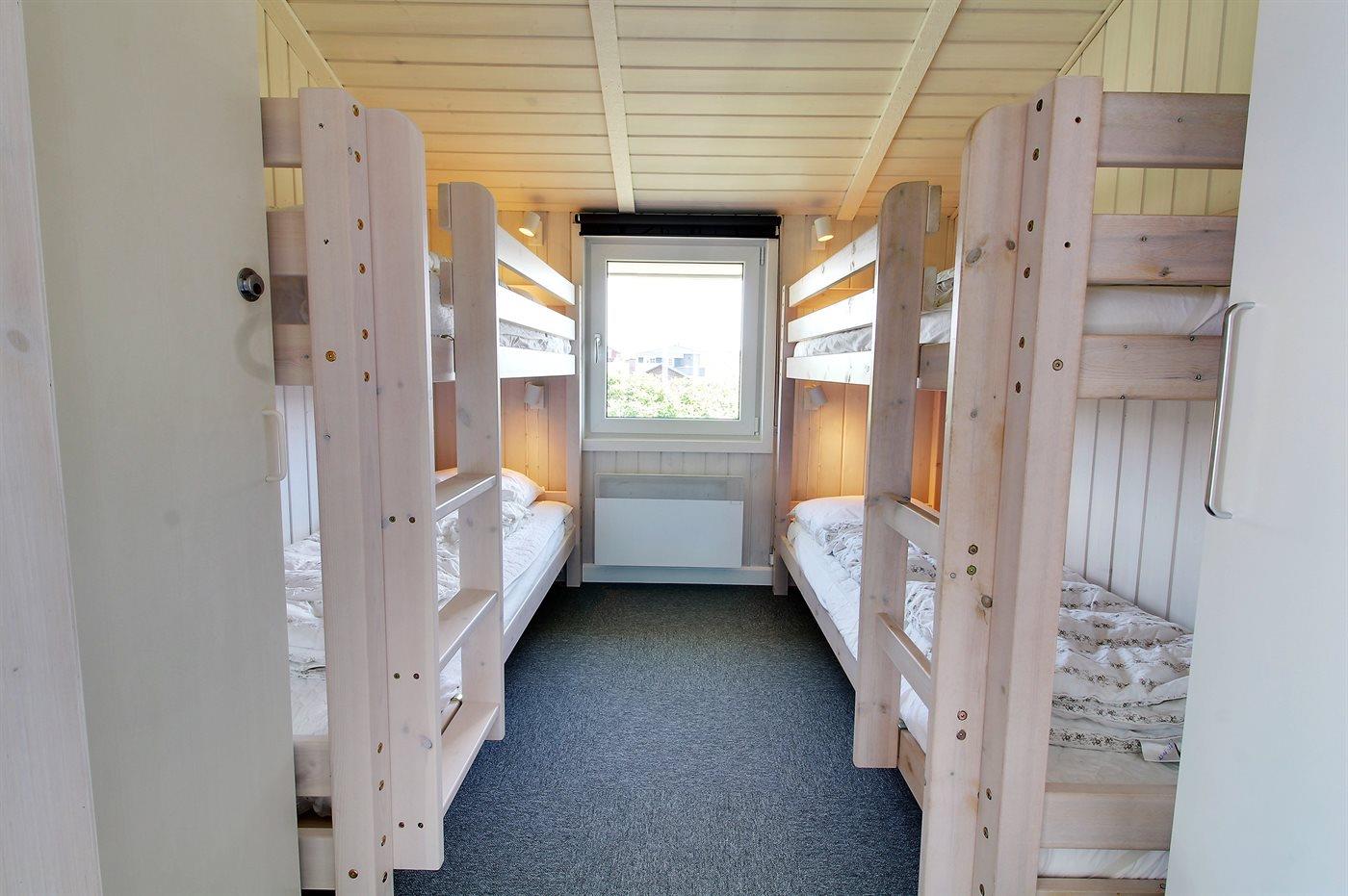 Der er i alt 4 soveværelser. Sovepladserne fordeler sig på: 4 sovepladser i dobbeltsenge. 2 sovepladser i enkeltsenge. 4 sovepladser i køjesenge.