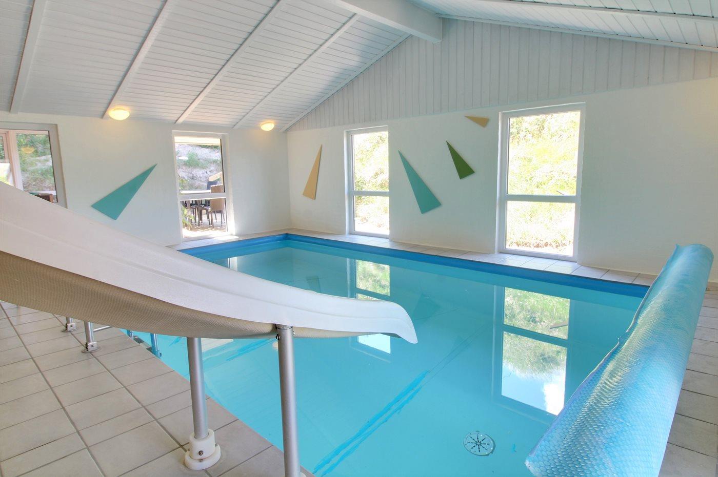 I den indendørs swimmingpool er der mulighed for leg og hyggeligt samvær. Swimmingpoolen måler op til 3,5 m i bredden, 5,6 m i længden og den er op til 1,4 m dyb. Vandet er mellem 24 og 28° C varmt. Swimmingpoolen har modstrømsanlæg. Til de små er der desuden børnepool.
