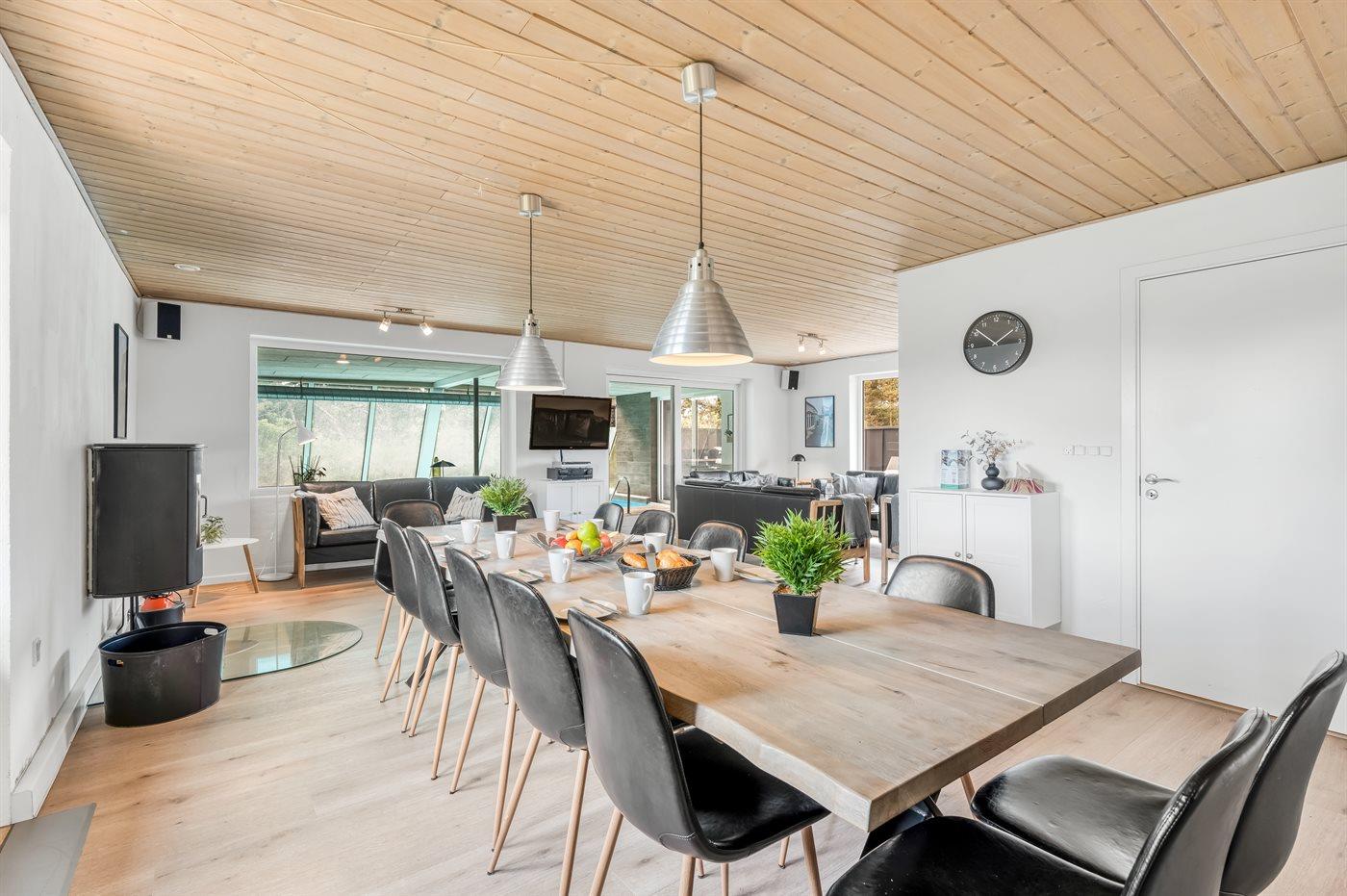 Sommerhuset egner sig til 14 personer samt 1 barn op til 3 år. Ferieboligen er på 236 m² Ferieboligen er bygget i 1973, er i 2 plan, I 2016 gennemgik ferieboligen en delvis renovering. Det er tilladt at medbringe 2 husdyr. Ferieboligen er udstyret med energibesparende varmepumpe. Ferieboligen har vaskemaskine. Tørretumbler. Frysekapacitet på 70 liter. Der er desuden brændeovn. Til de små er der 4 stk. barnestole: 2 af dem er til børn 0-3 år, hvor de kan spændes fast, mens de 2 andre er højstole til børn fra 2 år og op, hvor de kan sidde selv.