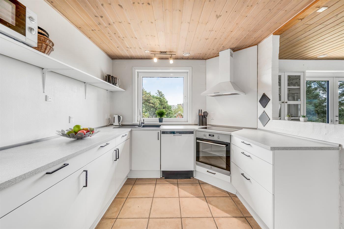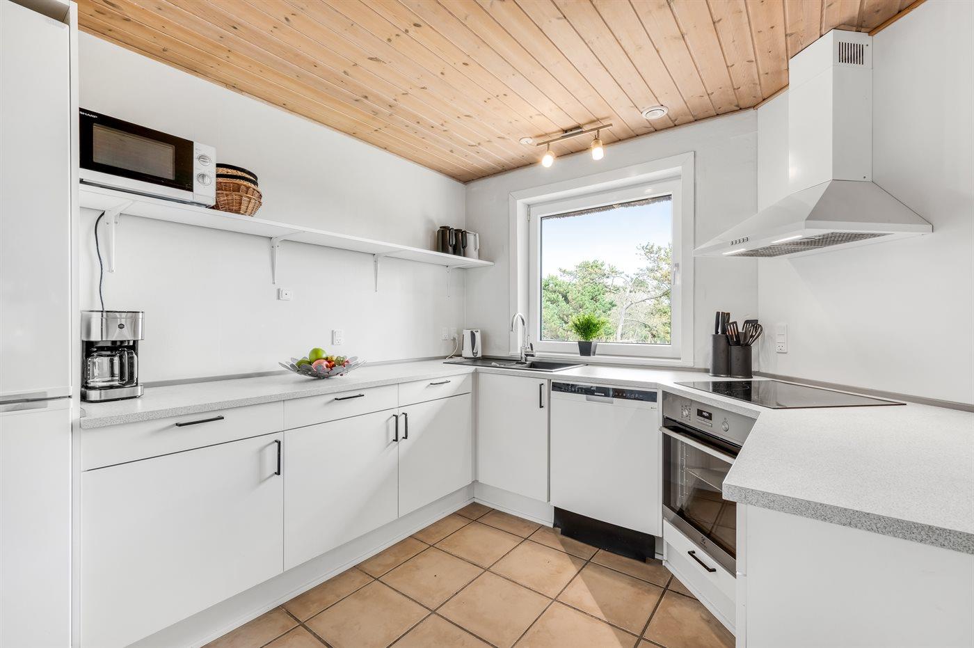 Køkkenet er udstyret med 1 køleskab. Der er 4 induktionskogeplader, varmluftovn, mikrobølgeovn samt opvaskemaskine.
