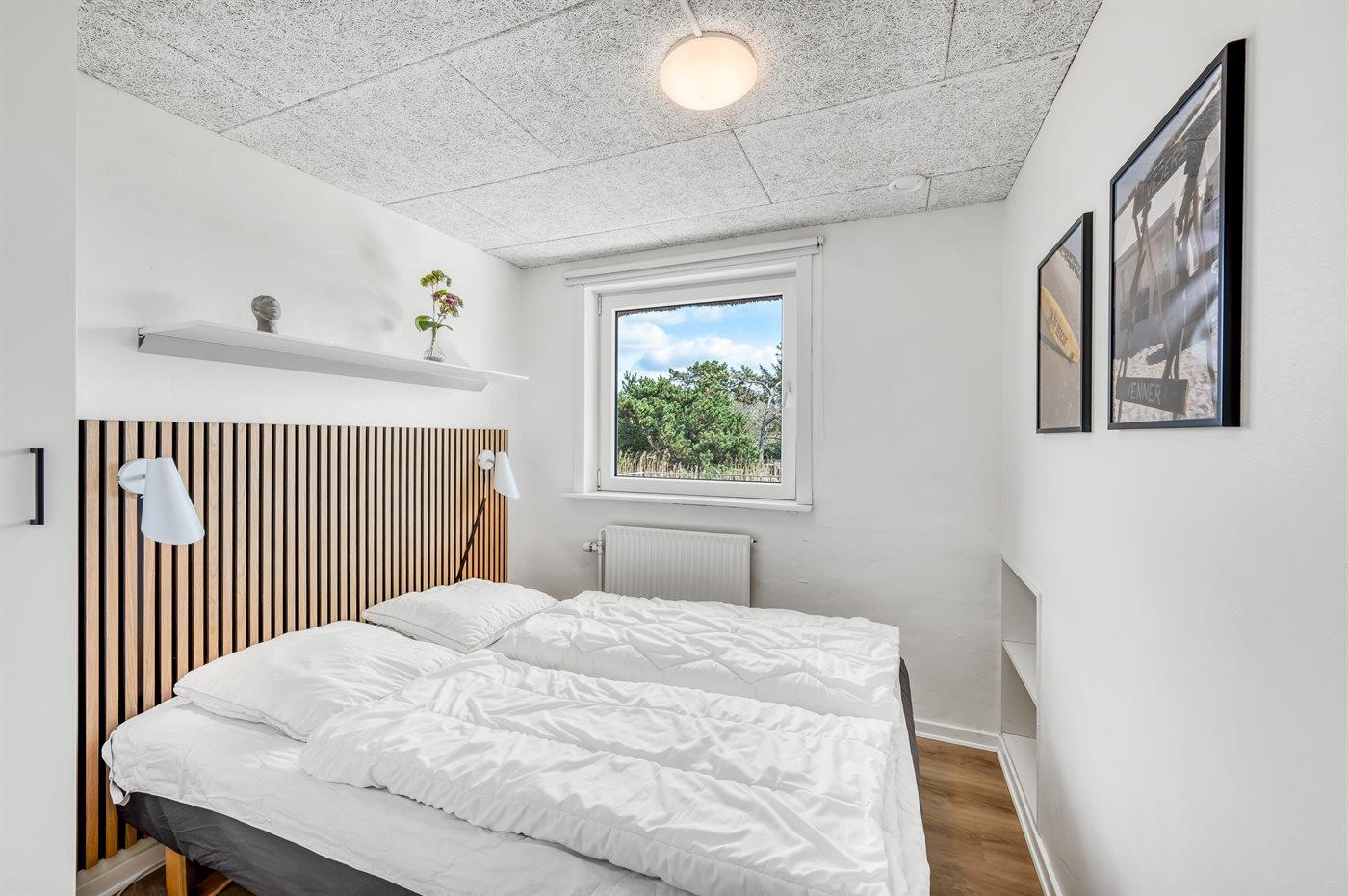 Der er i alt 6 soveværelser. Sovepladserne fordeler sig på: 12 sovepladser i dobbeltsenge. 2 sovepladser i enkeltsenge. Derudover er der 1 stk. barneseng.