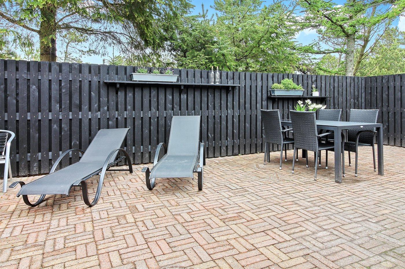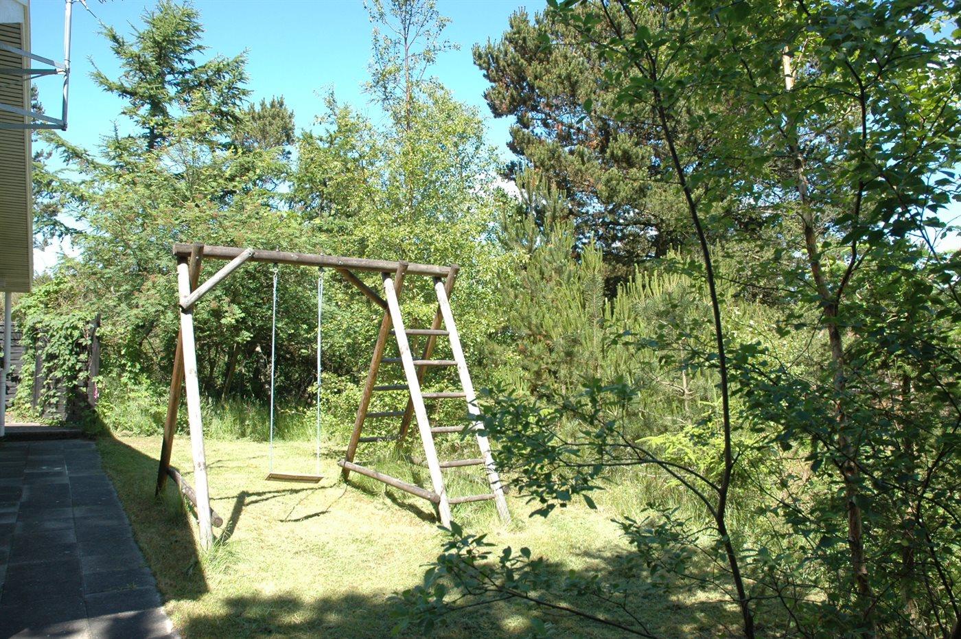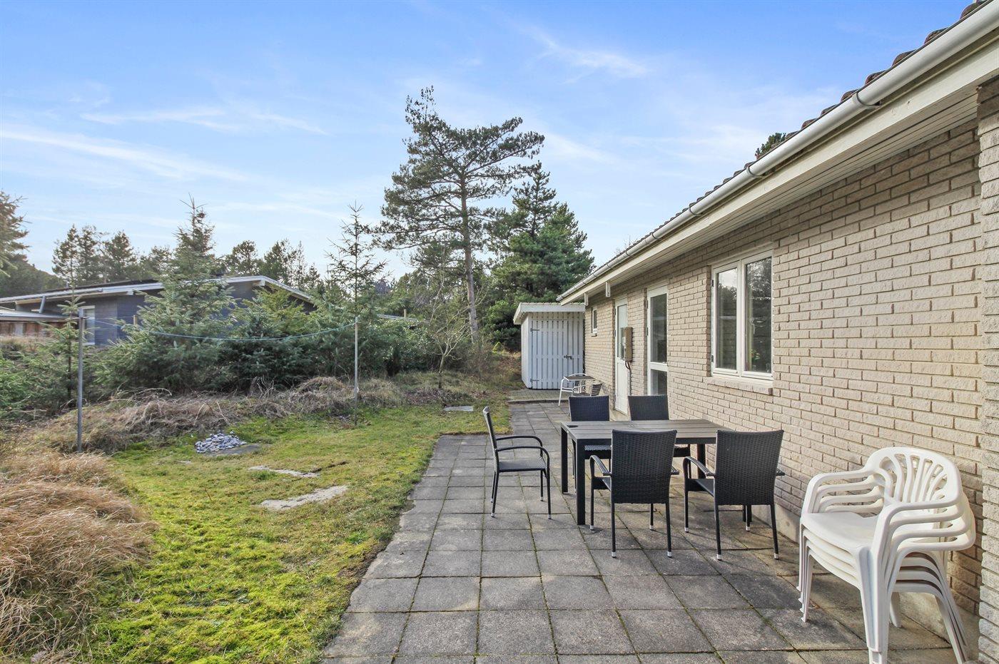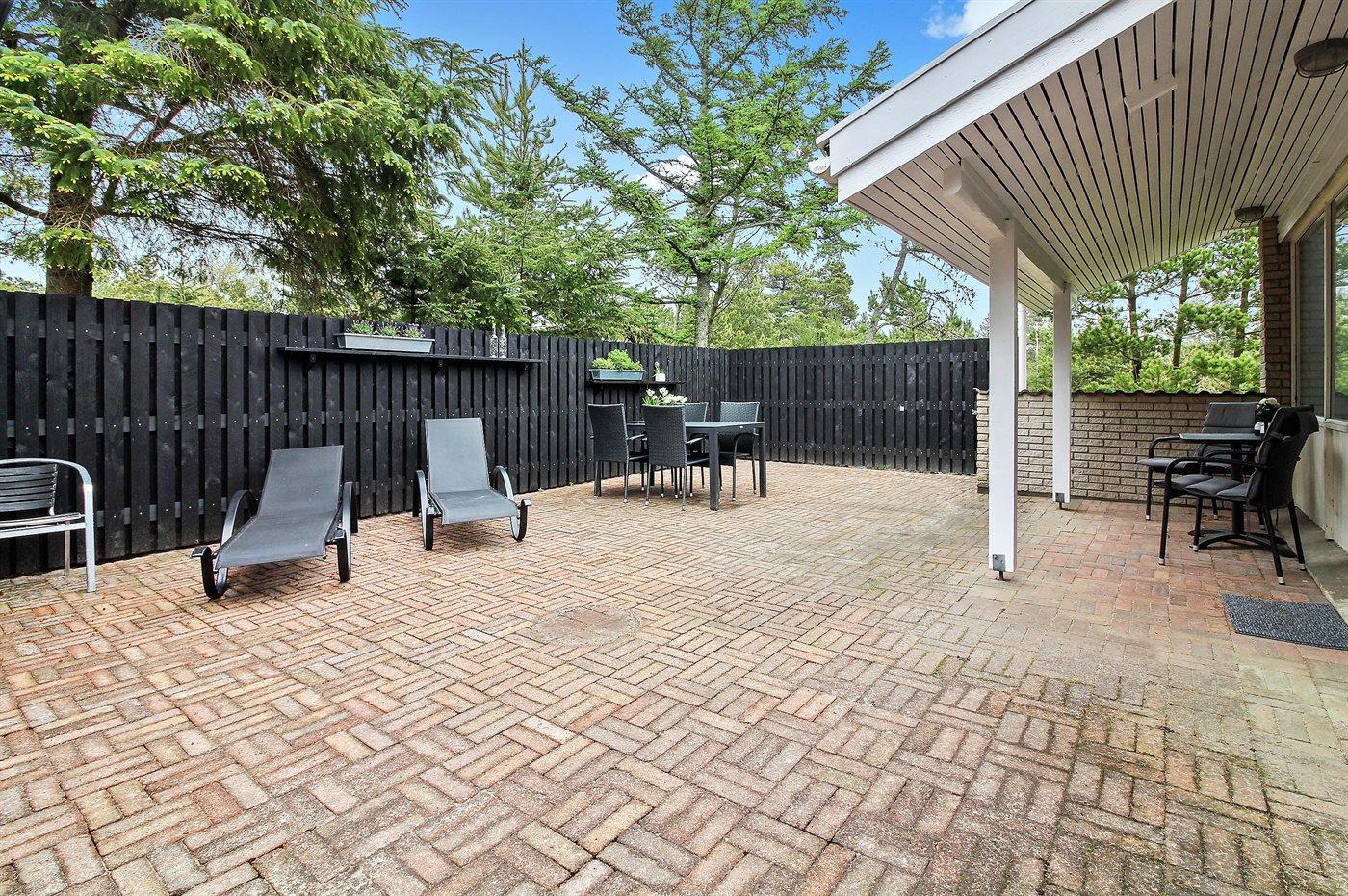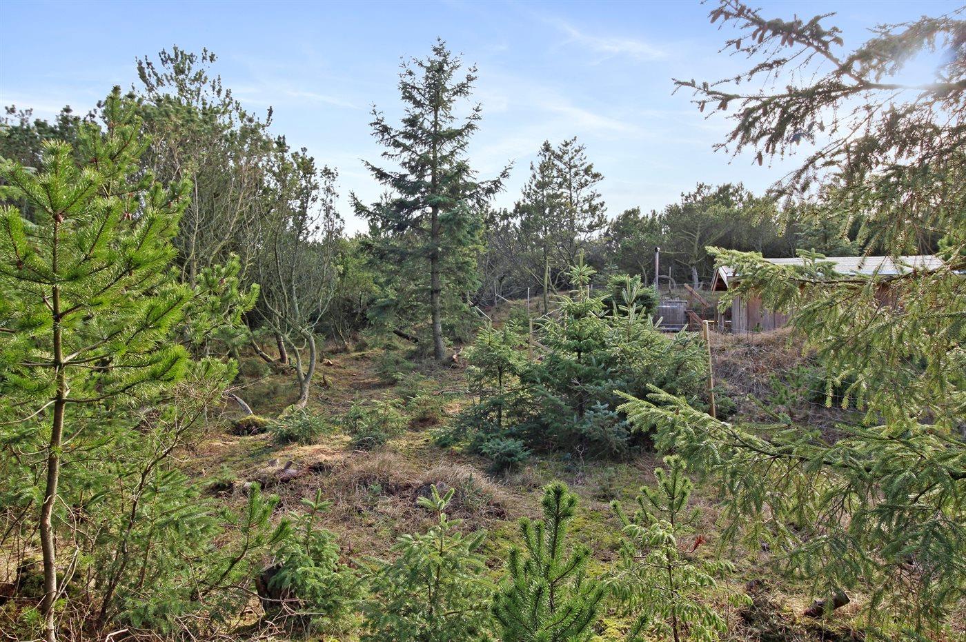 Ferieboligen er beliggende på en 1550 m² stor naturgrund. Der er 600 m til havet. Nærmeste forretning er beliggende i en afstand af 400 m. Til ferieboligen hører 138 m² terrasseareal. Desuden er der 6 m² overdækket terrasse. Gynge. Sandkasse. Der er carport til rådighed. Parkering ved ferieboligen.