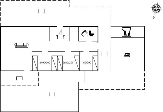 Der er i alt 3 soveværelser. Sovepladserne fordeler sig på: 5 sovepladser i enkeltsenge. Derudover er der 1 stk. barneseng.
