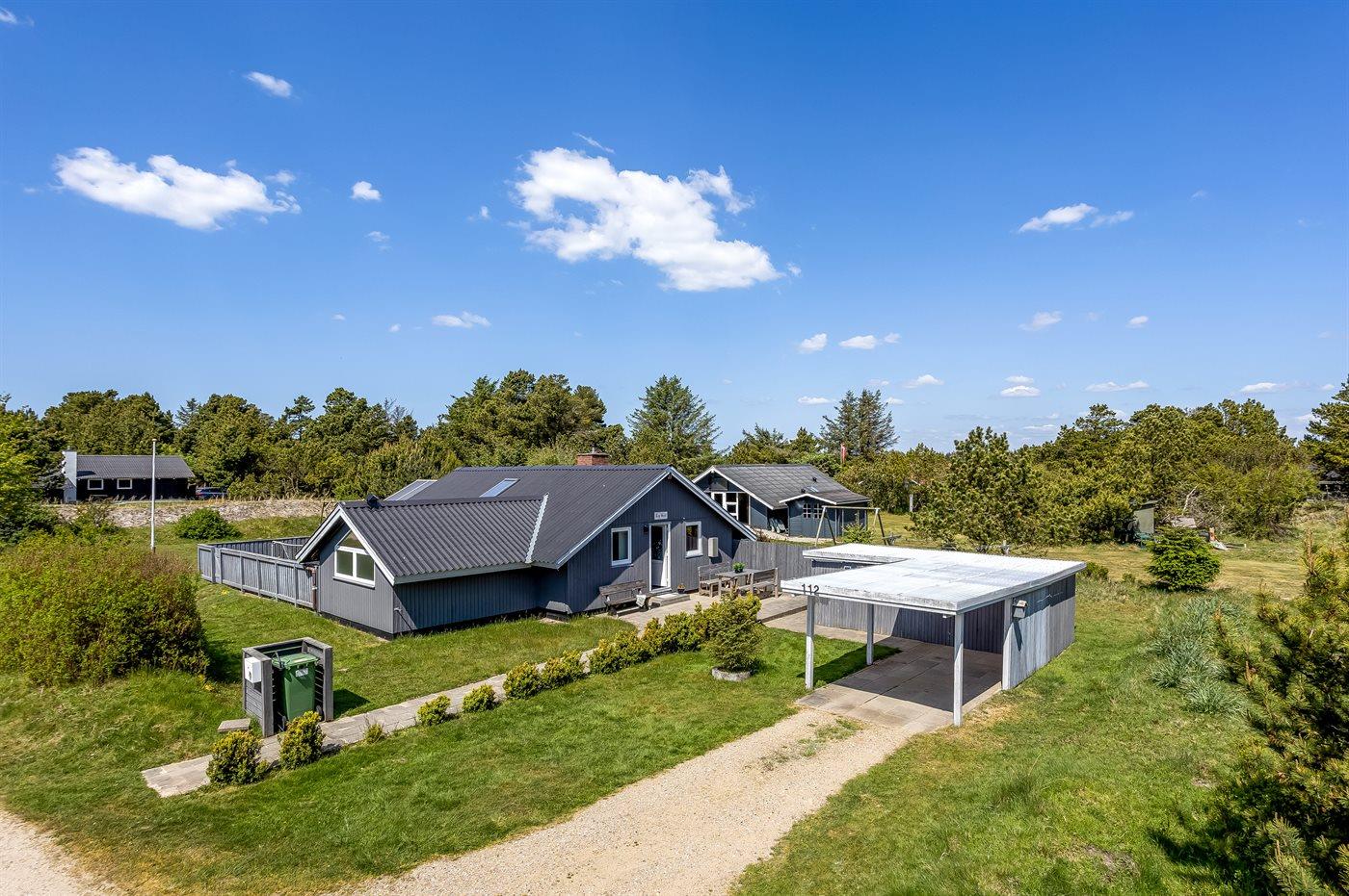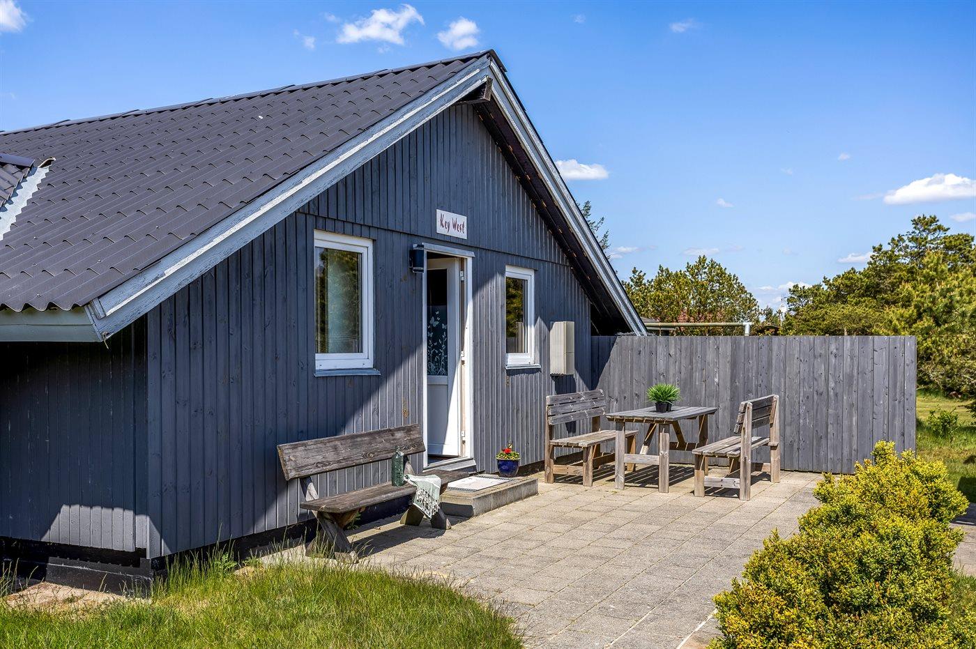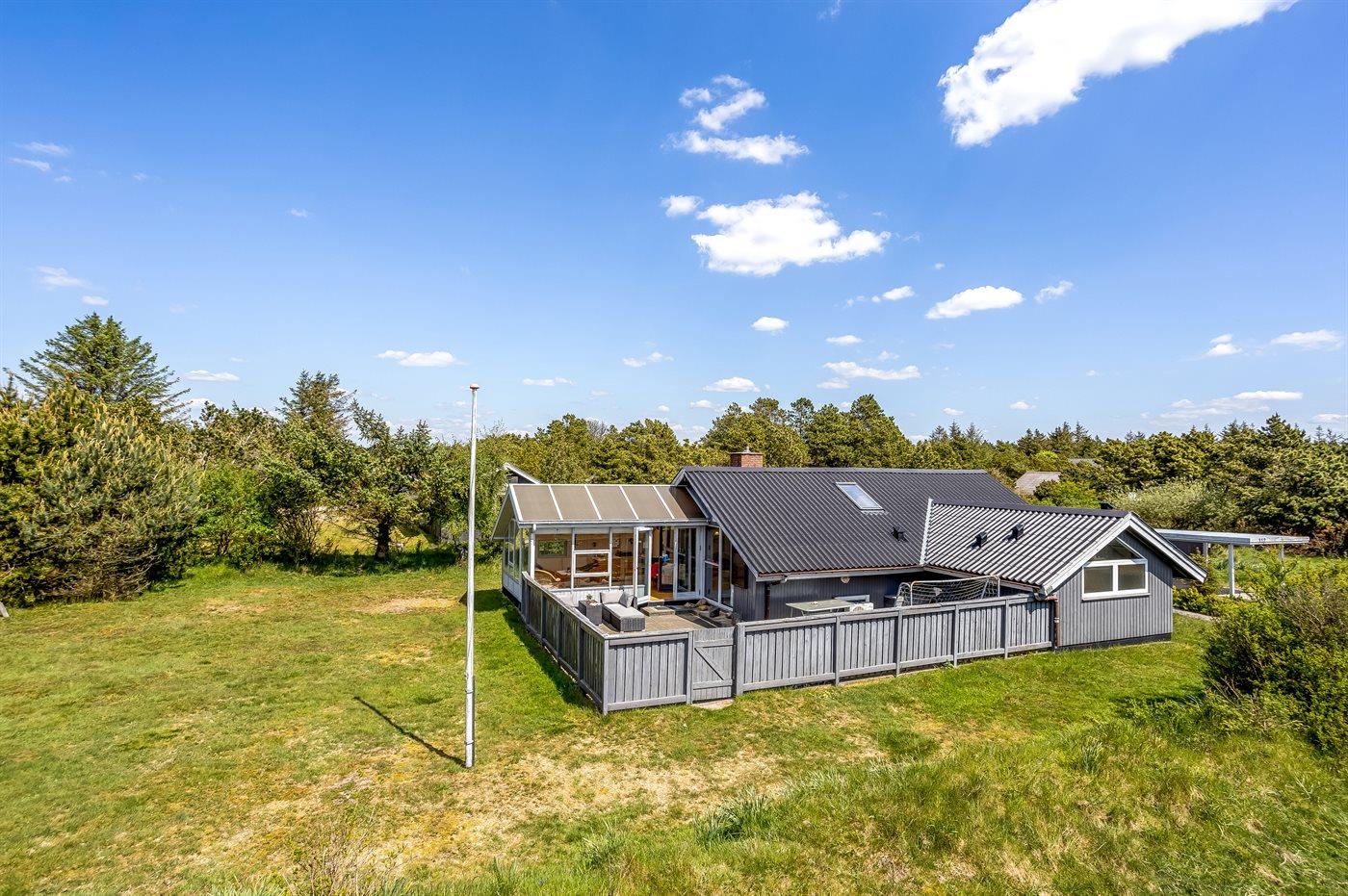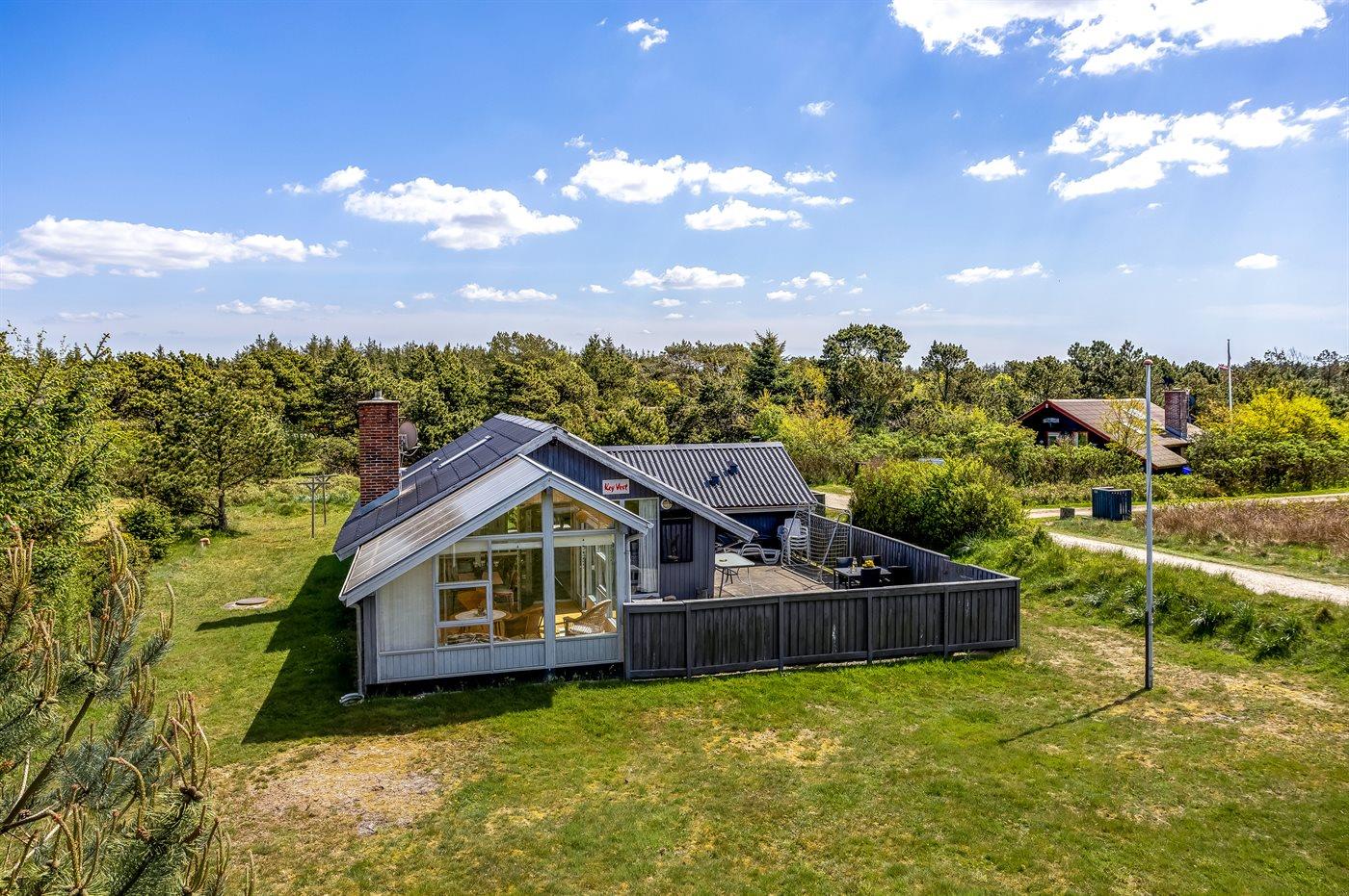 Hyggeligt sommerhus i Vejers Strand med spa, sauna og stor naturgrund tæt på hav og søer.