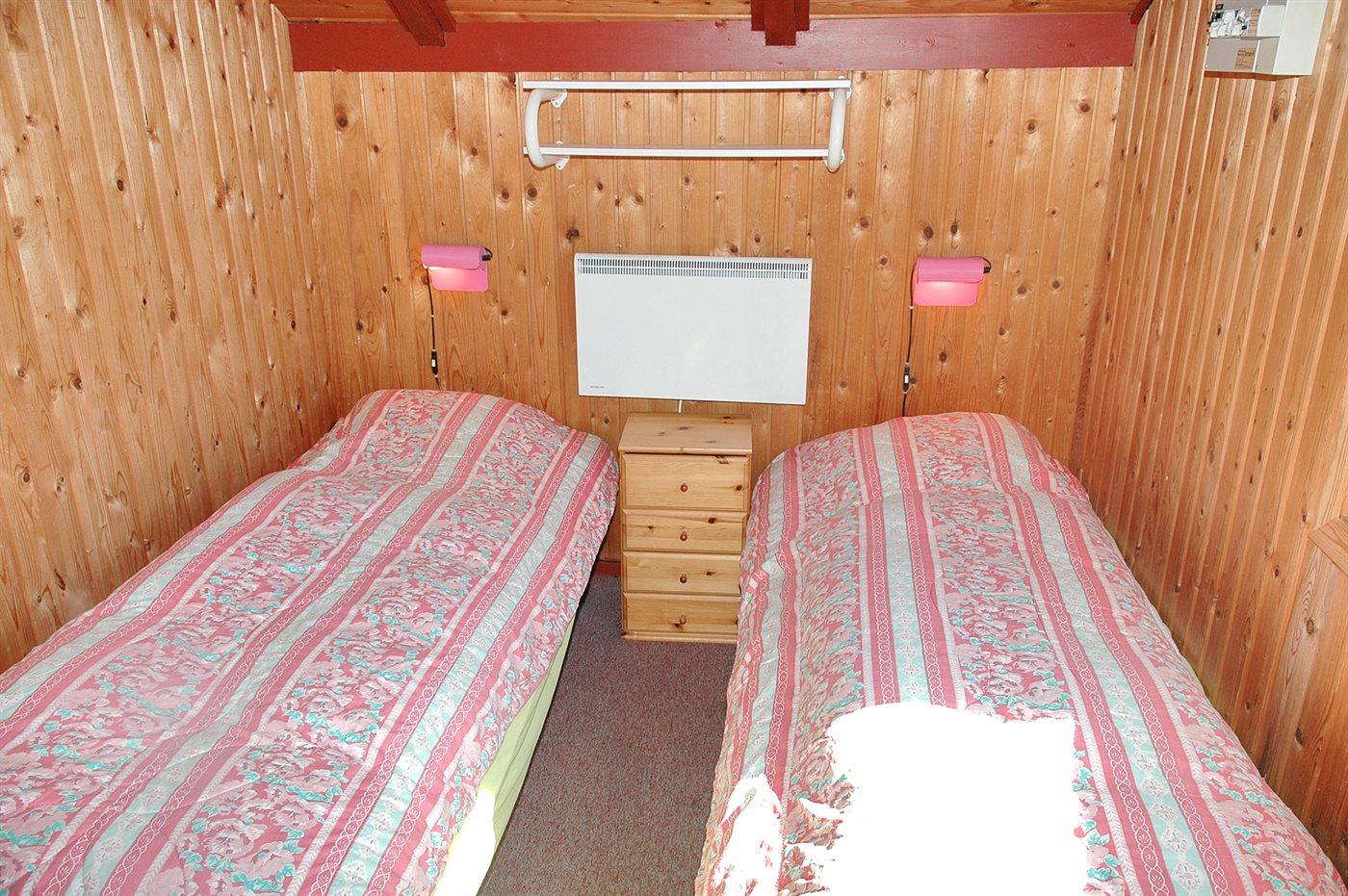 Der er i alt 3 soveværelser. Sovepladserne fordeler sig på: 2 sovepladser i dobbeltseng. 2 sovepladser i enkeltsenge. 2 sovepladser i køjeseng. Derudover er der 1 stk. barneseng.