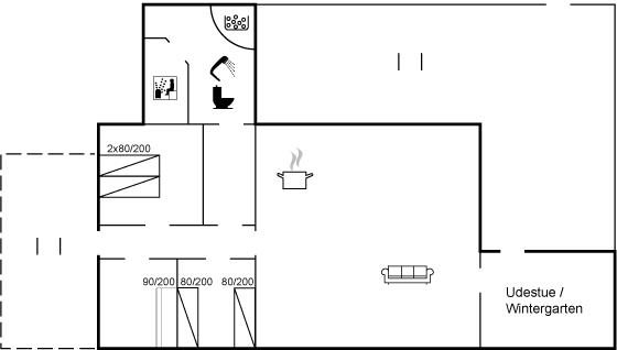 Der er 1 badeværelse med bruseniche og 1 toilet.. Der er gulvvarme på 1 badeværelse. I saunaen er der mulighed for afslapning.