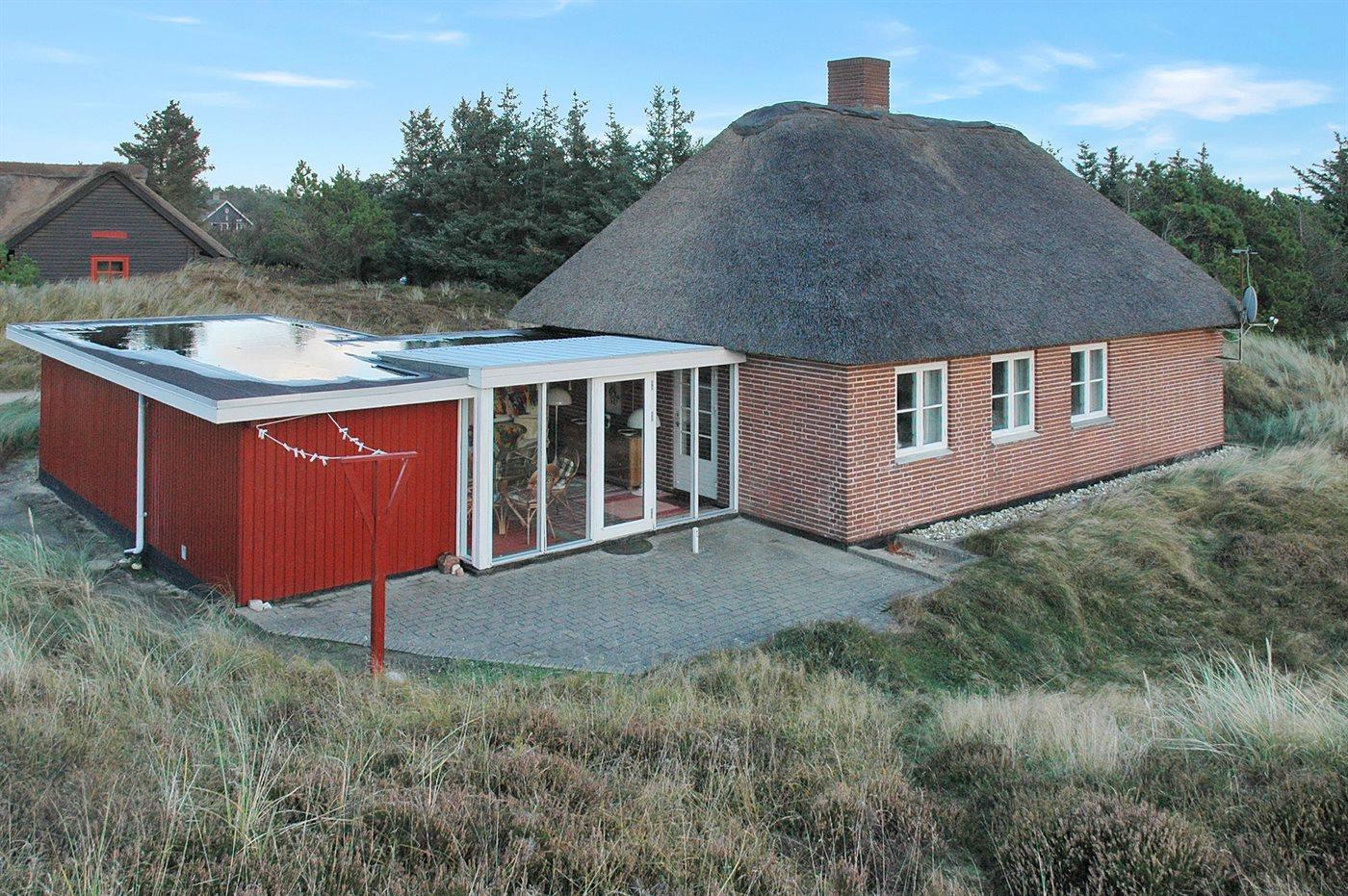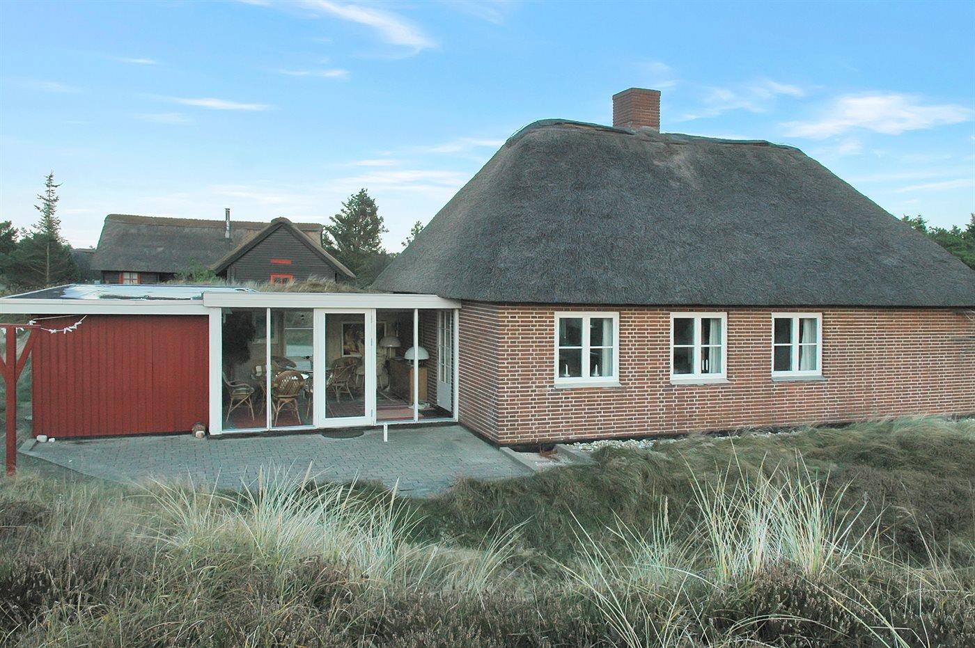 Hyggeligt sommerhus med sauna og udestue nær Vejers Strand, perfekt til afslapning og naturoplevelser.