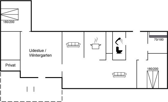 Der er i alt 3 soveværelser. Sovepladserne fordeler sig på: 4 sovepladser i dobbeltsenge. 2 sovepladser i køjeseng.