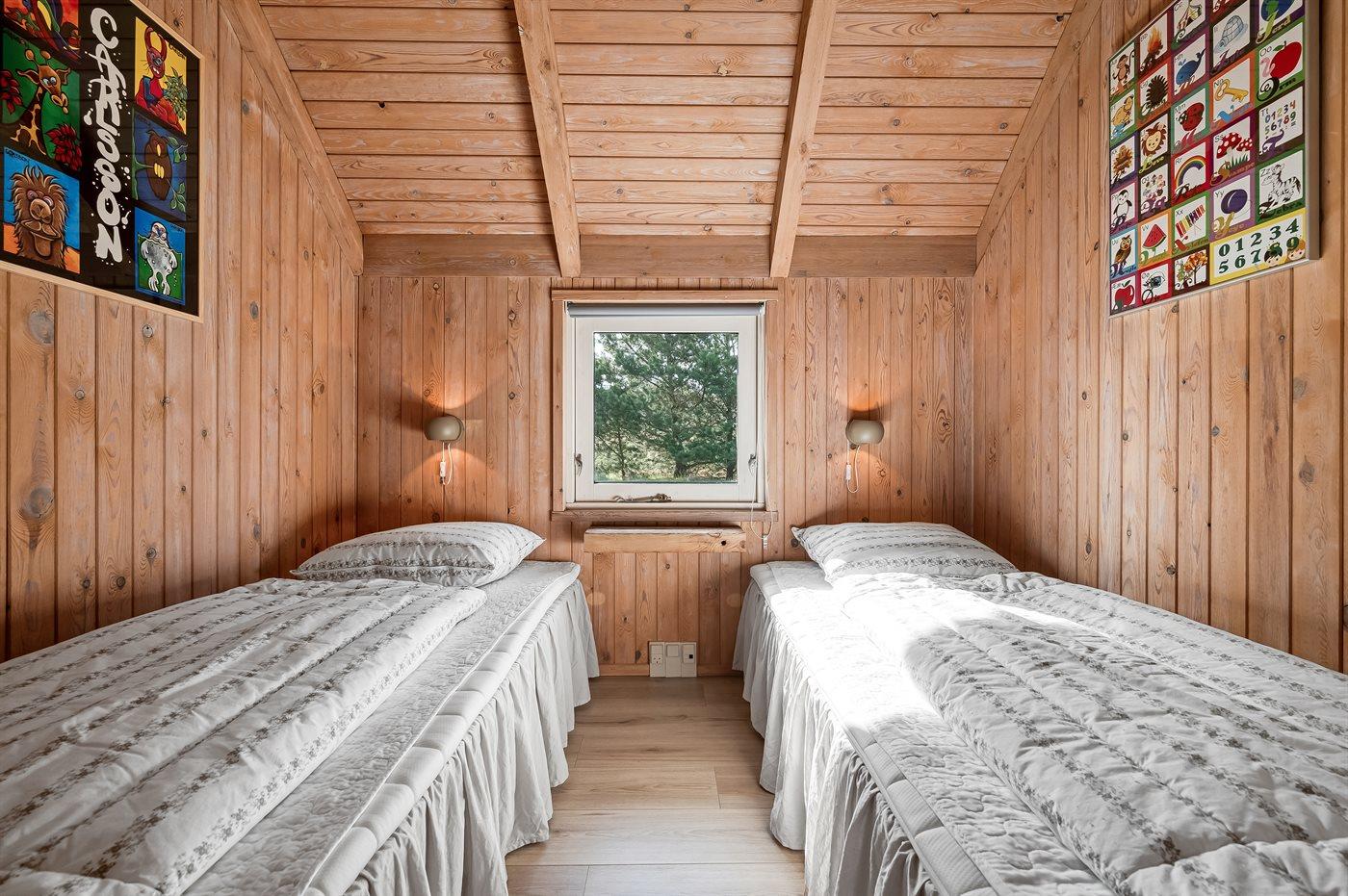 Der er i alt 4 soveværelser. Sovepladserne fordeler sig på: 4 sovepladser i dobbeltsenge. 4 sovepladser i enkeltsenge. Derudover er der 1 stk. barneseng.