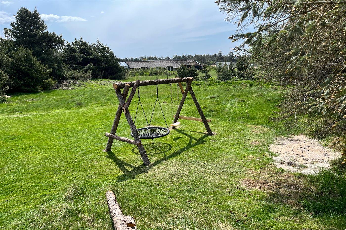 Ferieboligen er beliggende på en 2200 m² stor naturgrund. Der er 1200 m til havet. Der er en sø i en afstand af 500 m. Nærmeste forretning er beliggende i en afstand af 300 m. Der er en golfbane i en afstand af 13000 m. Til ferieboligen hører 45 m² terrasseareal. Gynge. Sandkasse. Parkering ved ferieboligen.