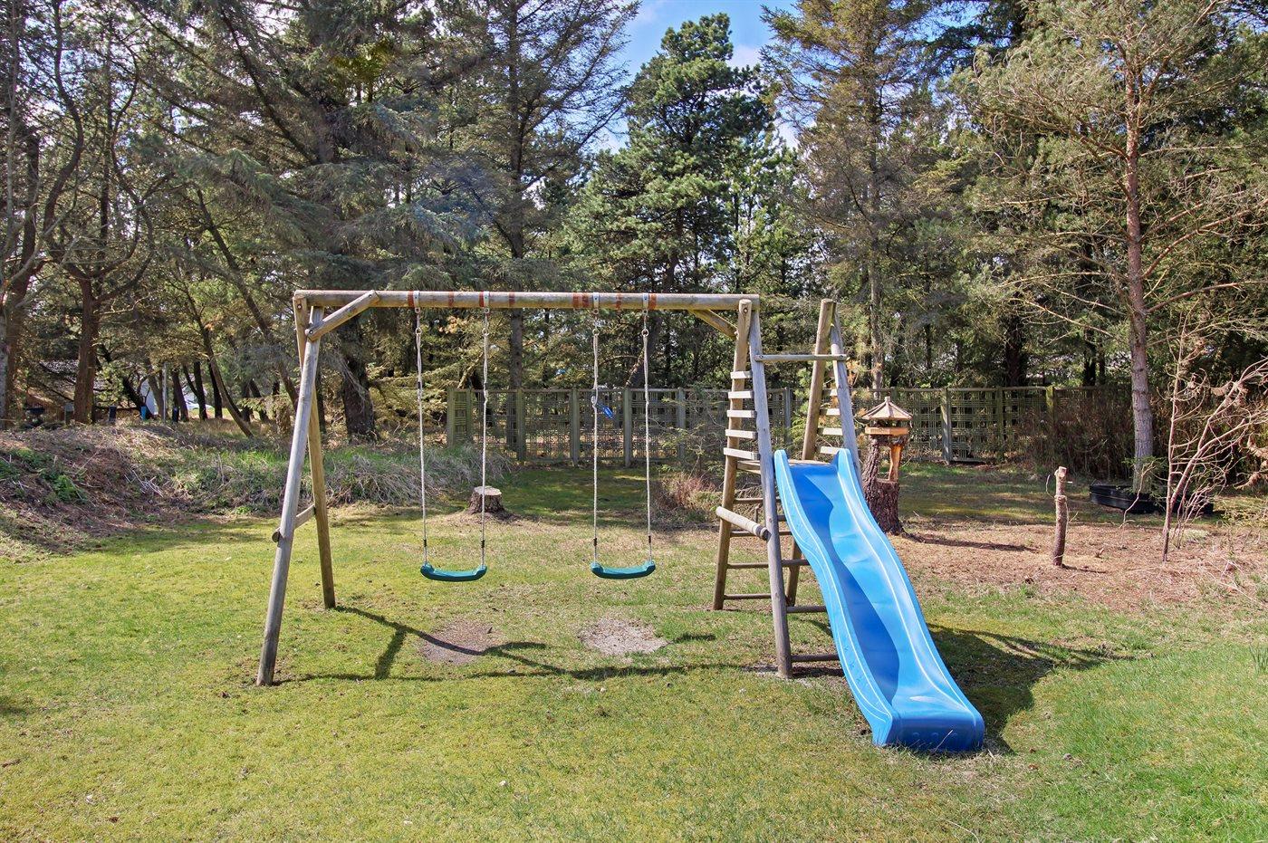 Ferieboligen er beliggende på en 2014 m² stor naturgrund. Der er 2000 m til havet. Nærmeste forretning er beliggende i en afstand af 300 m. Til ferieboligen hører 25 m² terrasseareal. Heraf i alt 20 m² lukket terrasse. Gynge. Parkering ved ferieboligen.