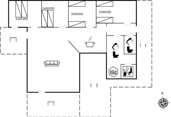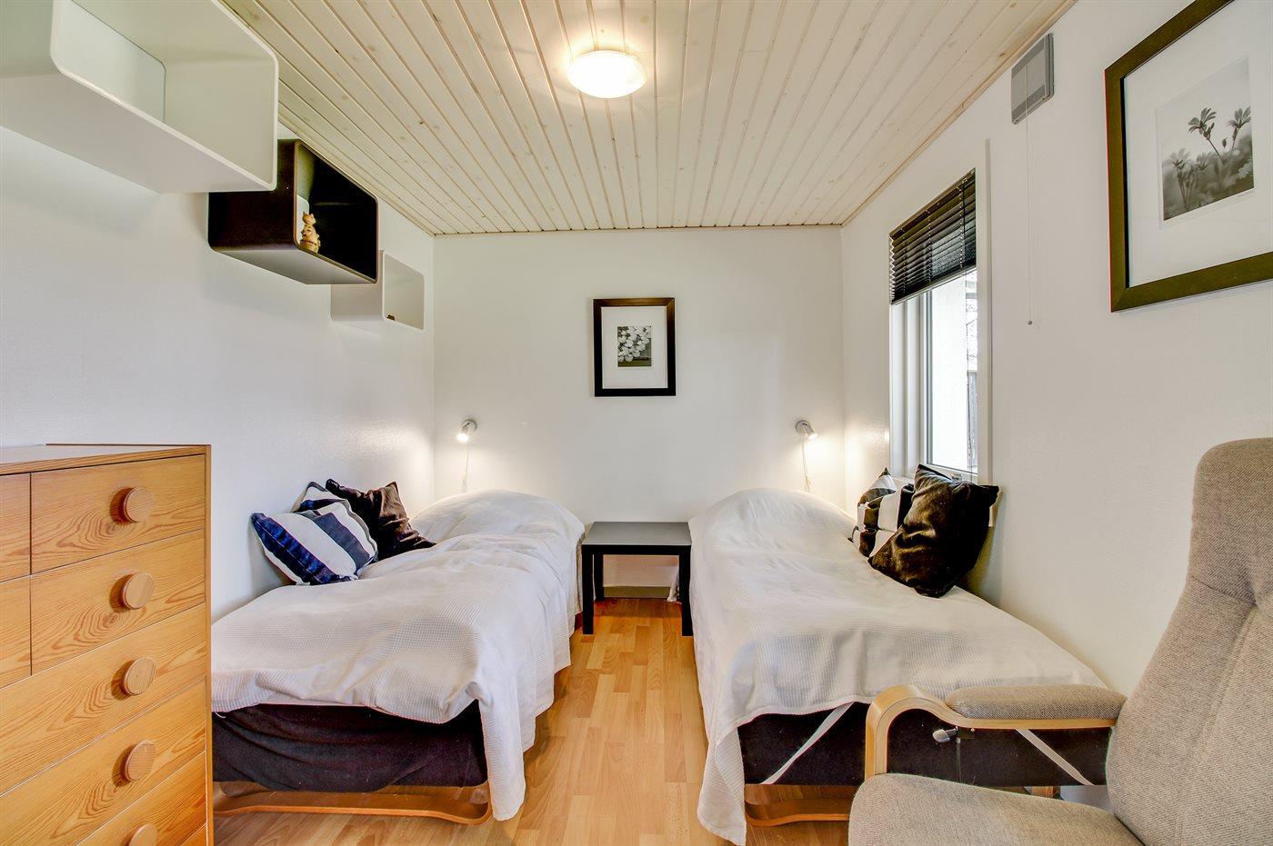 Der er i alt 4 soveværelser. Sovepladserne fordeler sig på: 4 sovepladser i dobbeltsenge. 4 sovepladser i enkeltsenge.