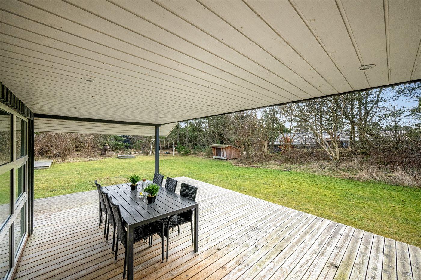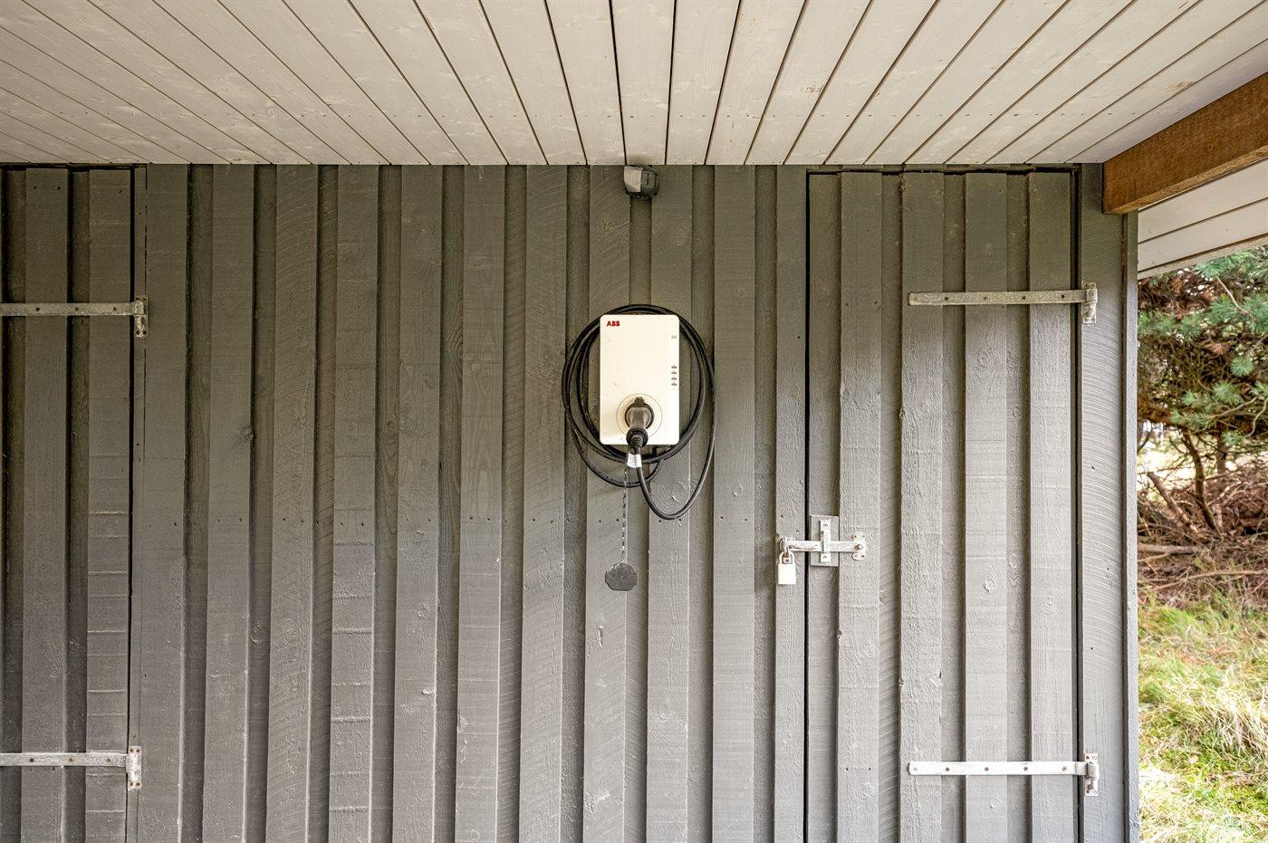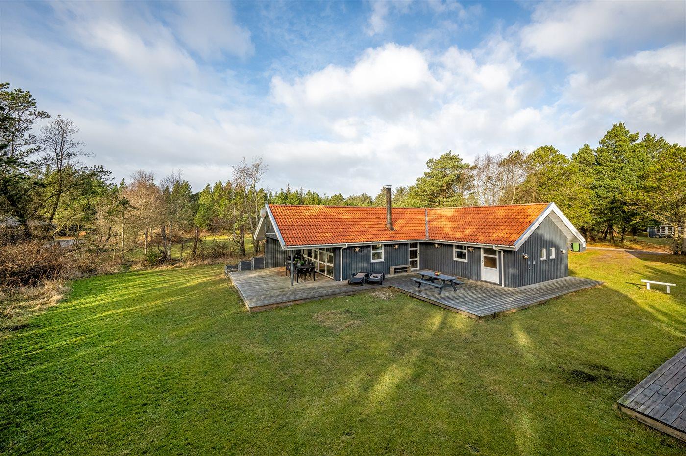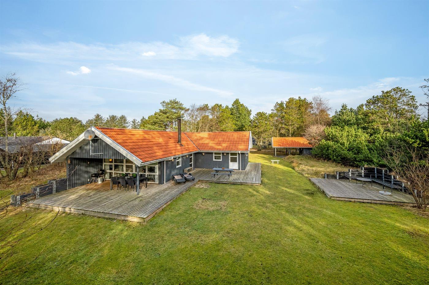 Ferieboligen er beliggende på en 1864 m² stor naturgrund. Der er 1000 m til havet. 200 m til fredelig skov- og naturområder med et rigt dyreliv. Nærmeste forretning er beliggende i en afstand af 400 m. Til ferieboligen hører 100 m² terrasseareal. Desuden er der 20 m² overdækket terrasse. Der er redskabsrum. Gynge. Sandkasse. Der er carport til rådighed. Der er installeret stik til opladning af elbil. Parkering ved ferieboligen.