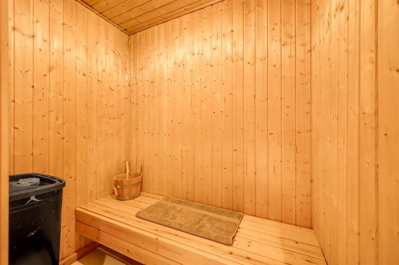 Der er 2 badeværelser med bruseniche og 2 toiletter. Der er gulvvarme på 2 badeværelser. I saunaen er der mulighed for afslapning.