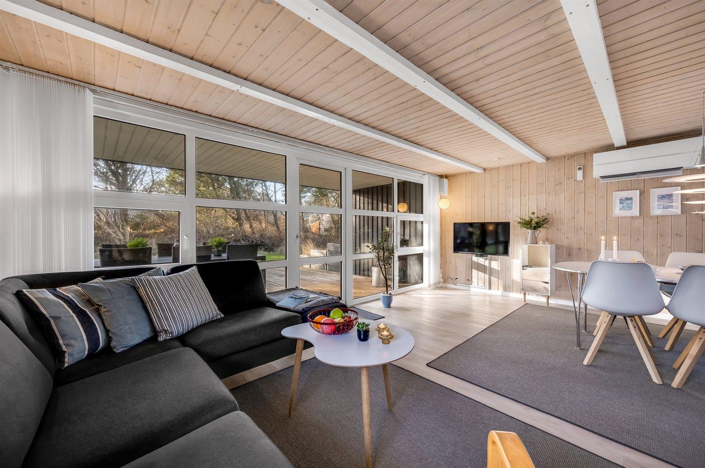 Dejligt lyst og vedligeholdt sommerhus med spa og sauna og rigtig ferieatmosfære. Huset er beliggende på en ugenert grund med græsplæne og omkranset af nåletræer. I 2020 har ferieboligen gennemgået en gennemgribende indvendig renovering. Ferieboligen er indrettet med åben køkken/alrum og stue, hvor ovenlysvinduer og det store vinduesparti mod den overdækkede terrasse giver et godt og lyst indtryk.