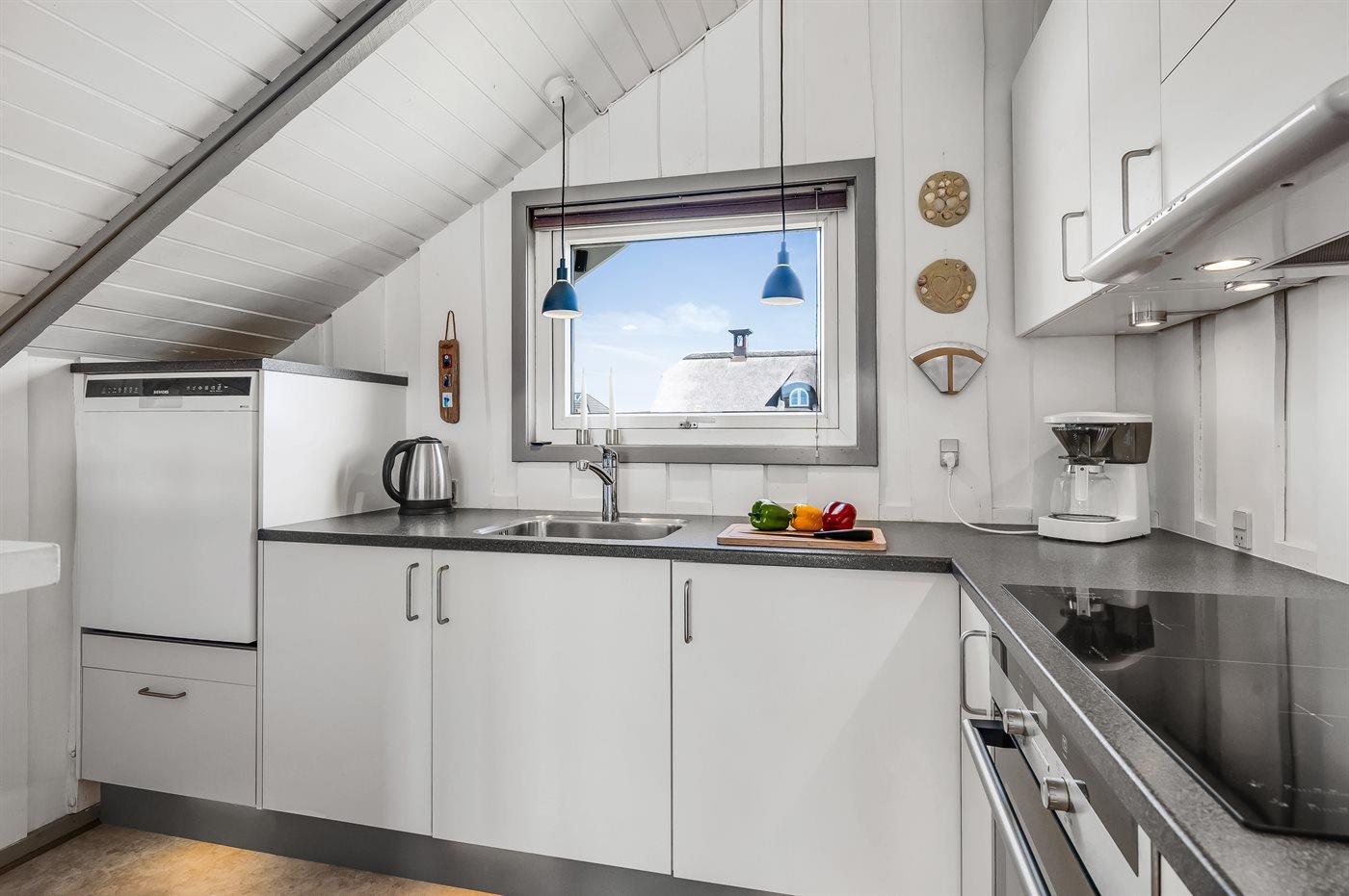 Køkkenet er udstyret med 1 køleskab. Der er 4 induktionskogeplader, varmluftovn, mikrobølgeovn samt opvaskemaskine.