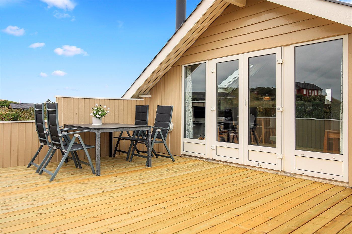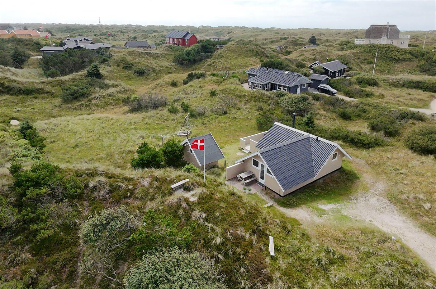Ferieboligen er beliggende på en 2400 m² stor klitgrund. Der er 300 m til havet. Nærmeste forretning er beliggende i en afstand af 100 m. Til ferieboligen hører 30 m² terrasseareal. Gynge. Sandkasse. Grill til rådighed. Parkering ved ferieboligen.