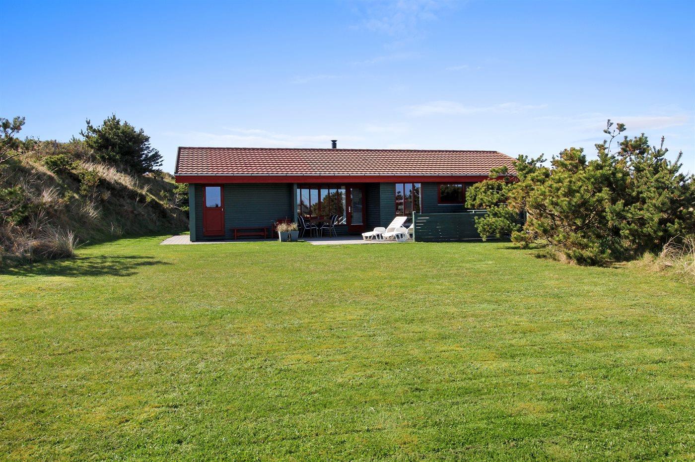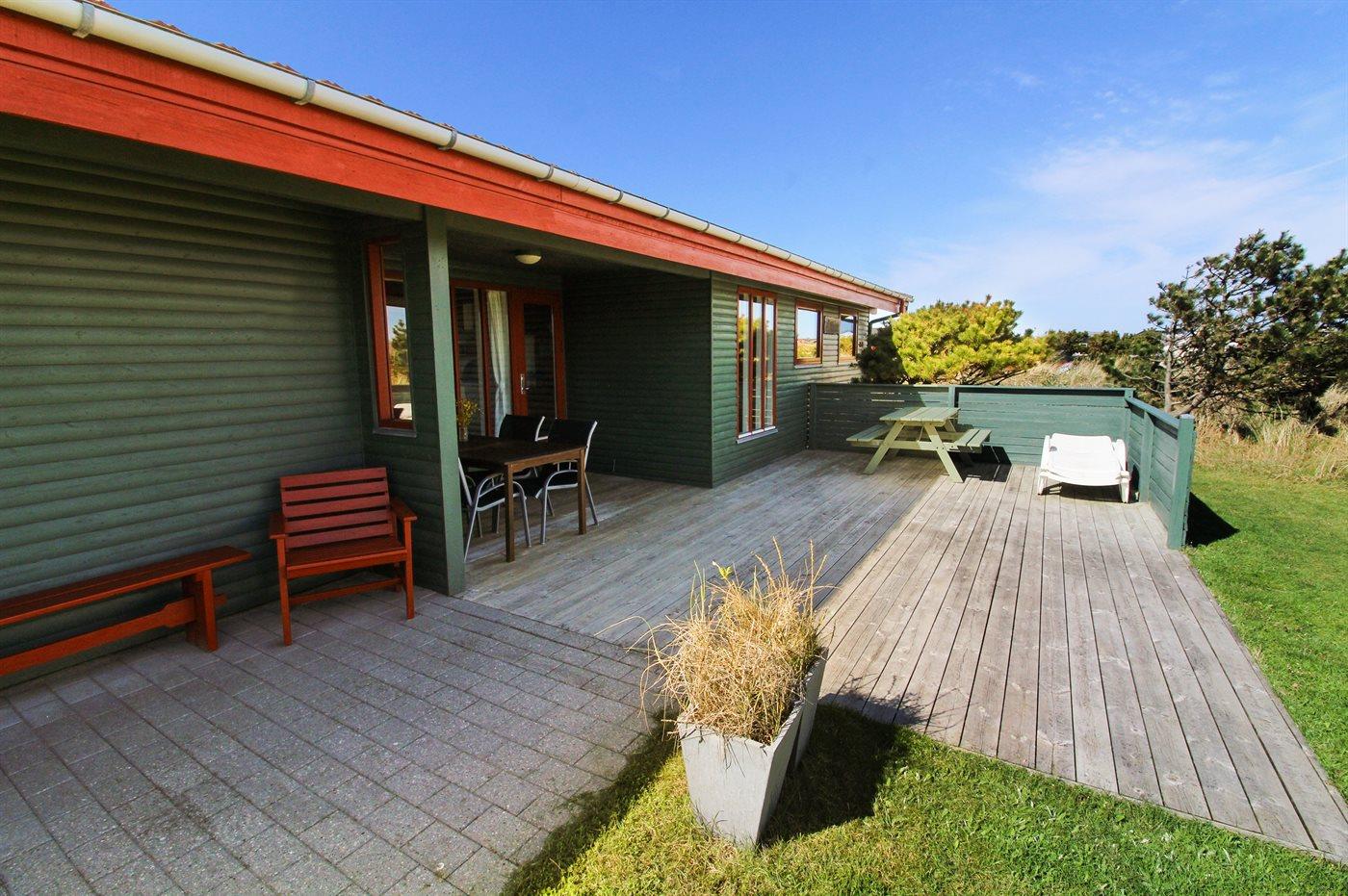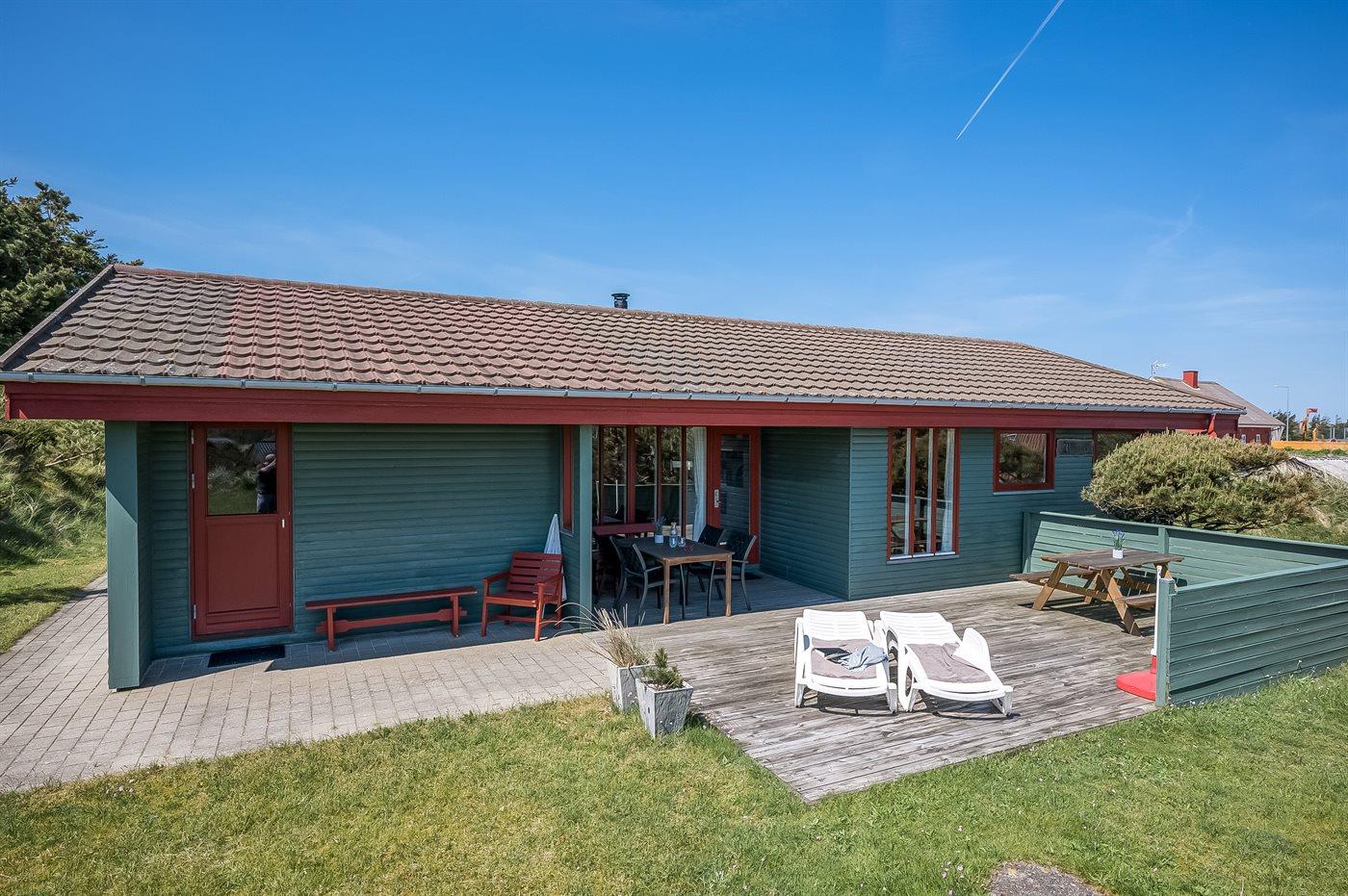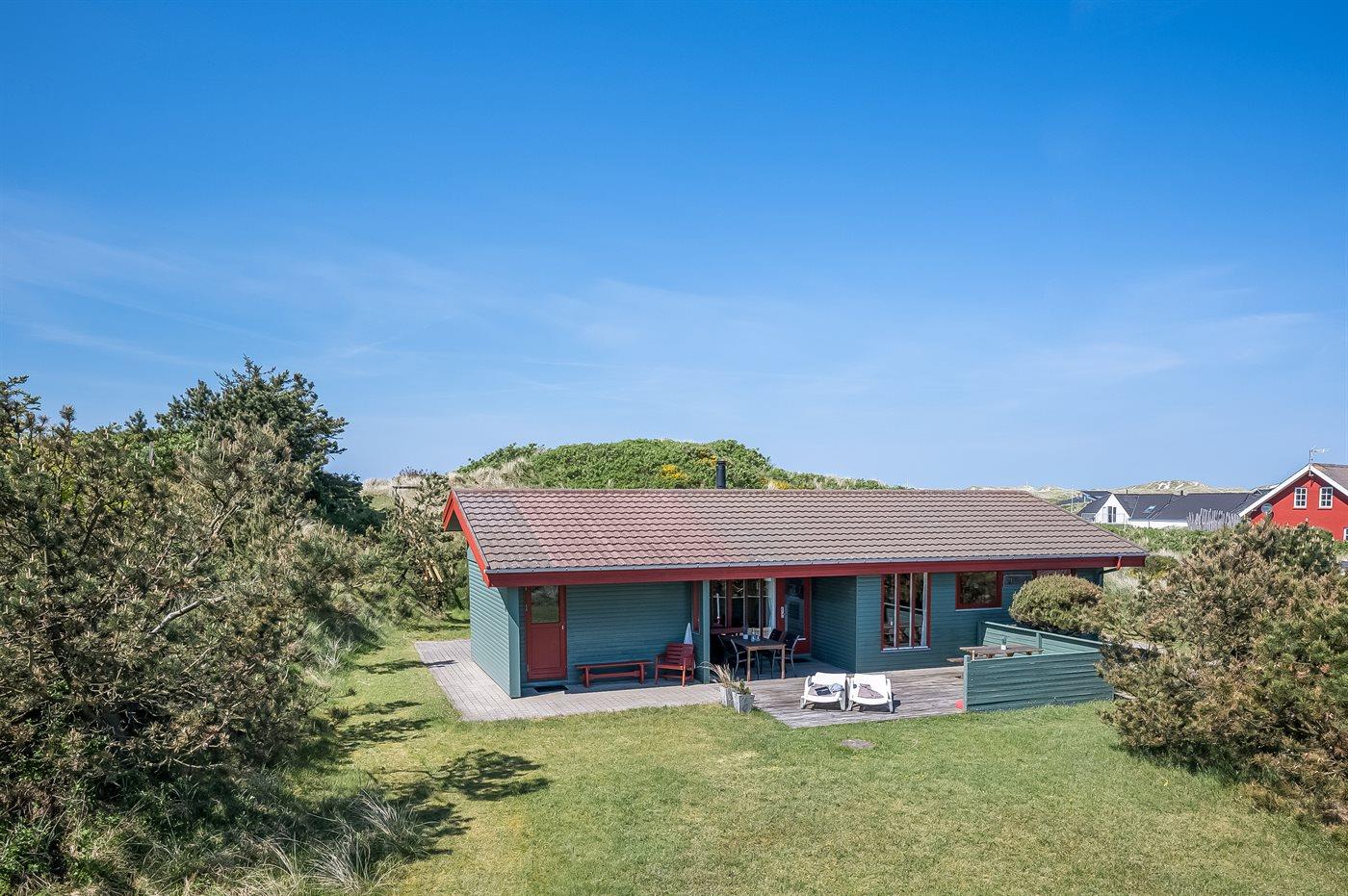 Dejligt familiehus beliggende på stor ugeneret naturgrund med panoramaudsigt over området. Meget børnevenlig klitgrund for enden af en blind vej med gynge og sandkasse. Fra klittoppen er der udsigt til Vesterhavet. Huset udlejes til maks 6 personer. Ferieboligen er på 85 m² og er bygget i 1974. Huset er tilbygget i 2009. Det er ikke tilladt at medbringe husdyr. Ferieboligen har vaskemaskine. Der er desuden brændeovn. Ferieboligen er beliggende på en 2700 m² stor naturgrund. Der er 250 m til havet. Nærmeste forretning er beliggende i en afstand af 100 m. Til ferieboligen hører 85 m² åbent terrasseareal. Desuden er der 11 m² overdækket terrasse. Gynge. Sandkasse. Grill til rådighed. Der er carport til rådighed. Parkering ved ferieboligen. Der er i alt 3 soveværelser. Sovepladserne fordeler sig på: 2 sovepladser i dobbeltseng. 3 sovepladser i enkeltsenge.1 soveplads i køjeseng. Køkkenet er udstyret med 1 køleskab samt fryser med en kapacitet på 54 liter. Der er 4 el-kogeplader, bageovn, mikrobølgeovn samt opvaskemaskine. Der er 1 badeværelse med bruseniche og 1 toilet. Der er gulvvarme på badeværelset. I ferieboligen er der 1 TV. DVD-afspiller. Radio. Stereoanlæg. Der er mindst 4 danske kanaler. Mindst 4 tyske kanaler. Der er trådløst internet og parabol til rådighed.