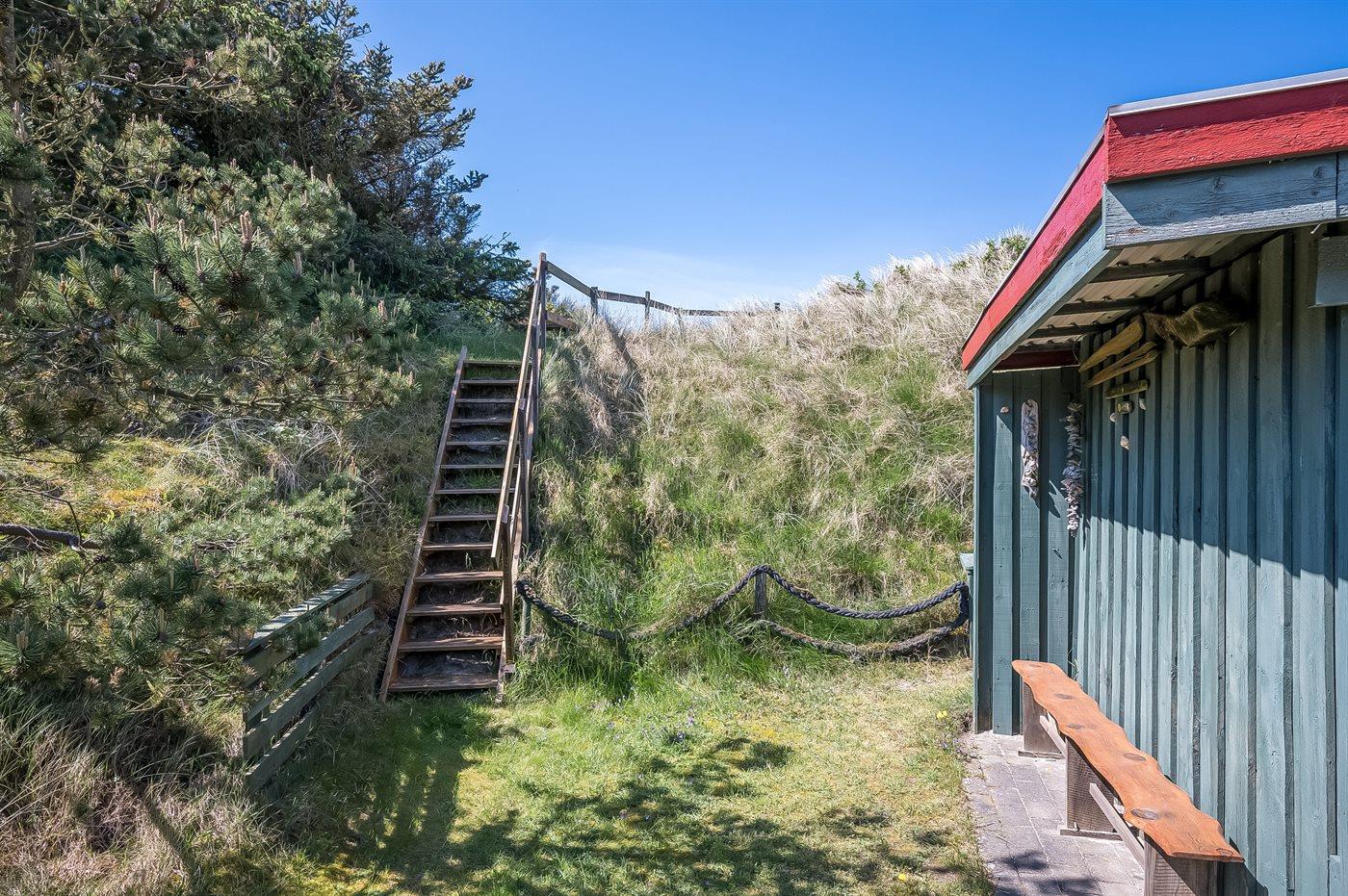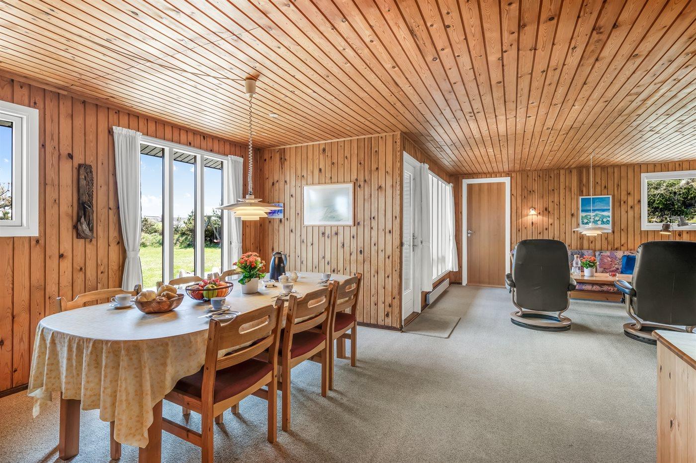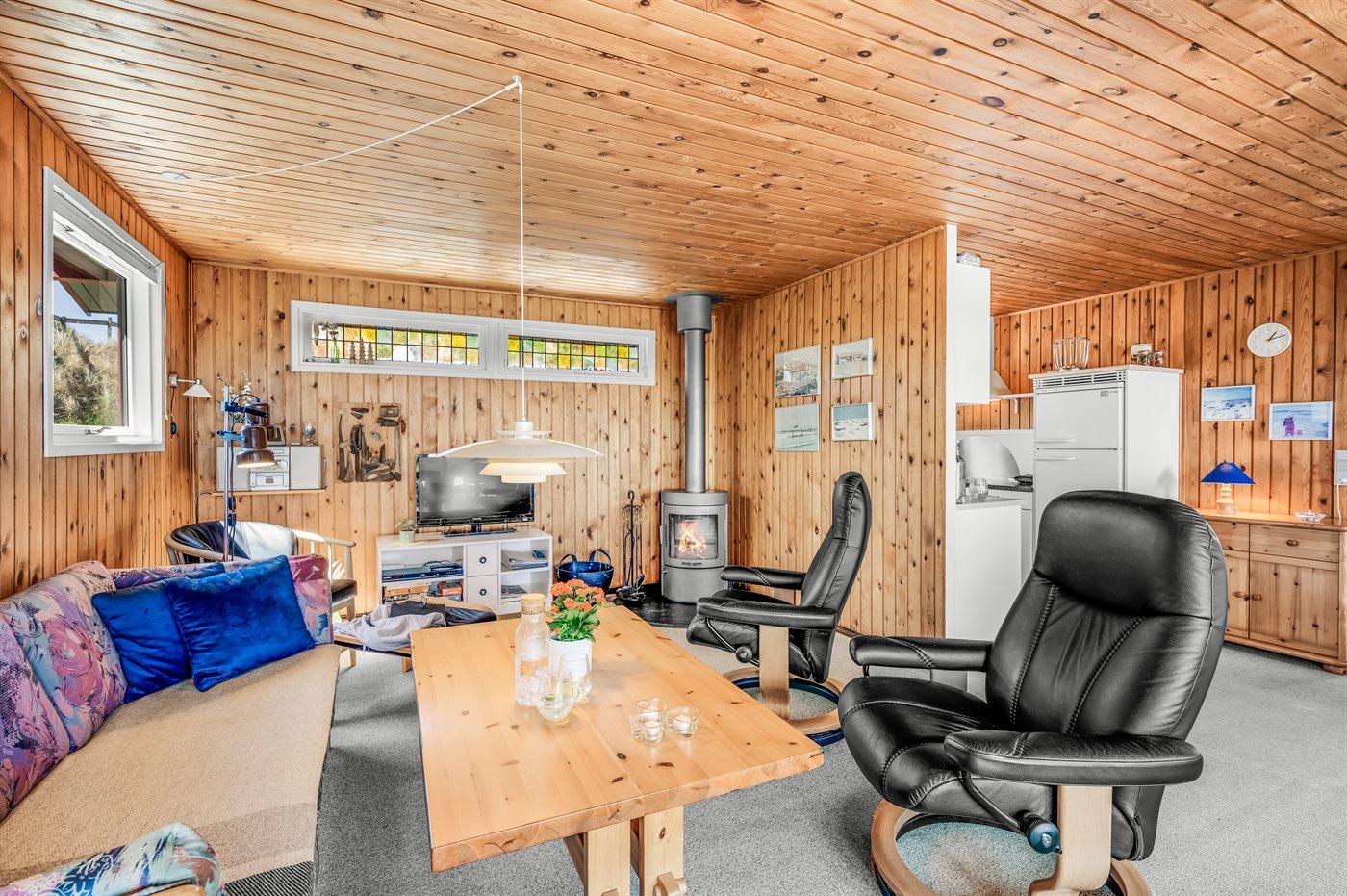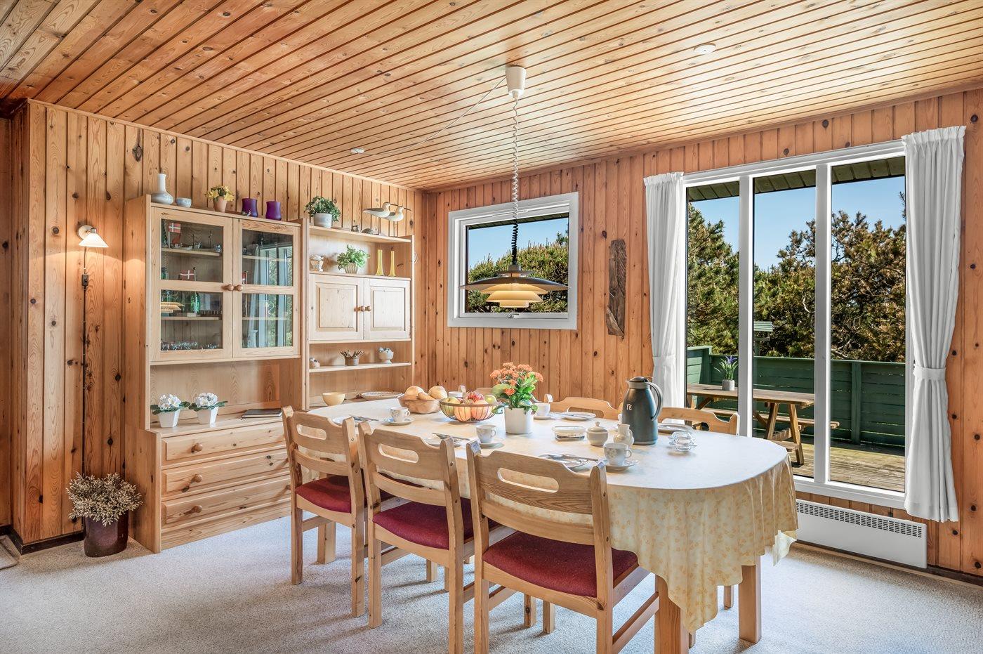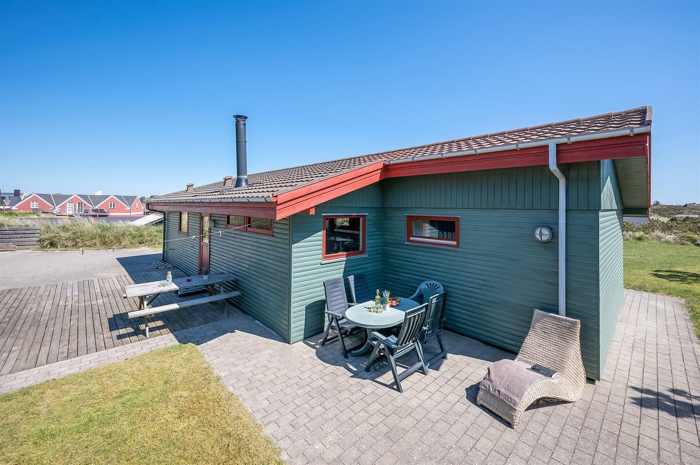 Dejligt familiehus beliggende på stor ugeneret naturgrund med panoramaudsigt over området. Meget børnevenlig klitgrund for enden af en blind vej med gynge og sandkasse. Fra klittoppen er der udsigt til Vesterhavet. Huset udlejes til maks 6 personer. Ferieboligen er på 85 m² og er bygget i 1974. Huset er tilbygget i 2009. Det er ikke tilladt at medbringe husdyr. Ferieboligen har vaskemaskine. Der er desuden brændeovn. Ferieboligen er beliggende på en 2700 m² stor naturgrund. Der er 250 m til havet. Nærmeste forretning er beliggende i en afstand af 100 m. Til ferieboligen hører 85 m² åbent terrasseareal. Desuden er der 11 m² overdækket terrasse. Gynge. Sandkasse. Grill til rådighed. Der er carport til rådighed. Parkering ved ferieboligen. Der er i alt 3 soveværelser. Sovepladserne fordeler sig på: 2 sovepladser i dobbeltseng. 3 sovepladser i enkeltsenge.1 soveplads i køjeseng. Køkkenet er udstyret med 1 køleskab samt fryser med en kapacitet på 54 liter. Der er 4 el-kogeplader, bageovn, mikrobølgeovn samt opvaskemaskine. Der er 1 badeværelse med bruseniche og 1 toilet. Der er gulvvarme på badeværelset. I ferieboligen er der 1 TV. DVD-afspiller. Radio. Stereoanlæg. Der er mindst 4 danske kanaler. Mindst 4 tyske kanaler. Der er trådløst internet og parabol til rådighed.