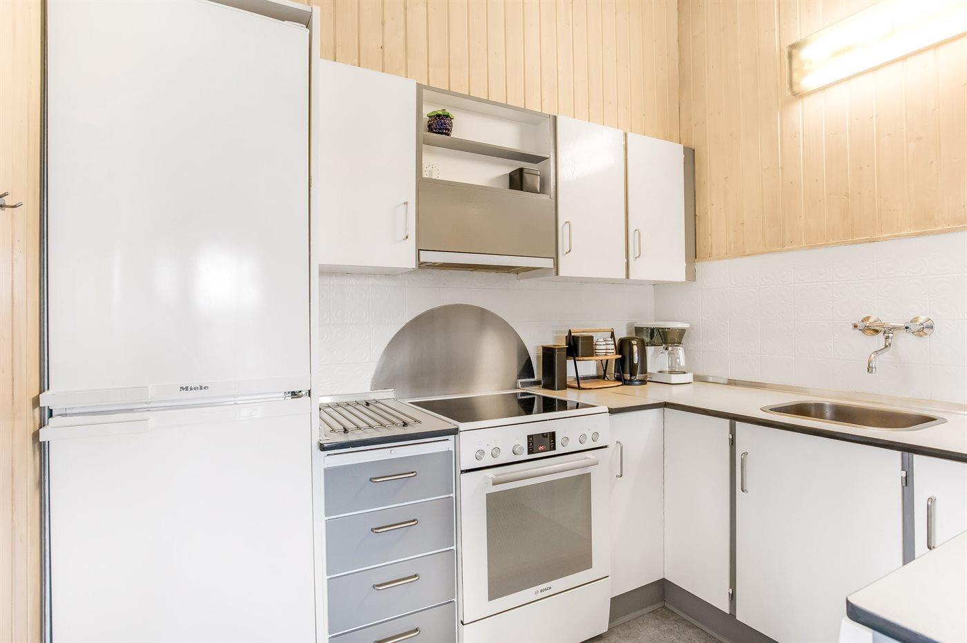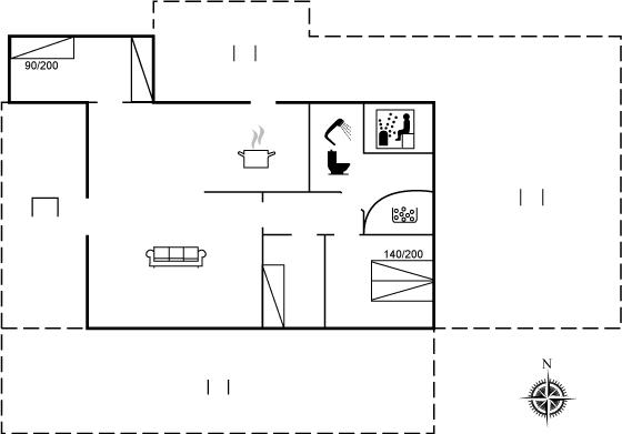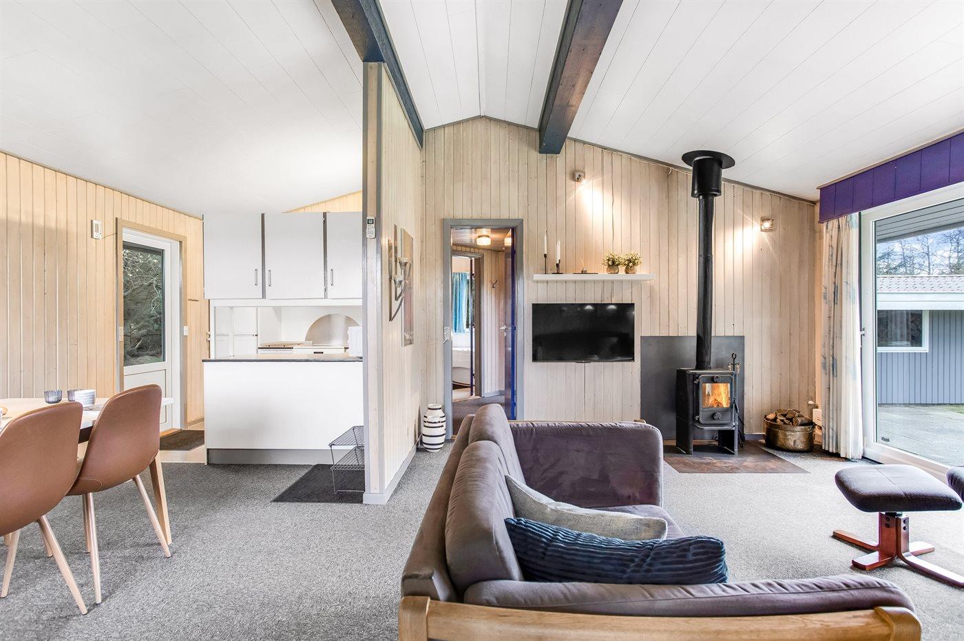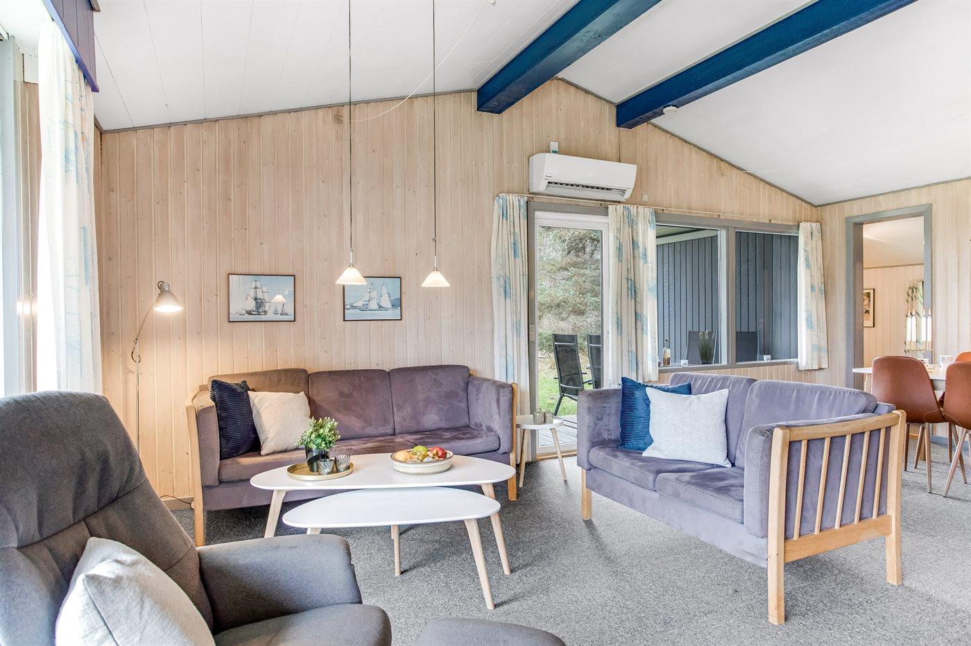 Husets midtpunkt er et lyst og hyggeligt køkkenalrum og stue, som går ud i et. I stuen er der sofaarrangement, hvor man kan nyde udsigten fra de store vinduer mod syd og vest og - ikke mindst - hygge sig ved brændeovnen. Fri brænde er der også tilgængelig. Derudover findes der 1 TV med mindst 3 danske kanaler og mindst 50 tyske kanaler. Køkkenet er udstyret med 1 køle/fryseskab med en frysekapacitet på 90 liter, 4 el-kogeplader, bageovn, mikrobølgeovn, opvaskemaskine samt plads til opbevaring af madvarer m.m.