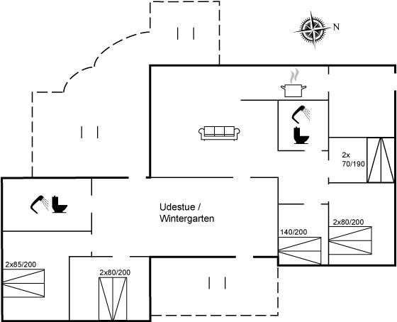 Der er 2 badeværelser med bruseniche og 2 toiletter. Der er gulvvarme på 2 badeværelser.