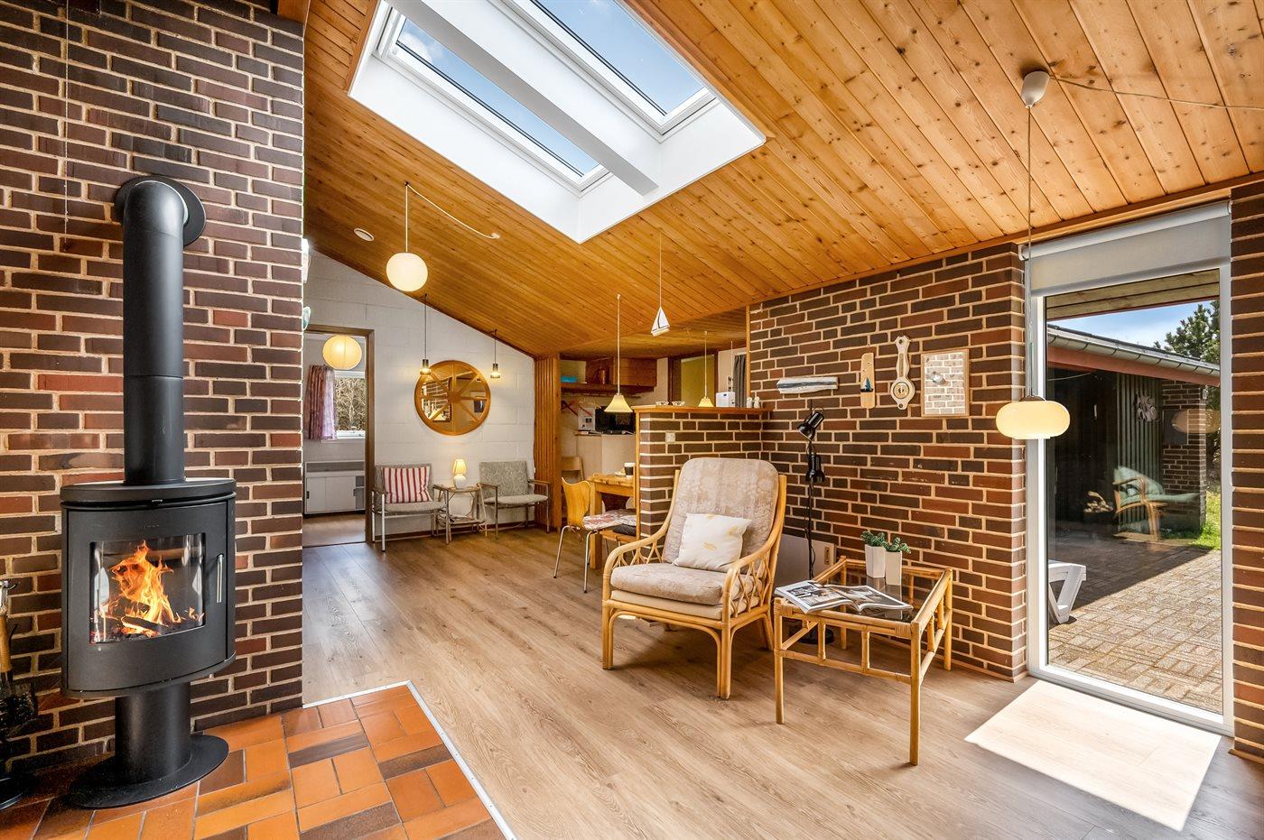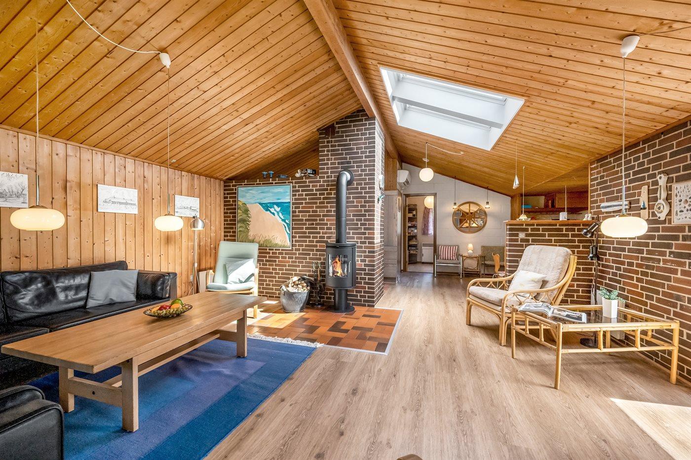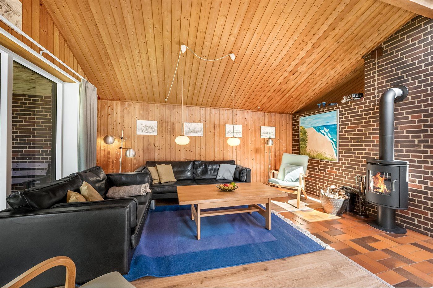 I stuen findes der brændeovn, som skaber ekstra hygge på kølige dage – der er gratis brænde til rådighed. Huset er yderst energivenligt og udover at det opvarmes med luft til vand varmepumpe er sommerhuset udstyret med et Genvex-anlæg, som sikrer et behageligt indeklima året rundt. Derudover er der installeret solceller, med batteri til de mørke timer, så forbruget i dette sommerhus er meget lille og sommetider lig med ingenting.