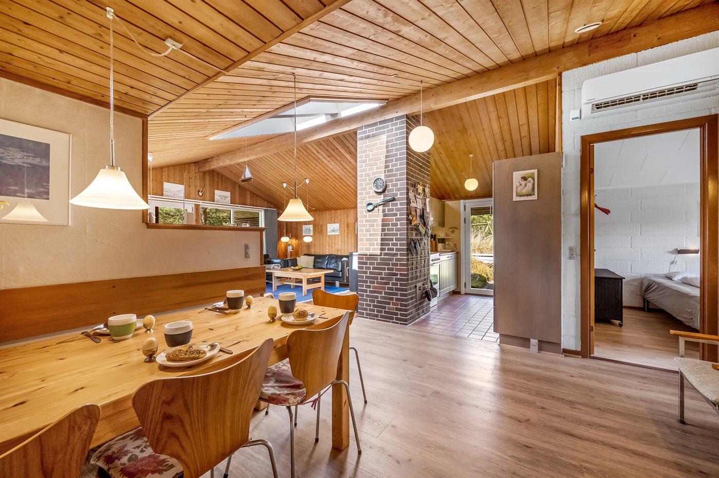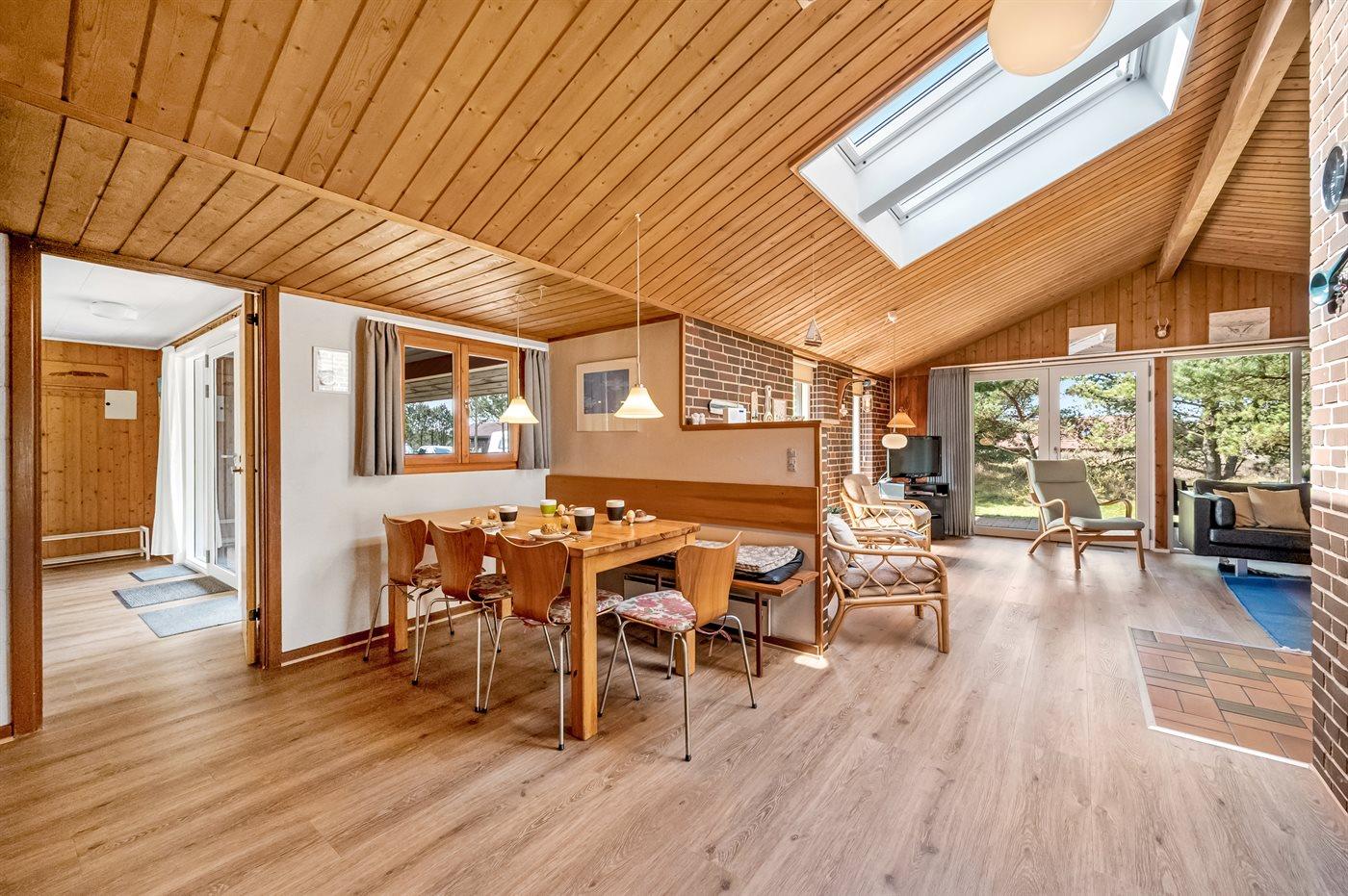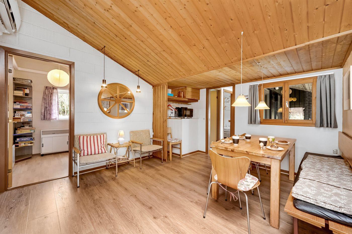 Indretningen gør sommerhuset ideelt til den store familie eller to generationer, der holder ferie sammen. De to opholdsafdelinger giver mulighed for at nogle kan slappe af med tv eller en god bog, mens f.eks. børn og unge hygger sig med spil eller film i den anden afdeling.