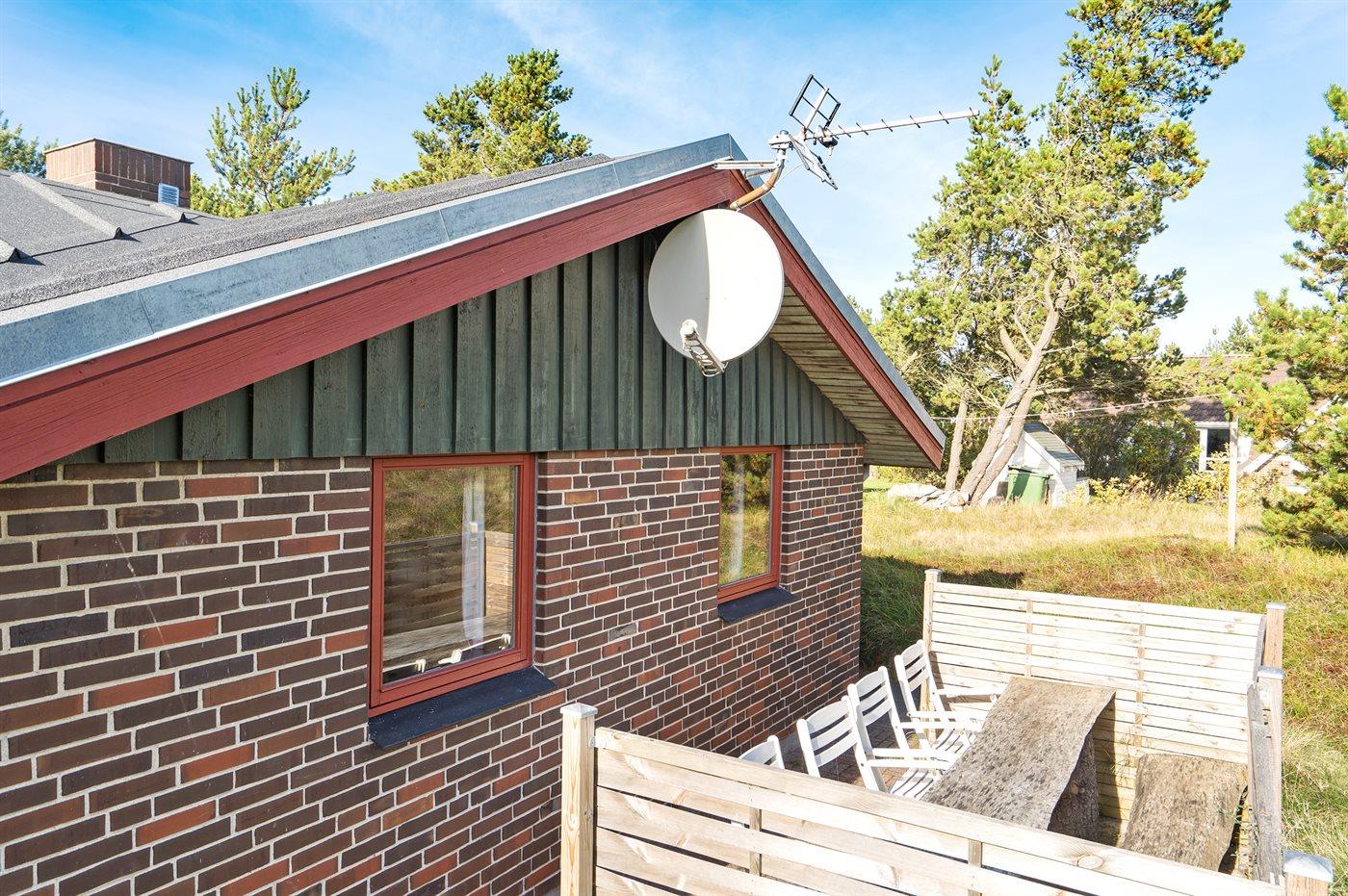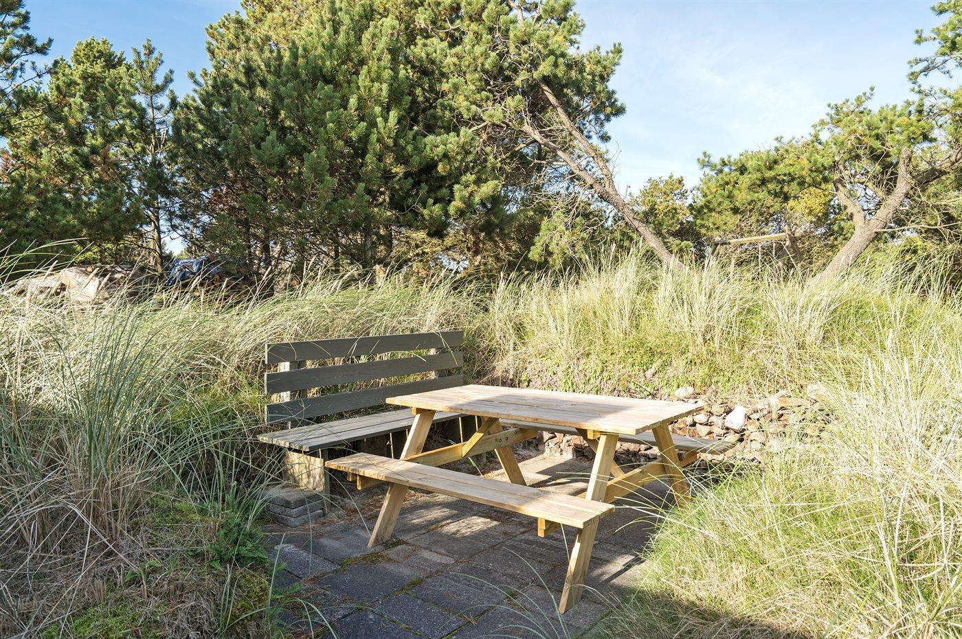 Ferieboligen er beliggende på en 2117 m² stor naturgrund. Der er 1000 m til havet. Nærmeste forretning er beliggende i en afstand af 500 m. Til ferieboligen hører 38 m² terrasseareal. Desuden er der 25 m² overdækket terrasse. Der er redskabsrum. Udendørs bruser. Der er installeret stik til opladning af elbil. Type 2 stik. Med 11 kW ladeeffekt. Parkering ved ferieboligen.