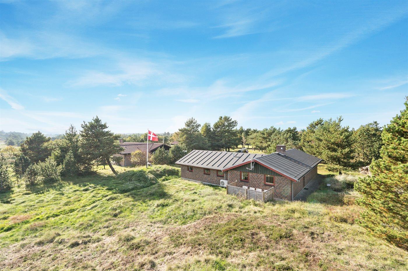 Huset ligger på en stor, uforstyrret grund for enden af en vej – direkte op til et naturområde. Her er der fred, privatliv og masser af plads til både leg og afslapning. Samtidig er der kun ca. 1.000 meter til Vesterhavet, så stranden er let at nå til fods eller på cykel.