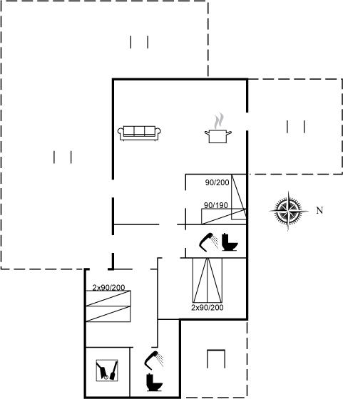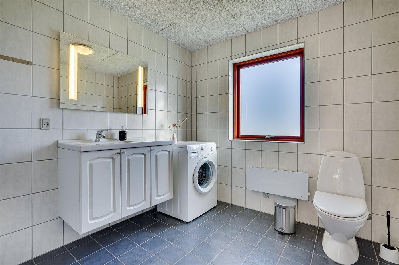 Der er 2 badeværelser med bruseniche og 2 toiletter. Der er gulvvarme på 1 badeværelse.