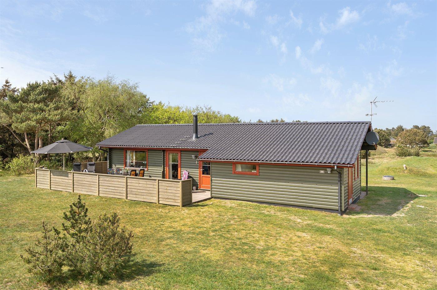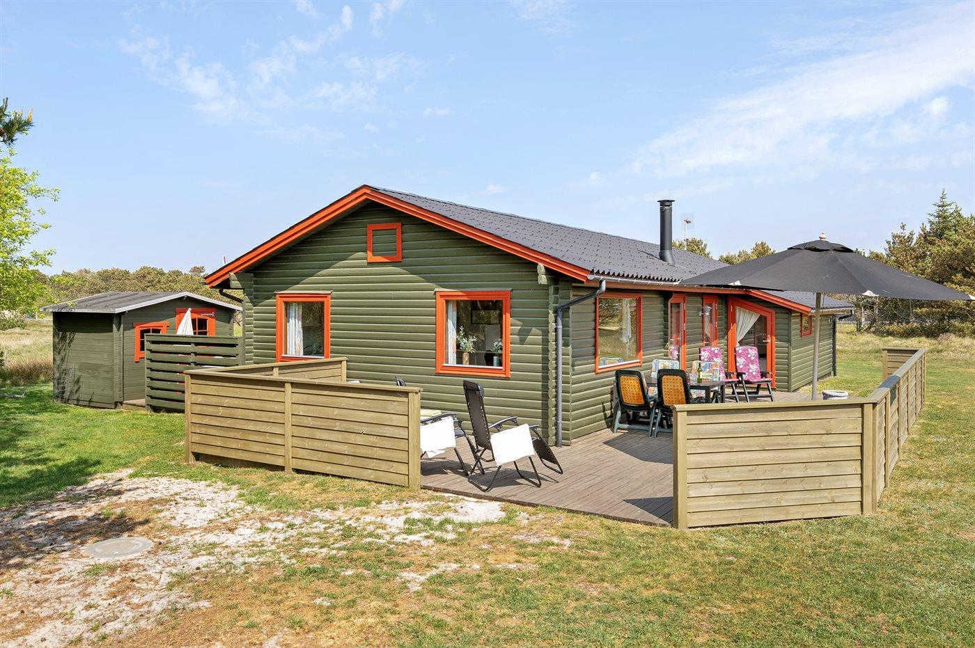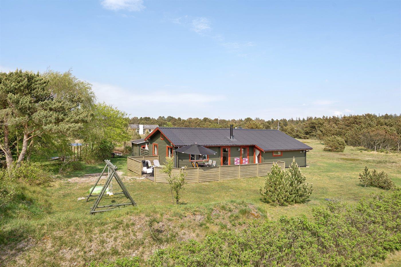 Rummeligt sommerhus i Vejers Strand med naturgrund, terrasse og plads til husdyr.